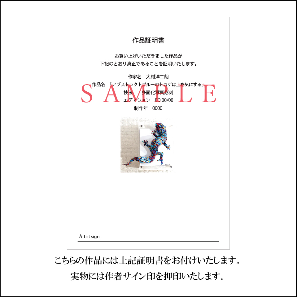 こちらの作品には作品証明書をお付けいたします。