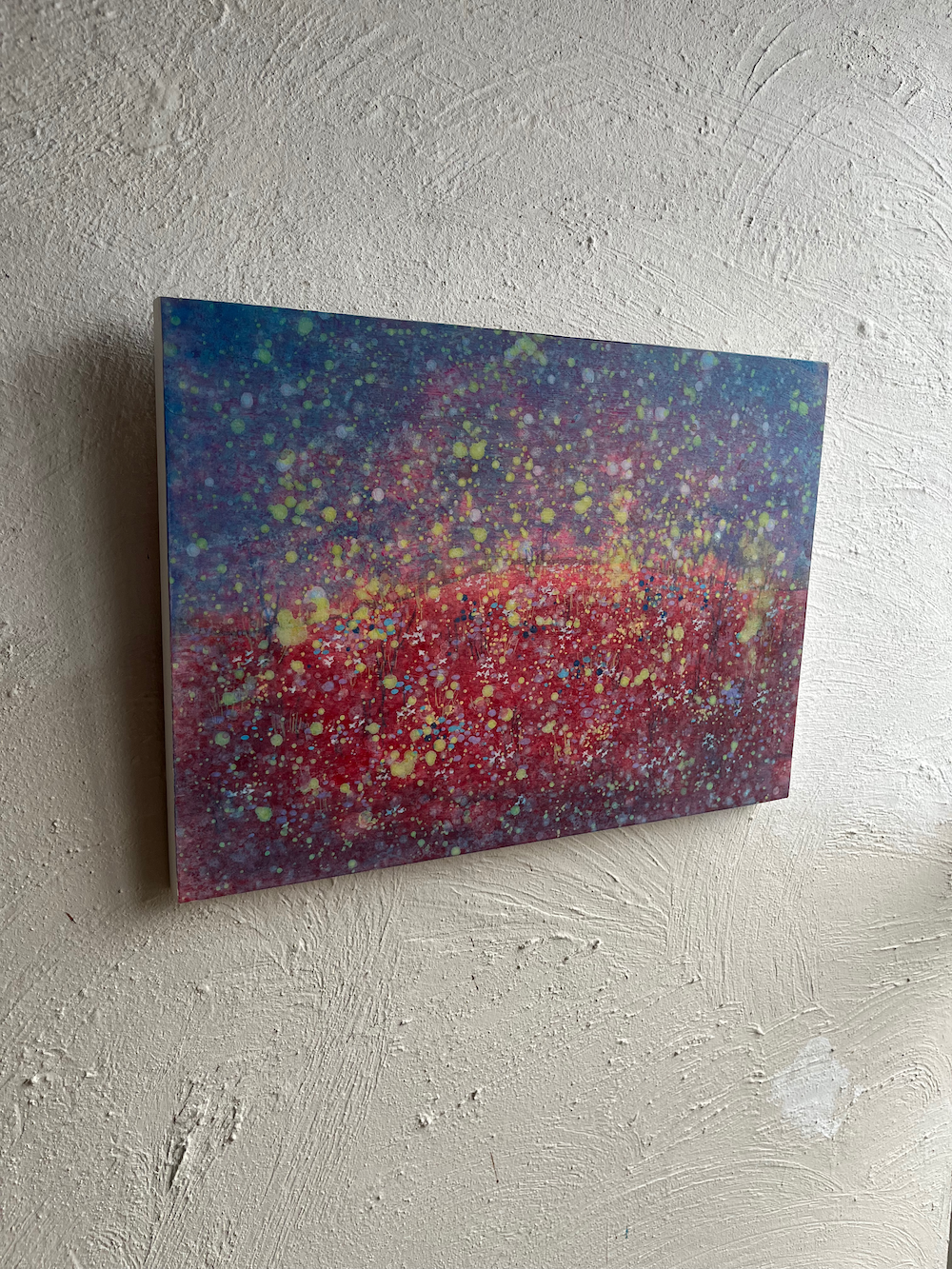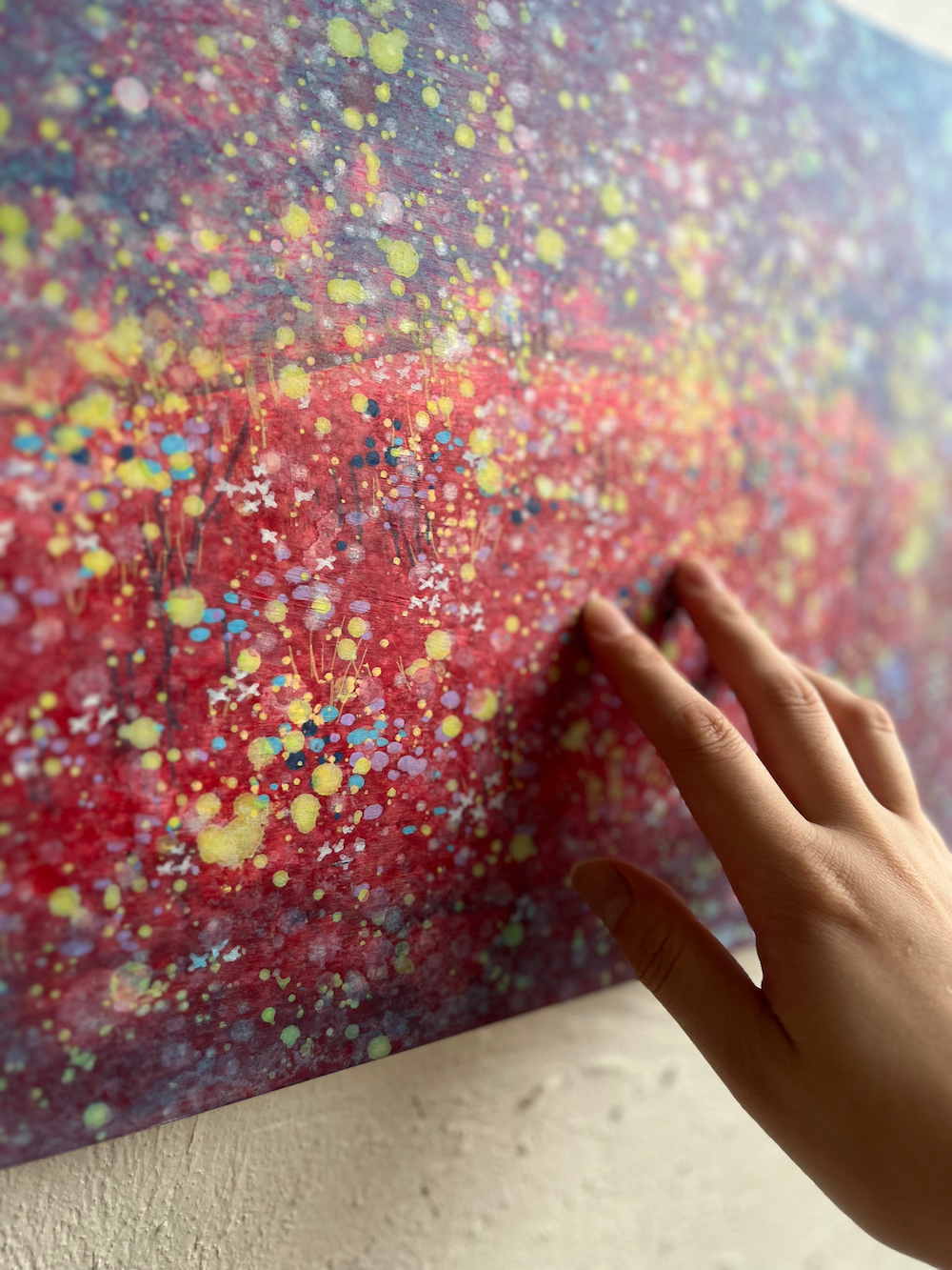 「もっと自由に、絵との関係を楽しんでほしい」「絵についてしまった傷や風合いの変化も、古道具の味わいのように楽しんでほしい」という願いから生まれた「触れる絵画」シリーズの1作品。絵の表面も優しく触ることができます。
