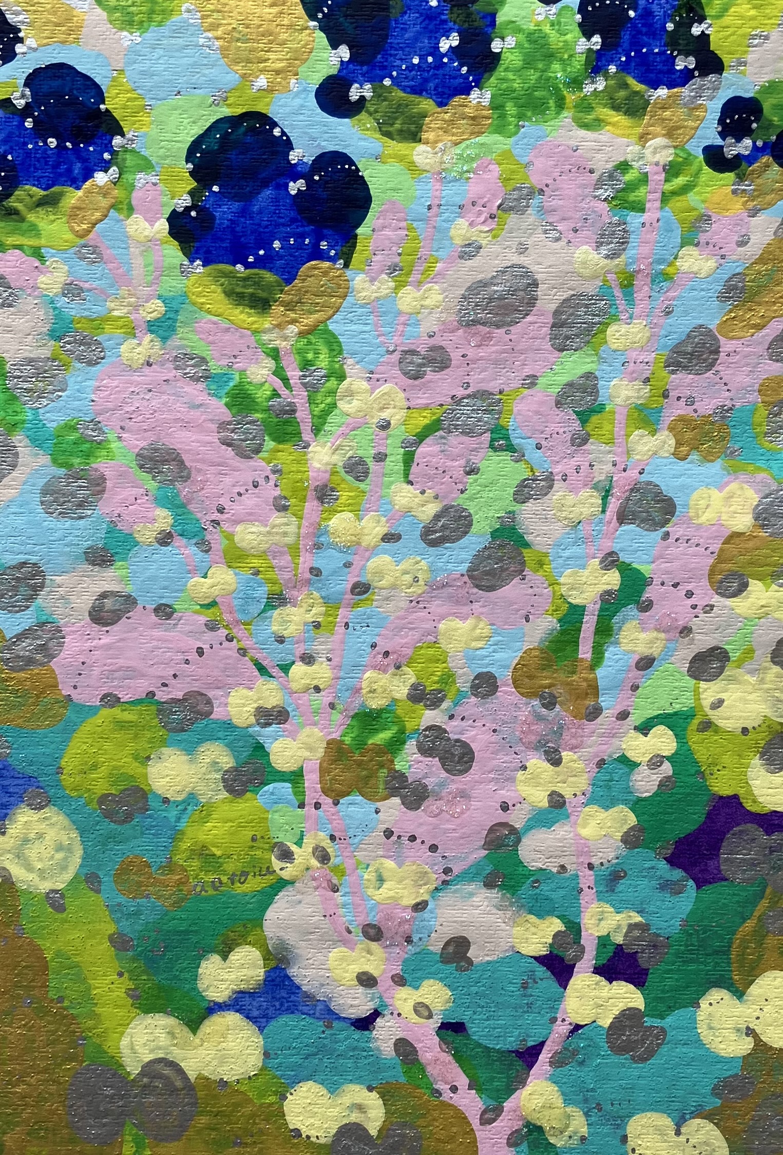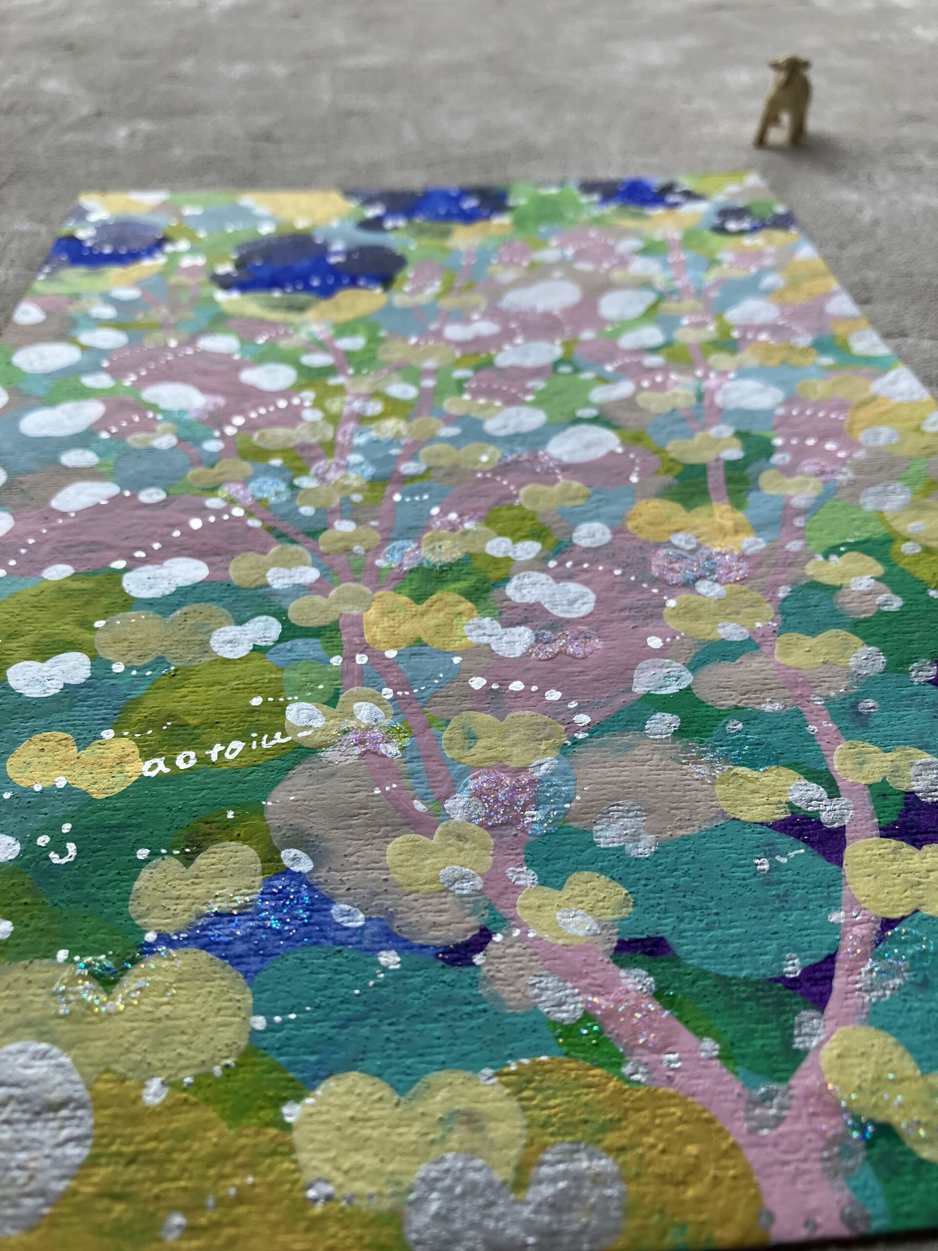 小さいころから描くのが好きでした。引っ込み思案な子どもで、今でもたいそう不器用な人、です。何とかなんとか、周りの人たちに助けられて生かされています。振り返ってみると、つらいときも、きれいだなぁ、素敵だなぁ、心動かされるものを表現したい想いだけは、ずっと、かすかに消えそうになりながらも、わたしの膝のうえにあった気がします。たとえば、なにも特別なことは出来ないけれど、わたしにできることで、描くことで、わたしの絵に出会って下さった人の笑顔があることで、巡り巡って恩返しができるのではないか、と思っています。