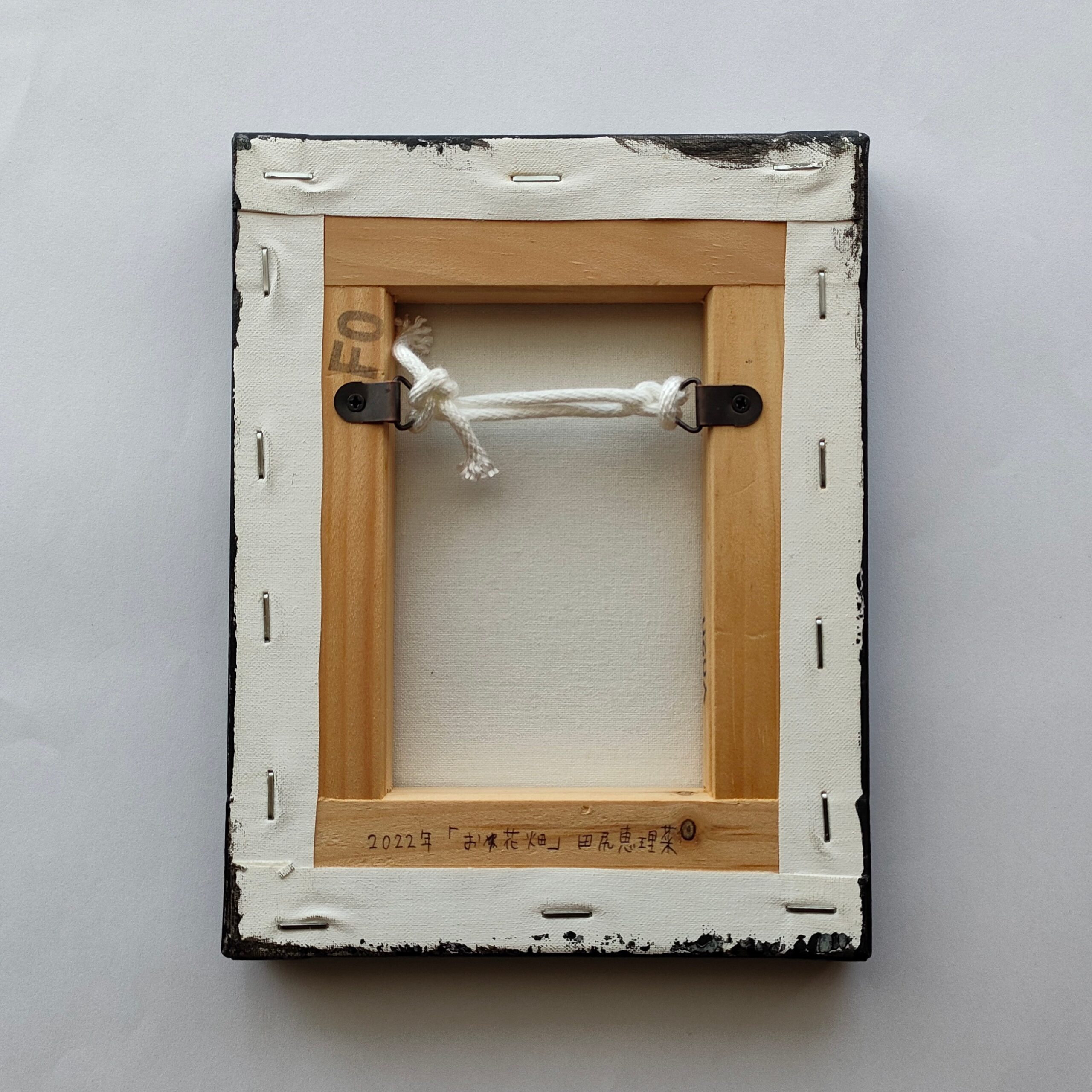 キャンバスや木製パネルの作品は裏面に吊り紐をお付けしております。