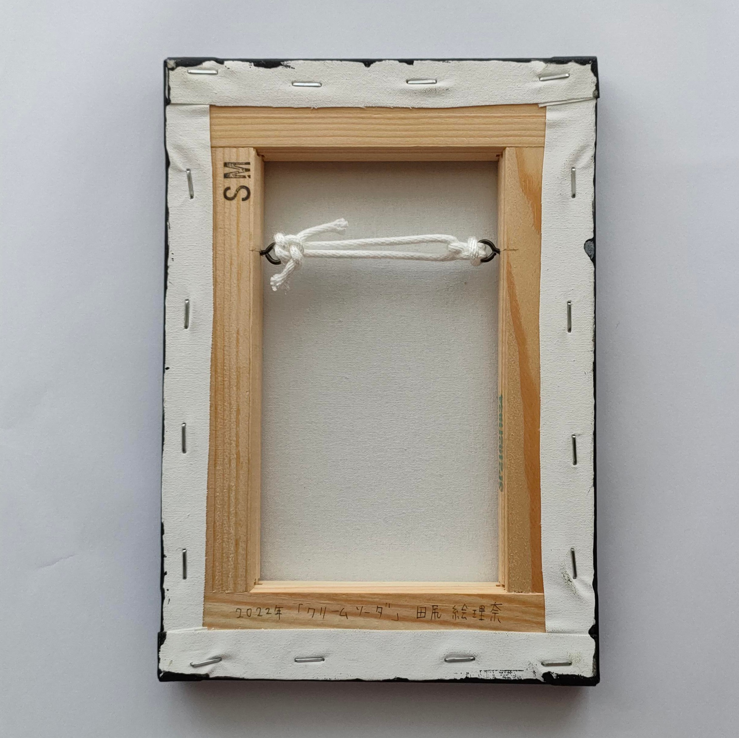 キャンバスや木製パネルの作品は裏面に吊り紐をお付けしております。