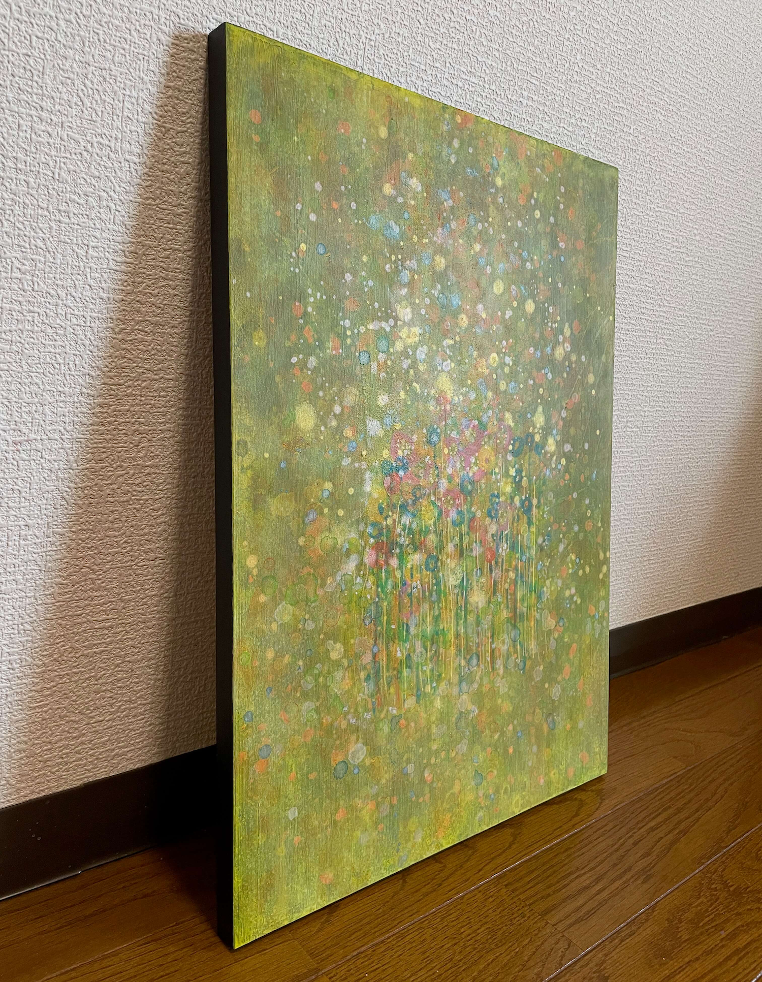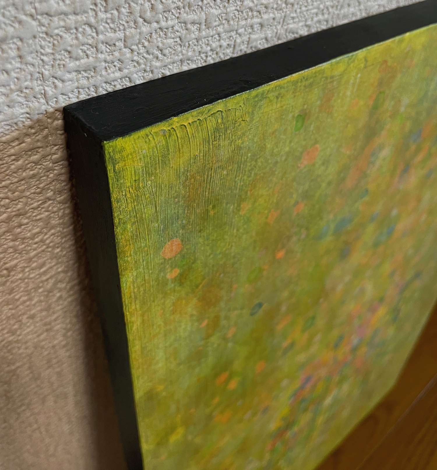 「もっと自由に、絵との関係を楽しんでほしい」「絵についてしまった傷や風合いの変化も、古道具の味わいのように楽しんでほしい」という願いから生まれた「触れる絵画」シリーズの1作品。絵の表面も優しく触ることができます。