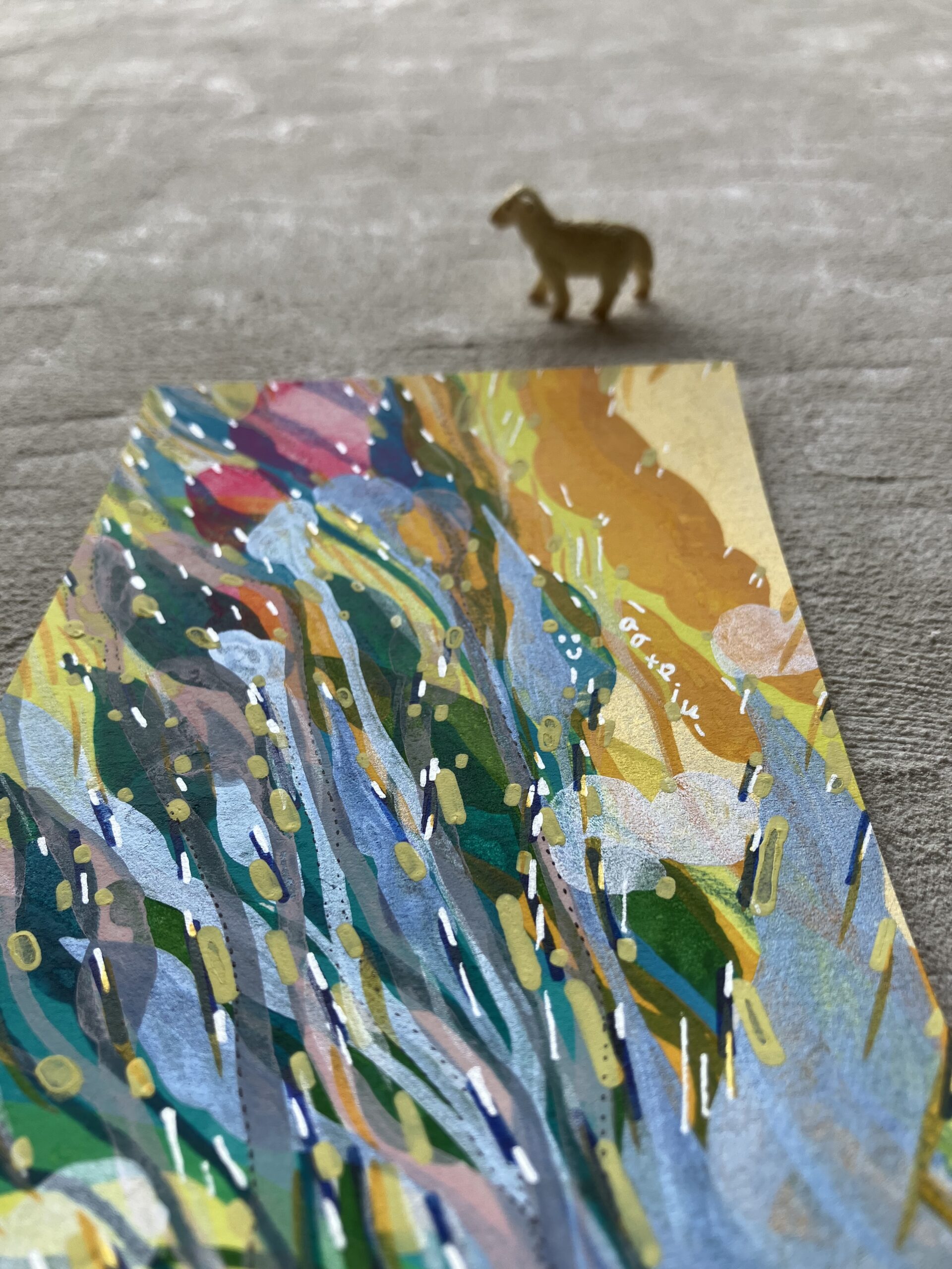 小さいころから描くのが好きでした。引っ込み思案な子どもで、今でもたいそう不器用な人、です。何とかなんとか、周りの人たちに助けられて生かされています。振り返ってみると、つらいときも、きれいだなぁ、素敵だなぁ、心動かされるものを表現したい想いだけは、ずっと、かすかに消えそうになりながらも、わたしの膝のうえにあった気がします。たとえば、なにも特別なことは出来ないけれど、わたしにできることで、描くことで、わたしの絵に出会って下さった人の笑顔があることで、巡り巡って恩返しができるのではないか、と思っています。
