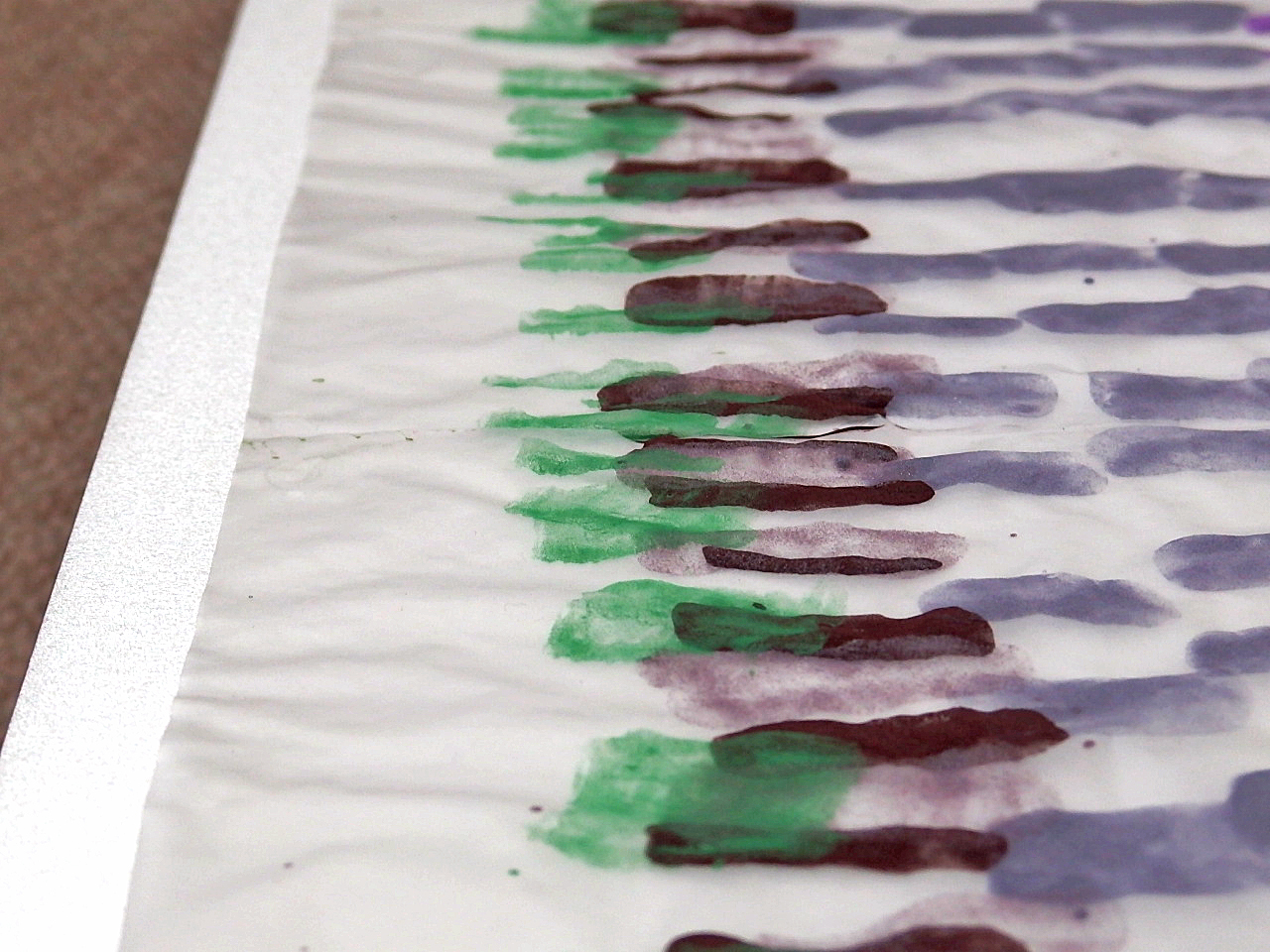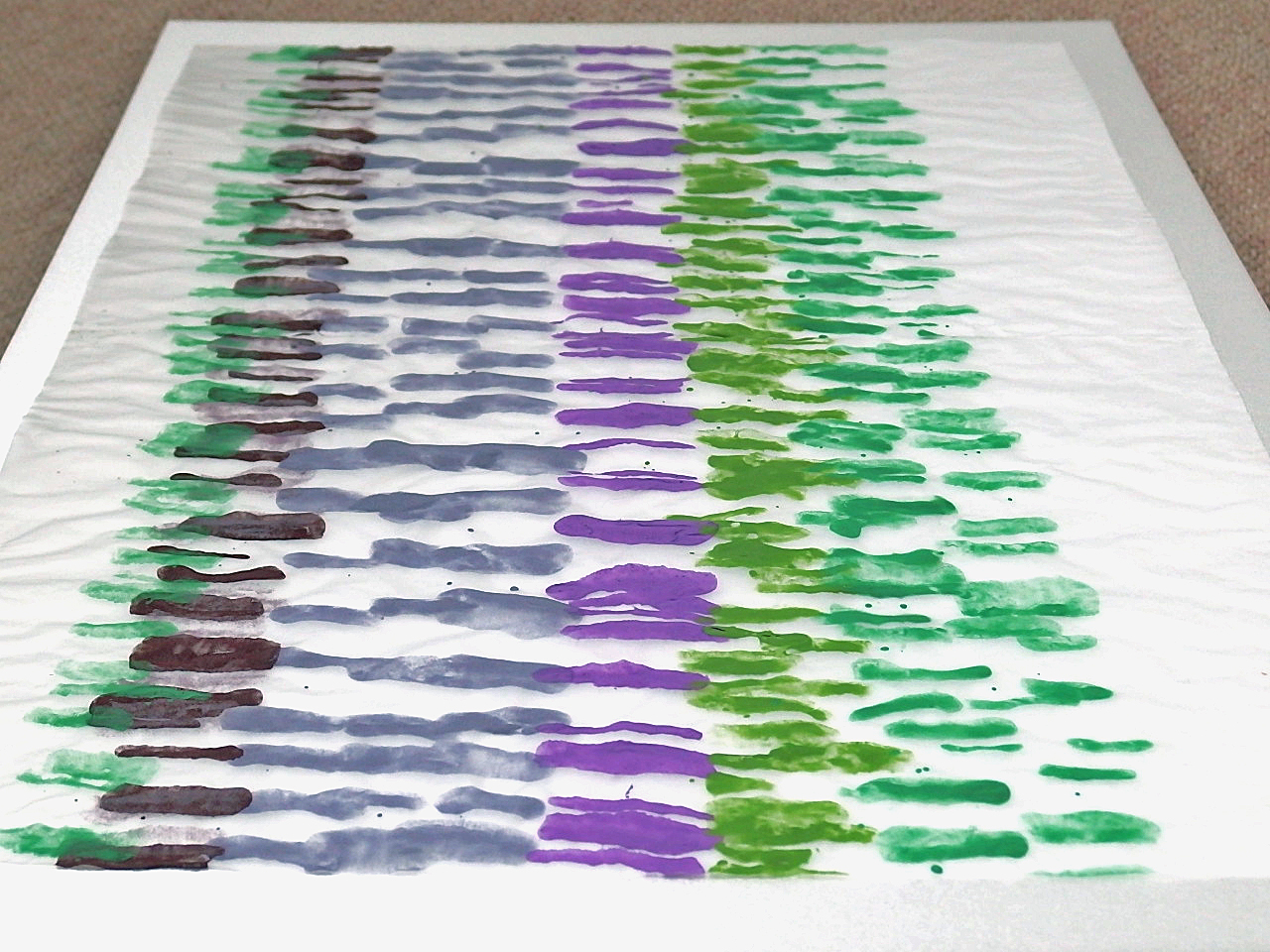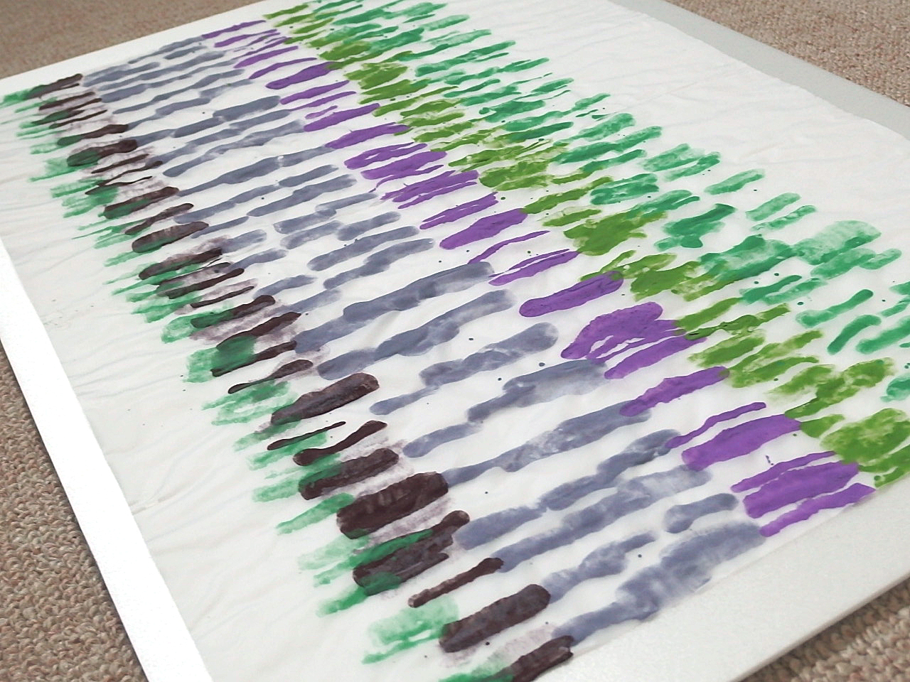 スチレンペーパーという光沢のある真っ白な素材に、岩絵の具自体の美しさが際立ちます。この組み合わせを発見し、気に入って使い続けています。