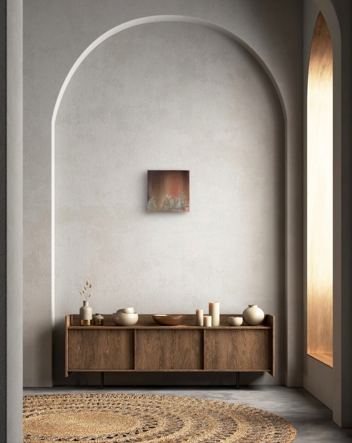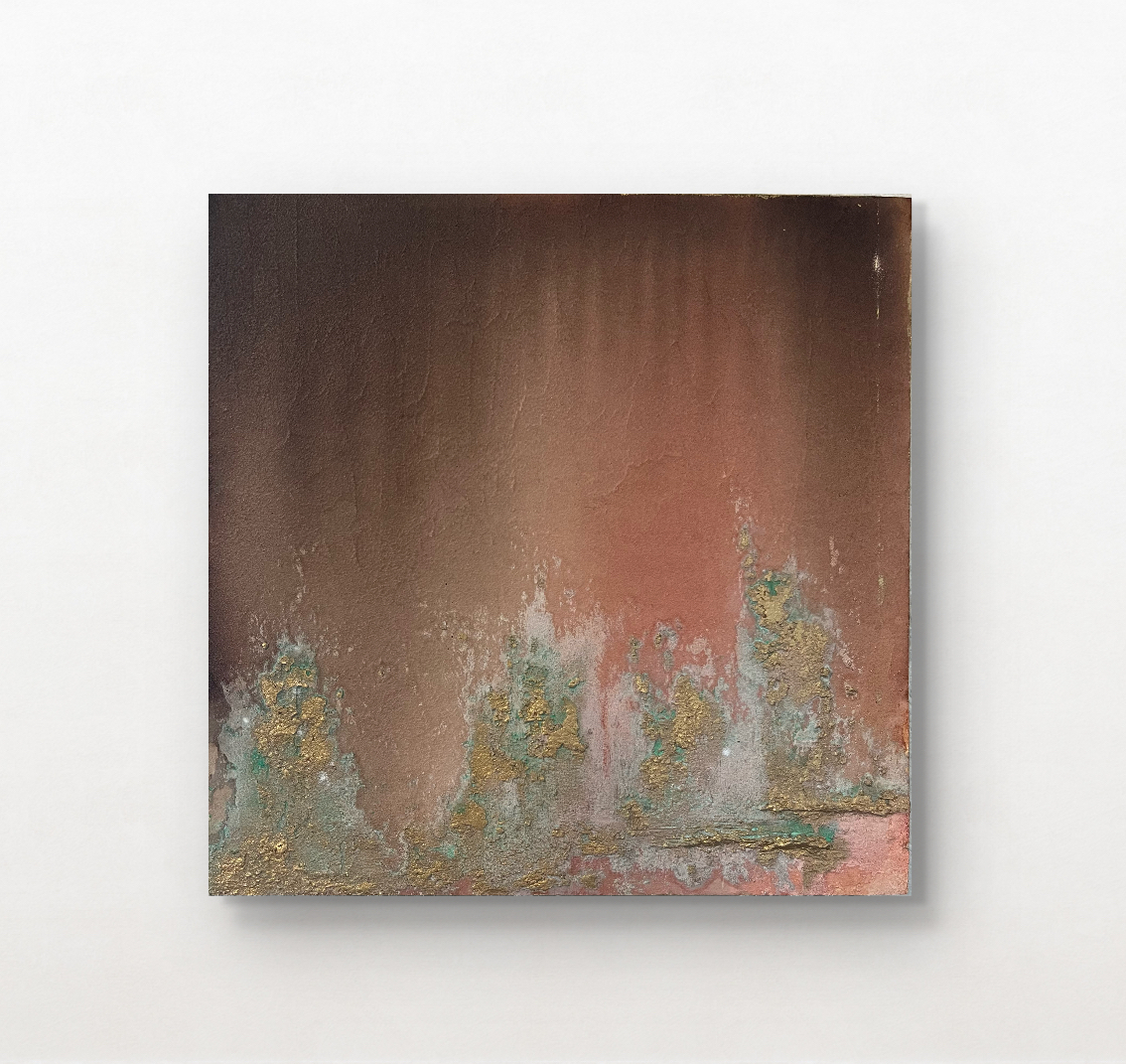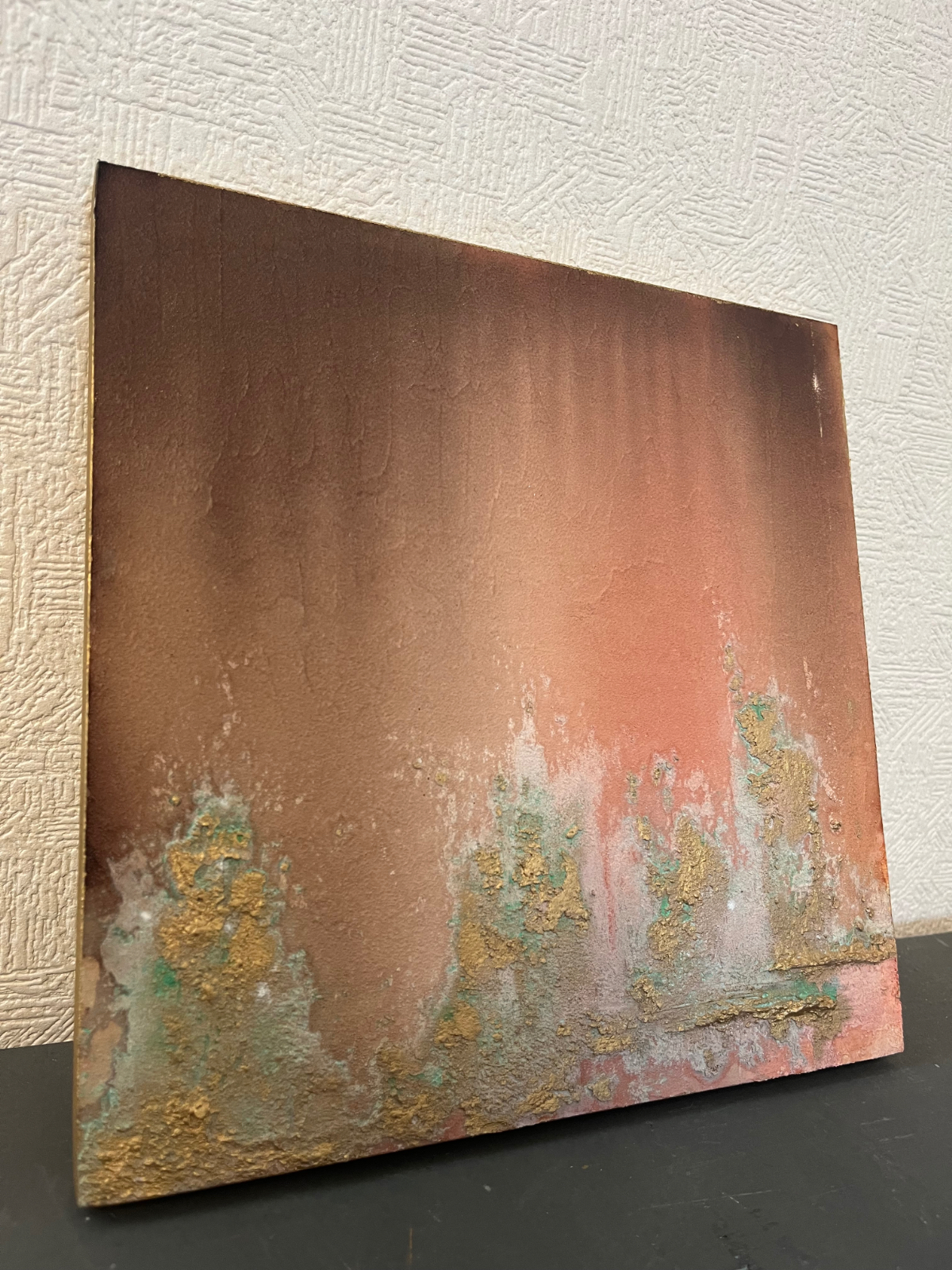 “劣化や経年劣化が美しい”というテーマを掲げ、アルコールインクとアクリルを使用して。