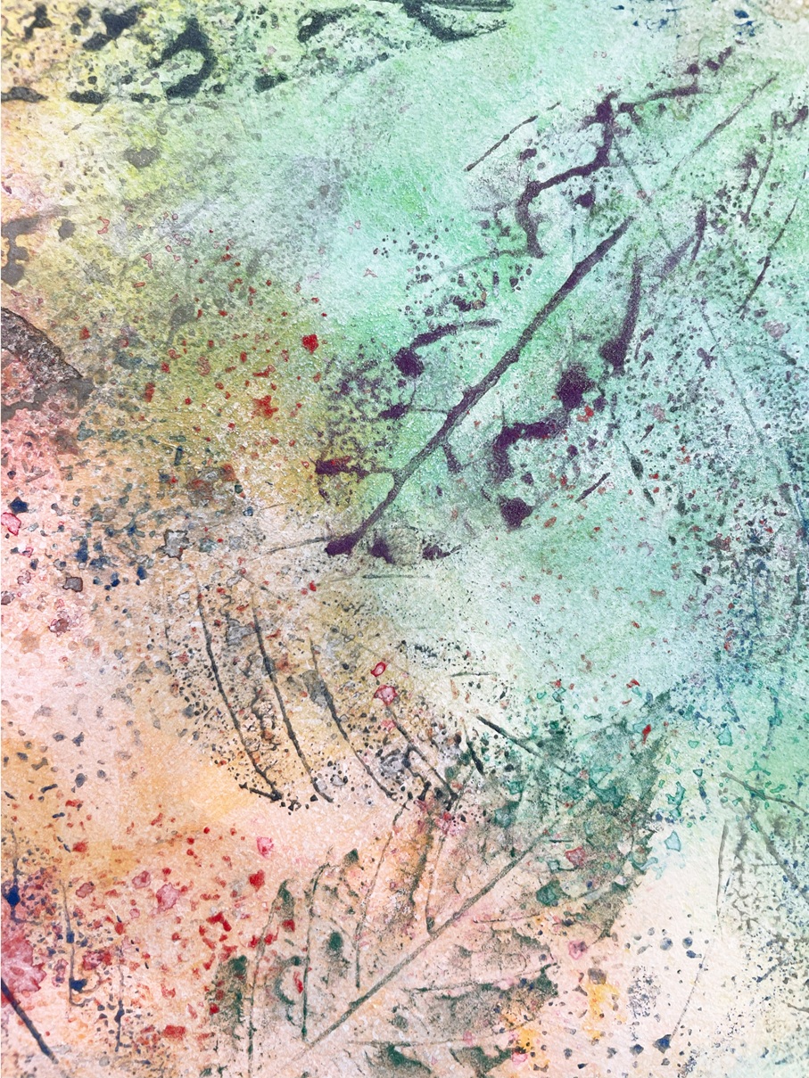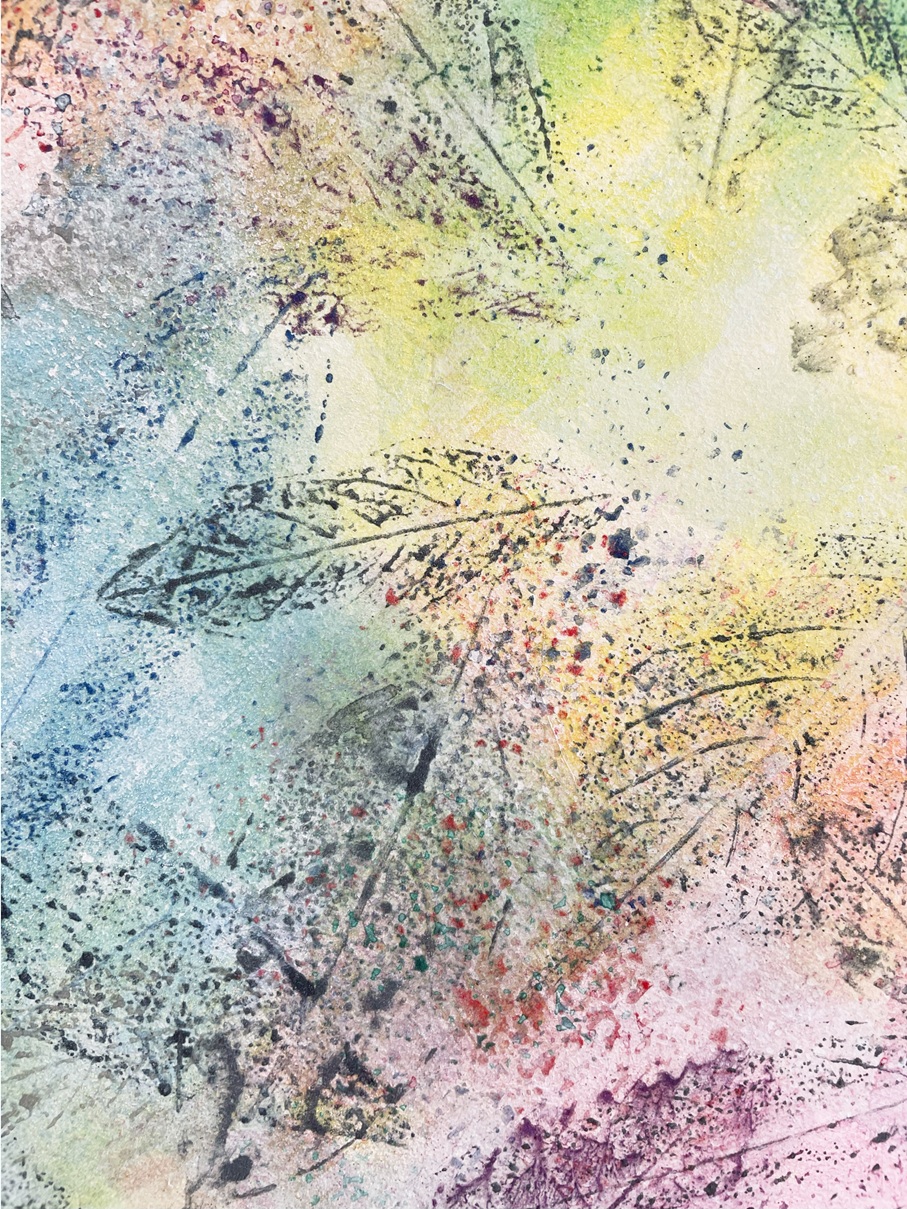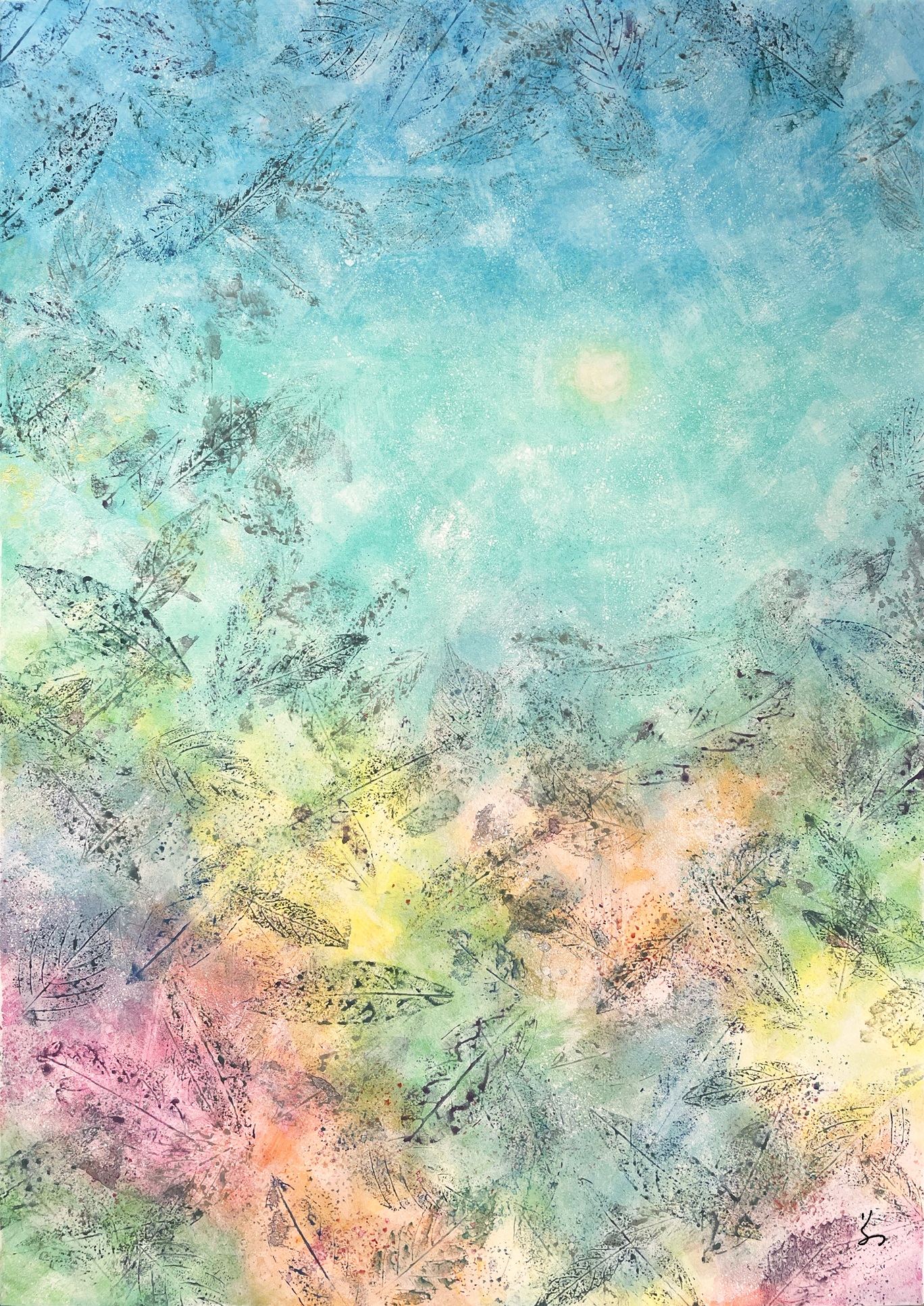 日本画絵具の美しさと、美しいだけではない「何か」を感じてもらえるように描き上げました。