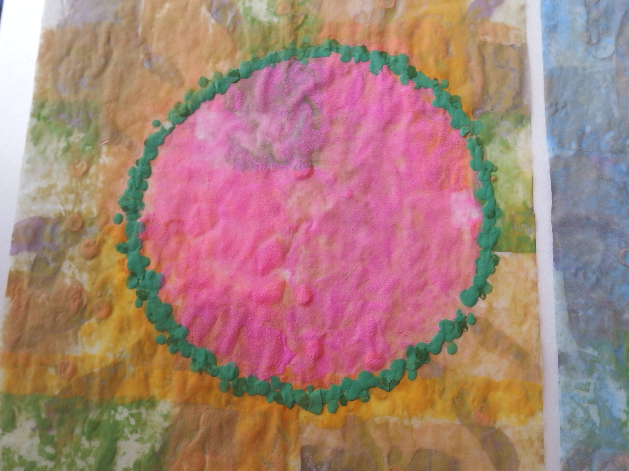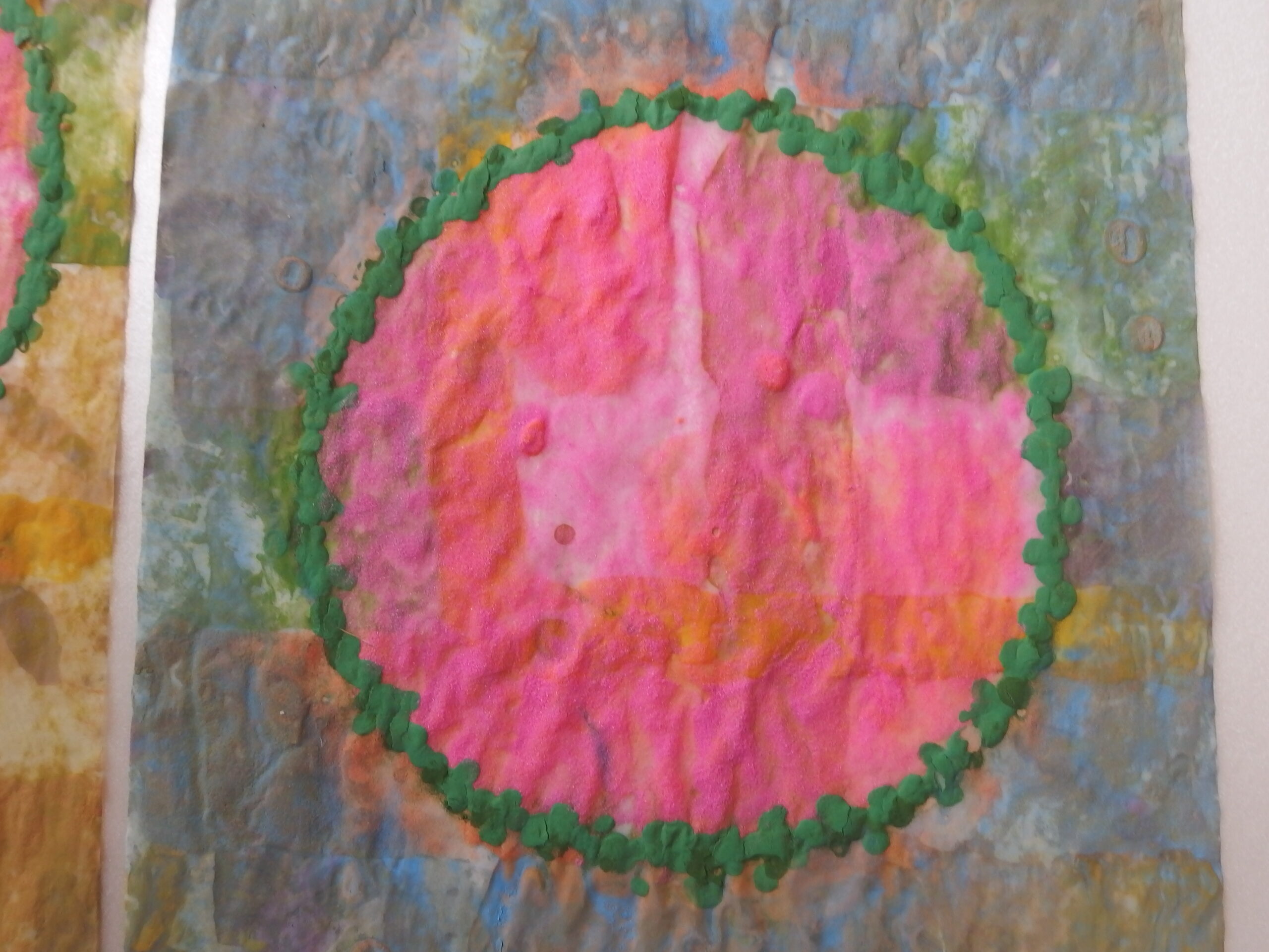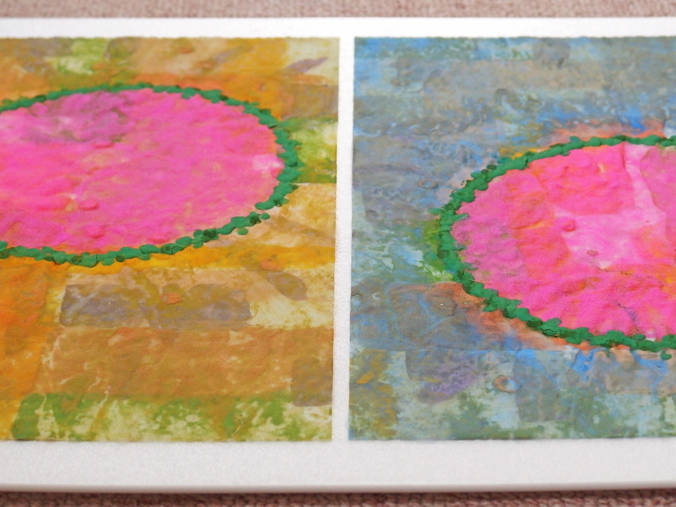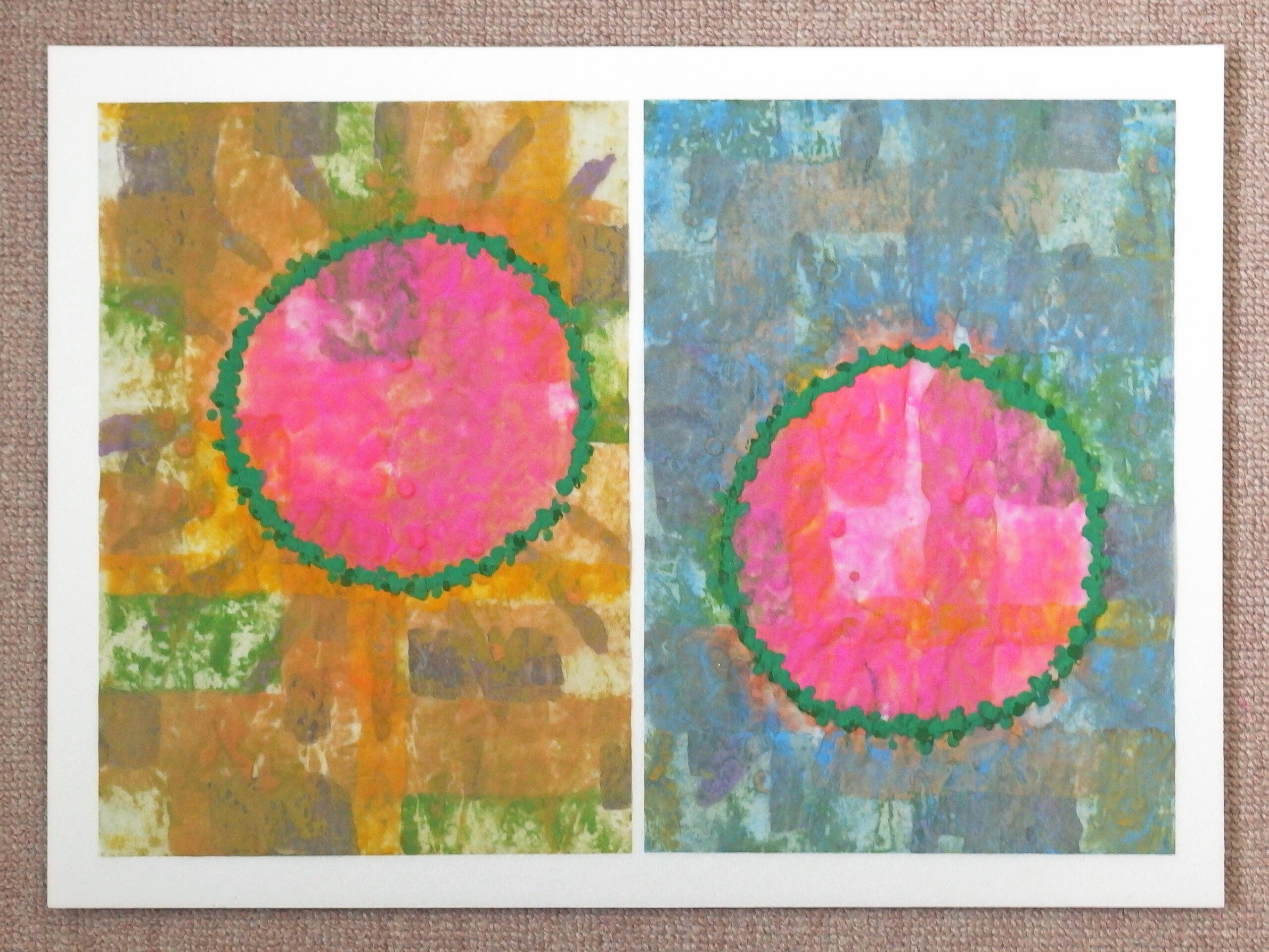スチレンペーパーという光沢のある真っ白な素材に、岩絵の具自体の美しさが際立ちます。この組み合わせを発見し、気に入って使い続けています。
