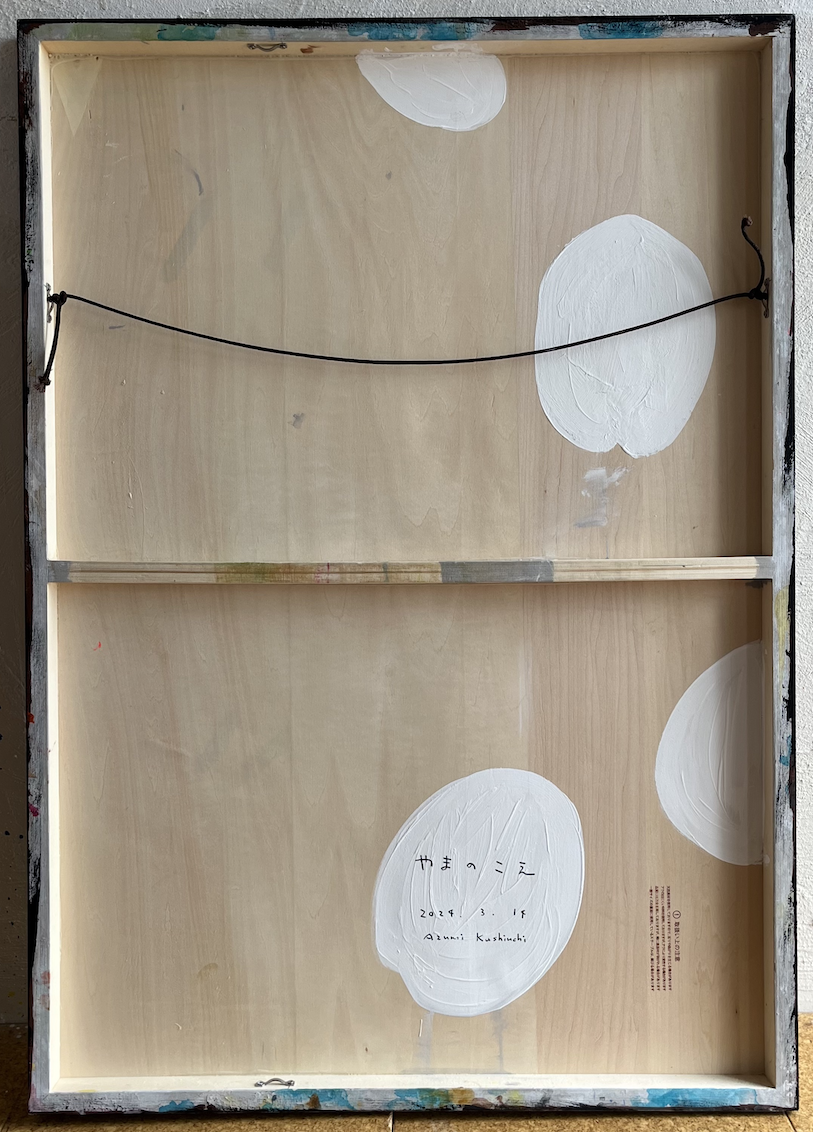 「もっと自由に、絵との関係を楽しんでほしい」「絵についてしまった傷や風合いの変化も、古道具の味わいのように楽しんでほしい」という願いから生まれた「触れる絵画」シリーズの1作品。絵の表面も優しく触ることができます。
