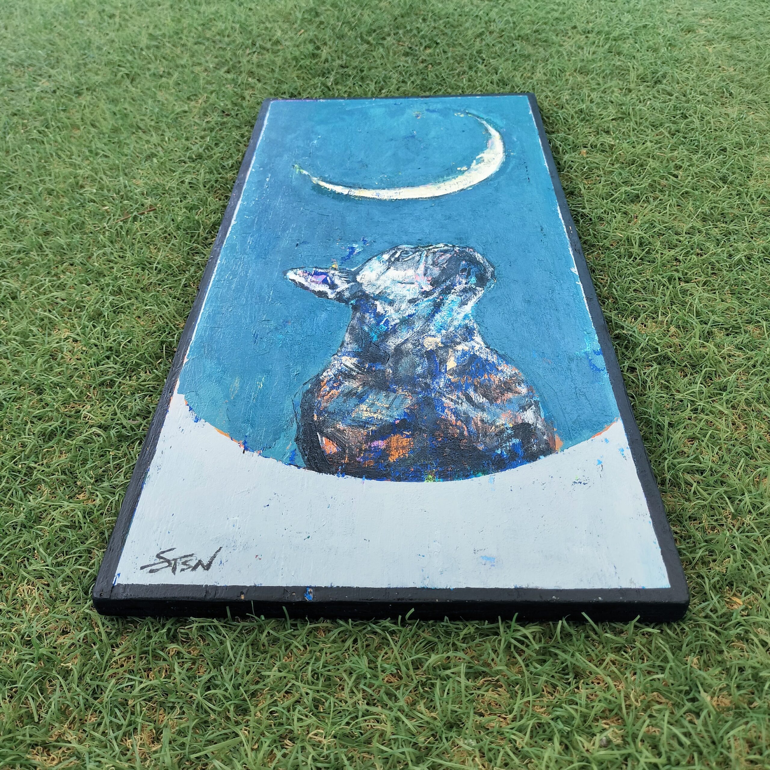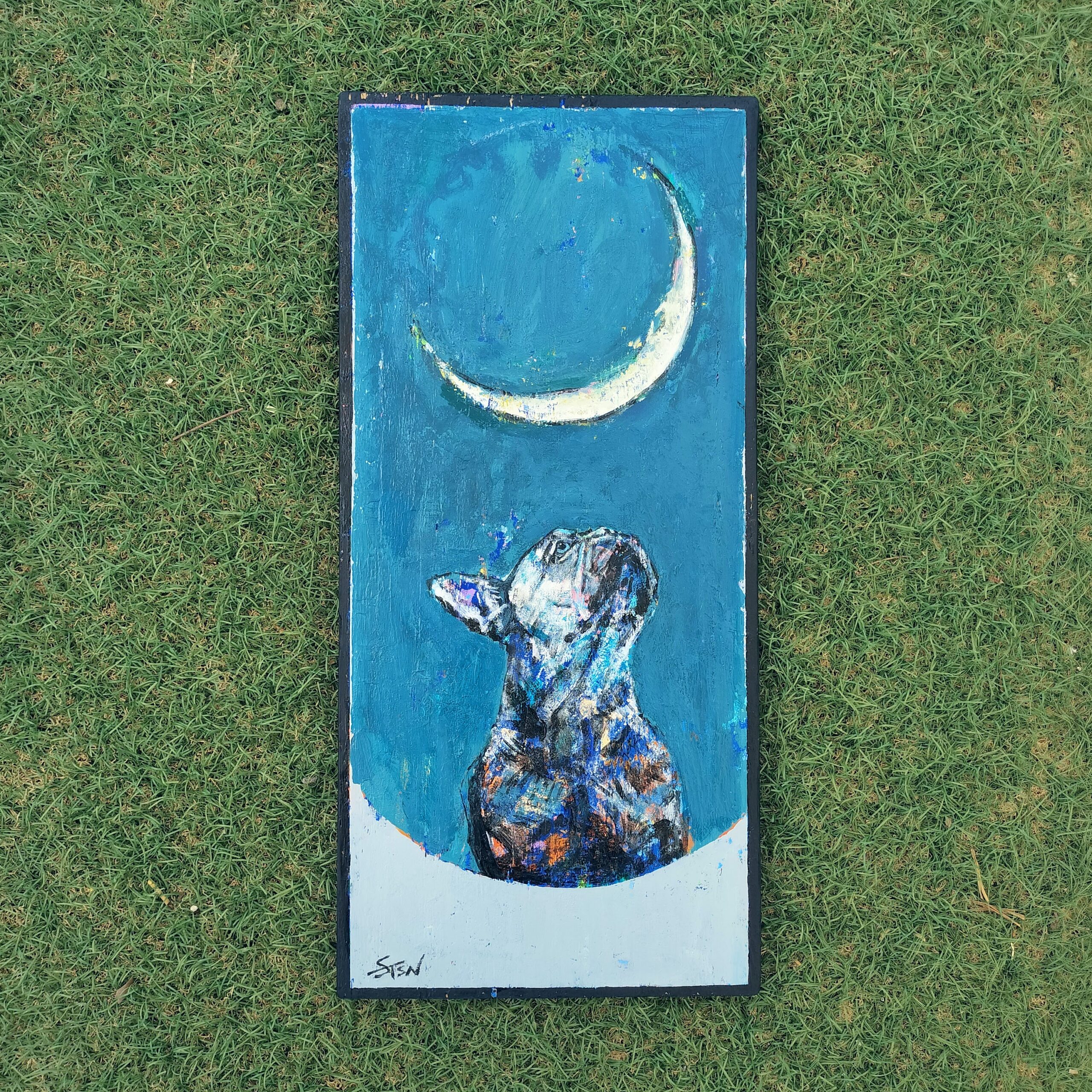 この作品は、フレンチブルドッグと月だけが知っている、特別なひとときを切り取った物語です。