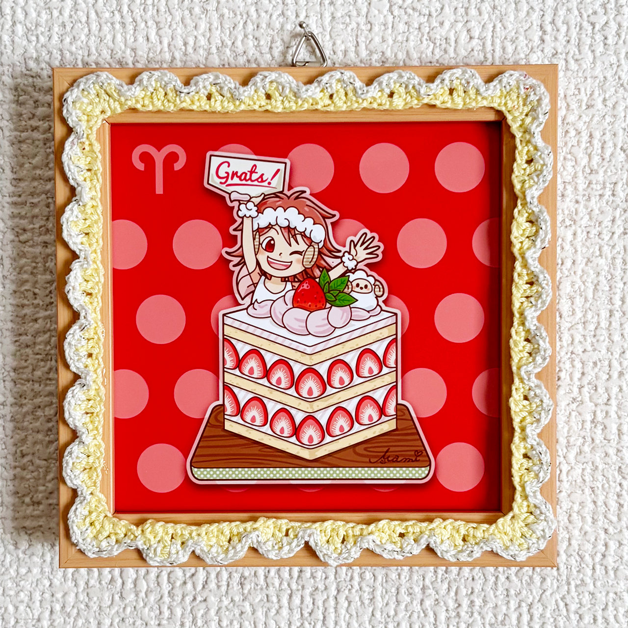 デジタルイラストとかぎ針編みを組み合わせた、額装作品です。