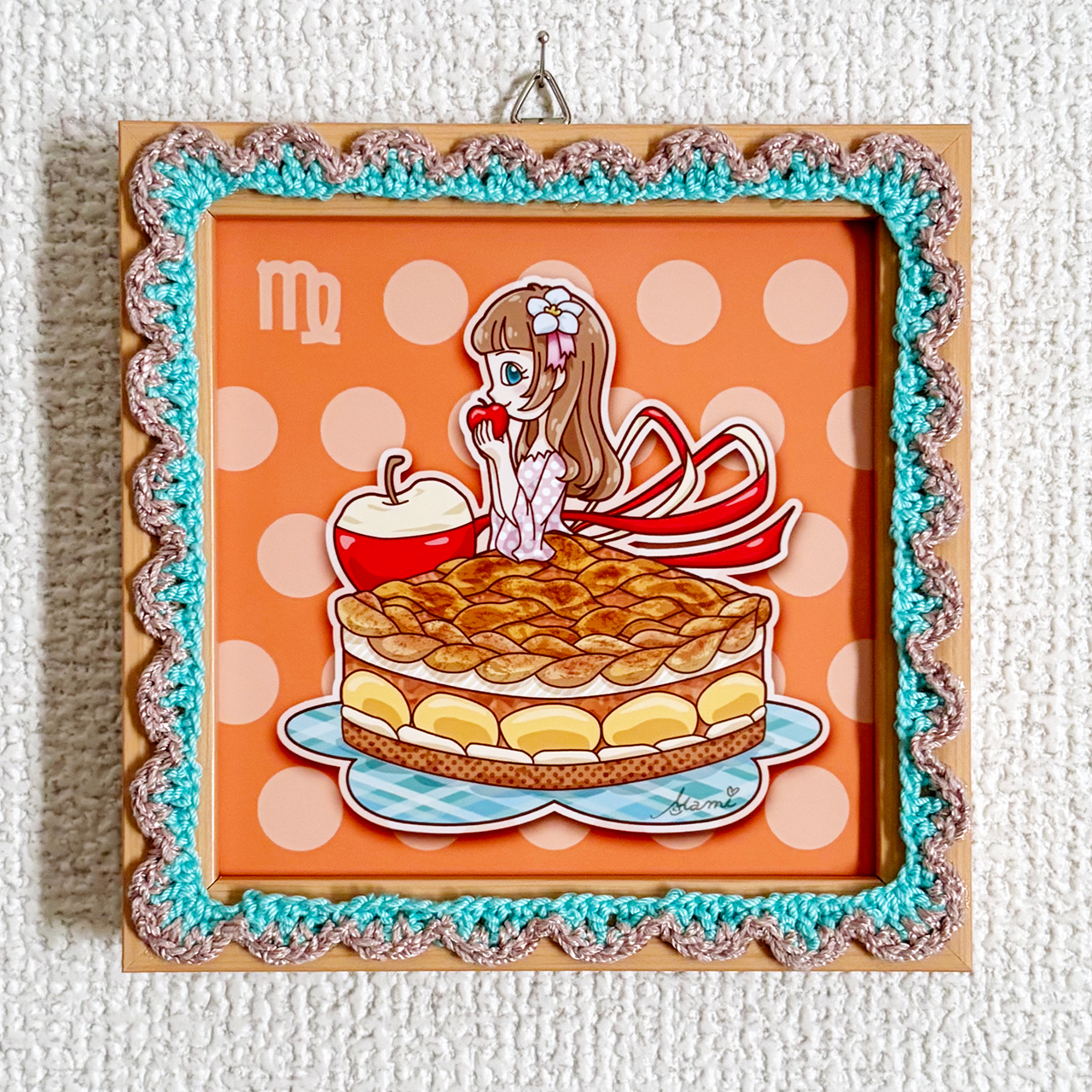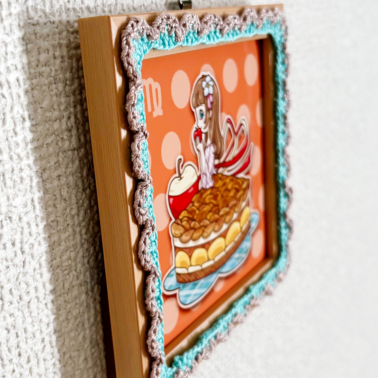 デジタルイラストとかぎ針編みを組み合わせた、額装作品です。