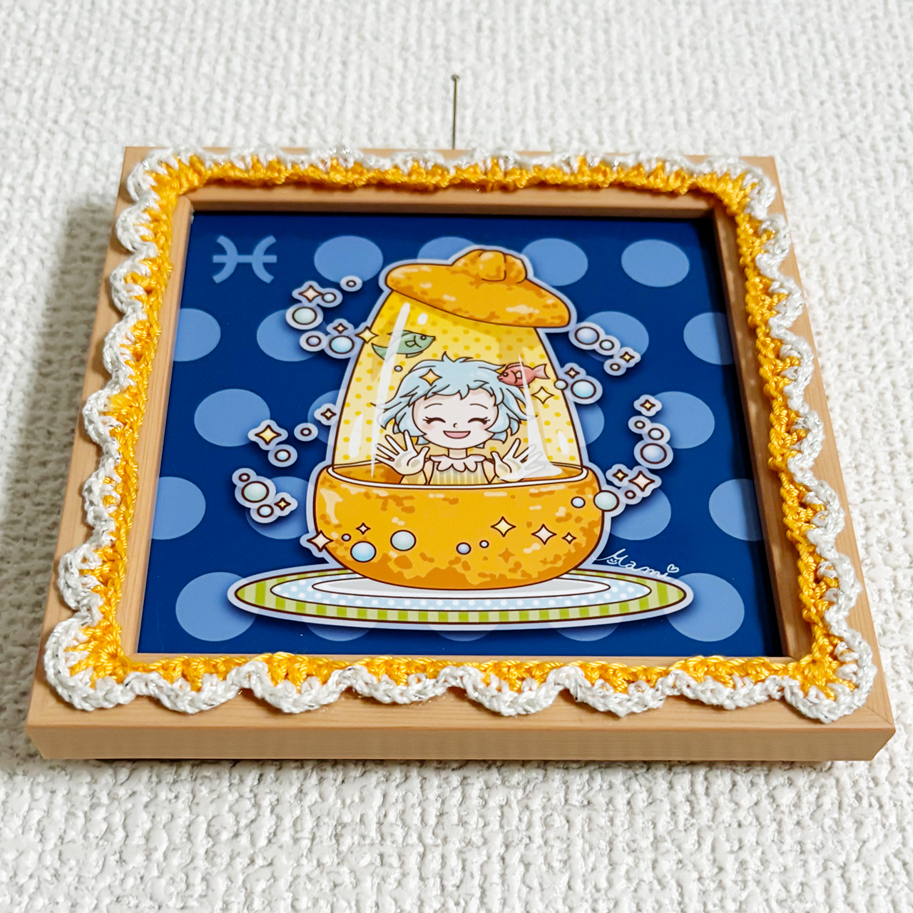 デジタルイラストとかぎ針編みを組み合わせた、額装作品です。