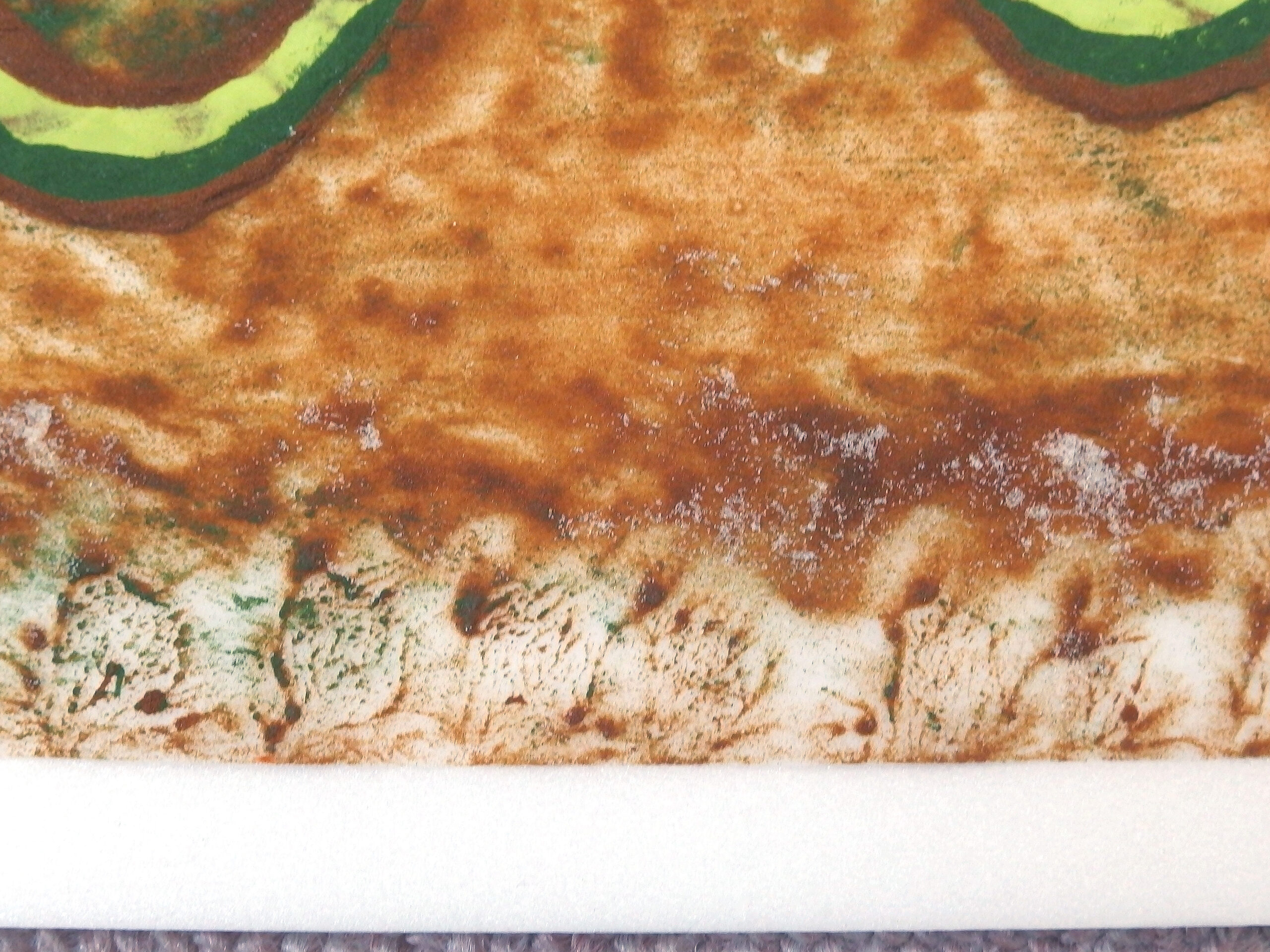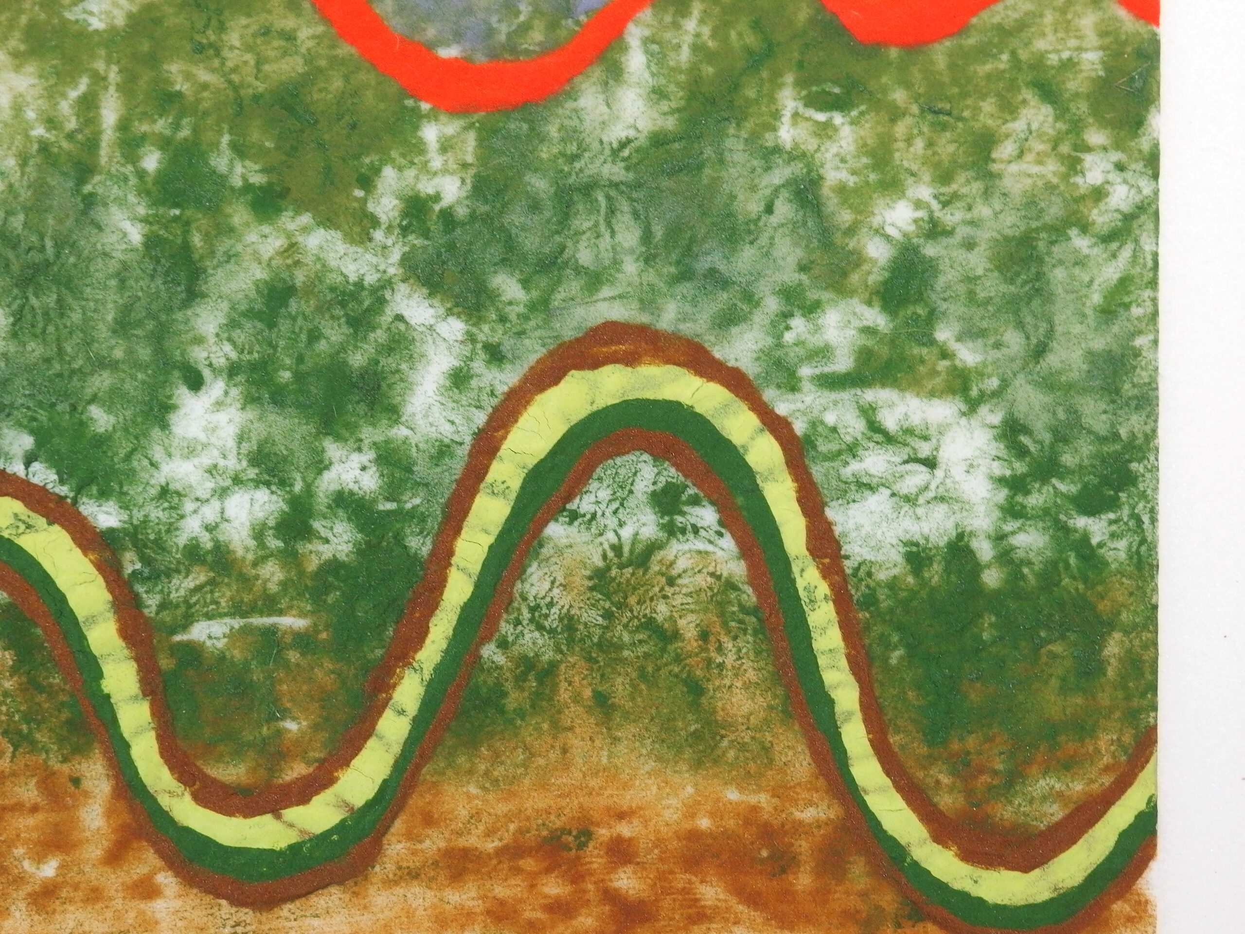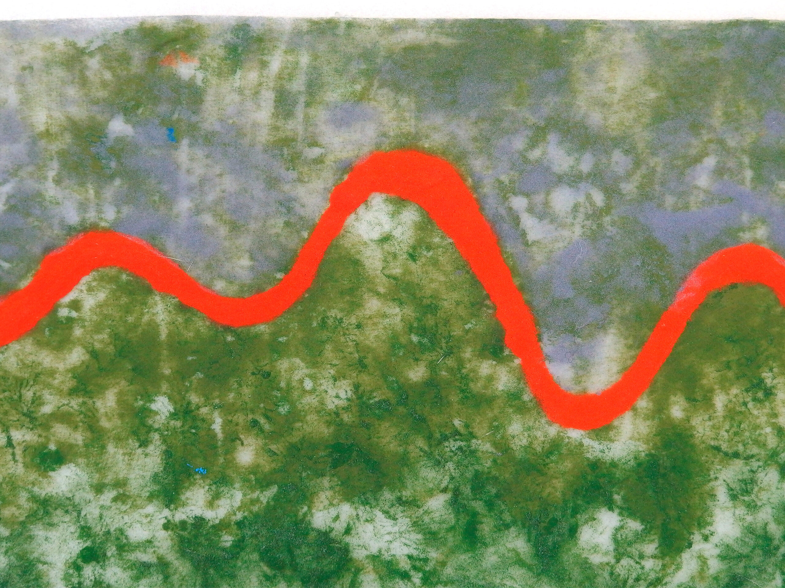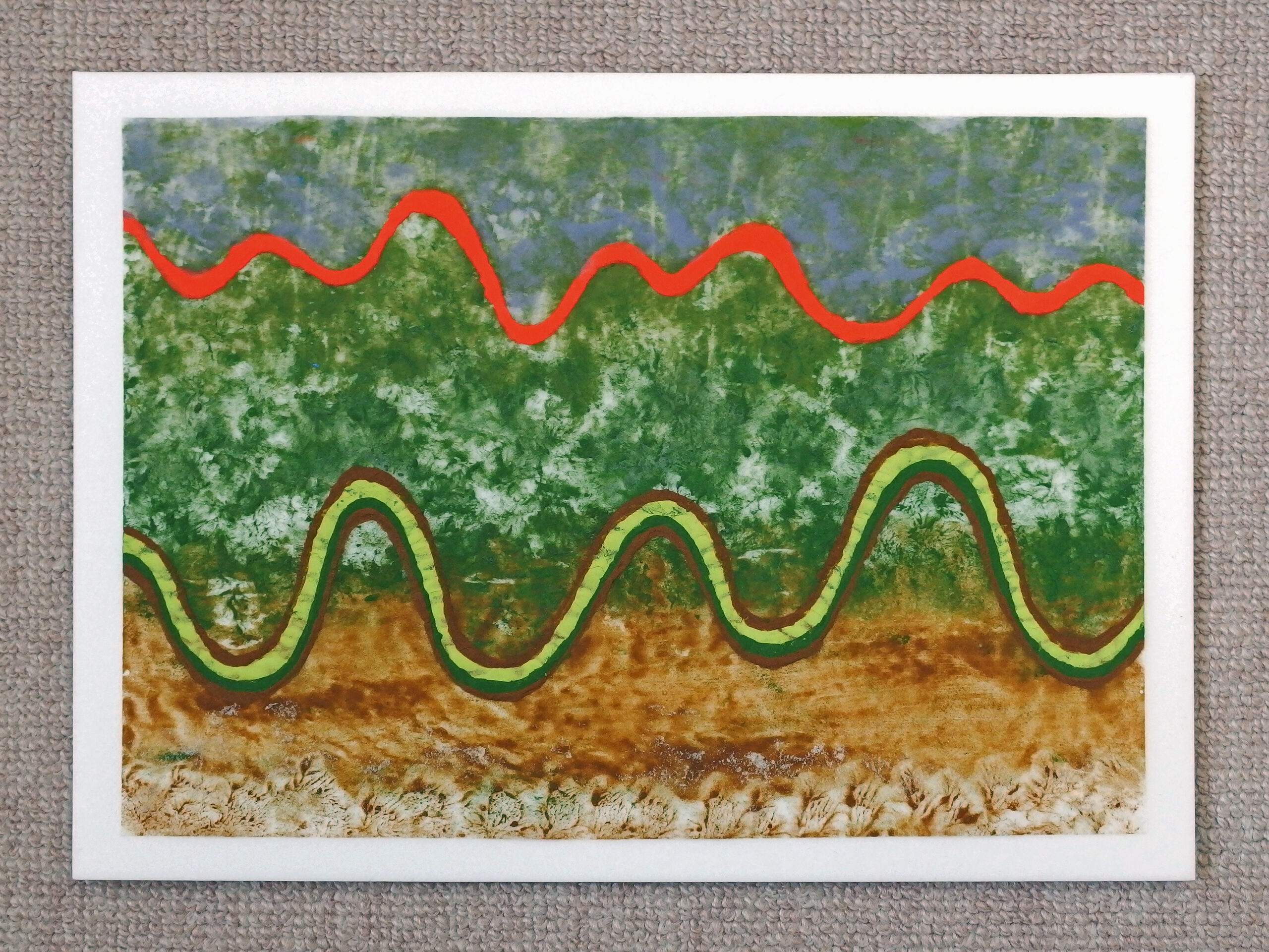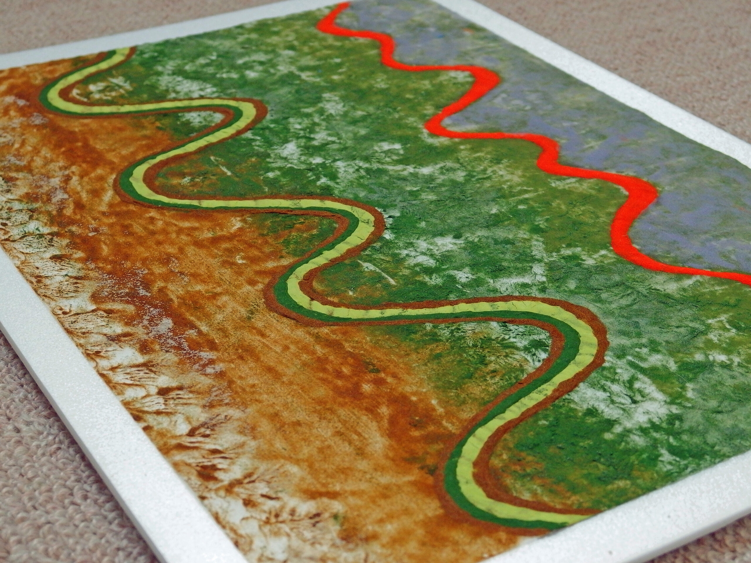 スチレンペーパーという光沢のある真っ白な素材に、岩絵の具自体の美しさが際立ちます。この組み合わせを発見し、気に入って使い続けています。
