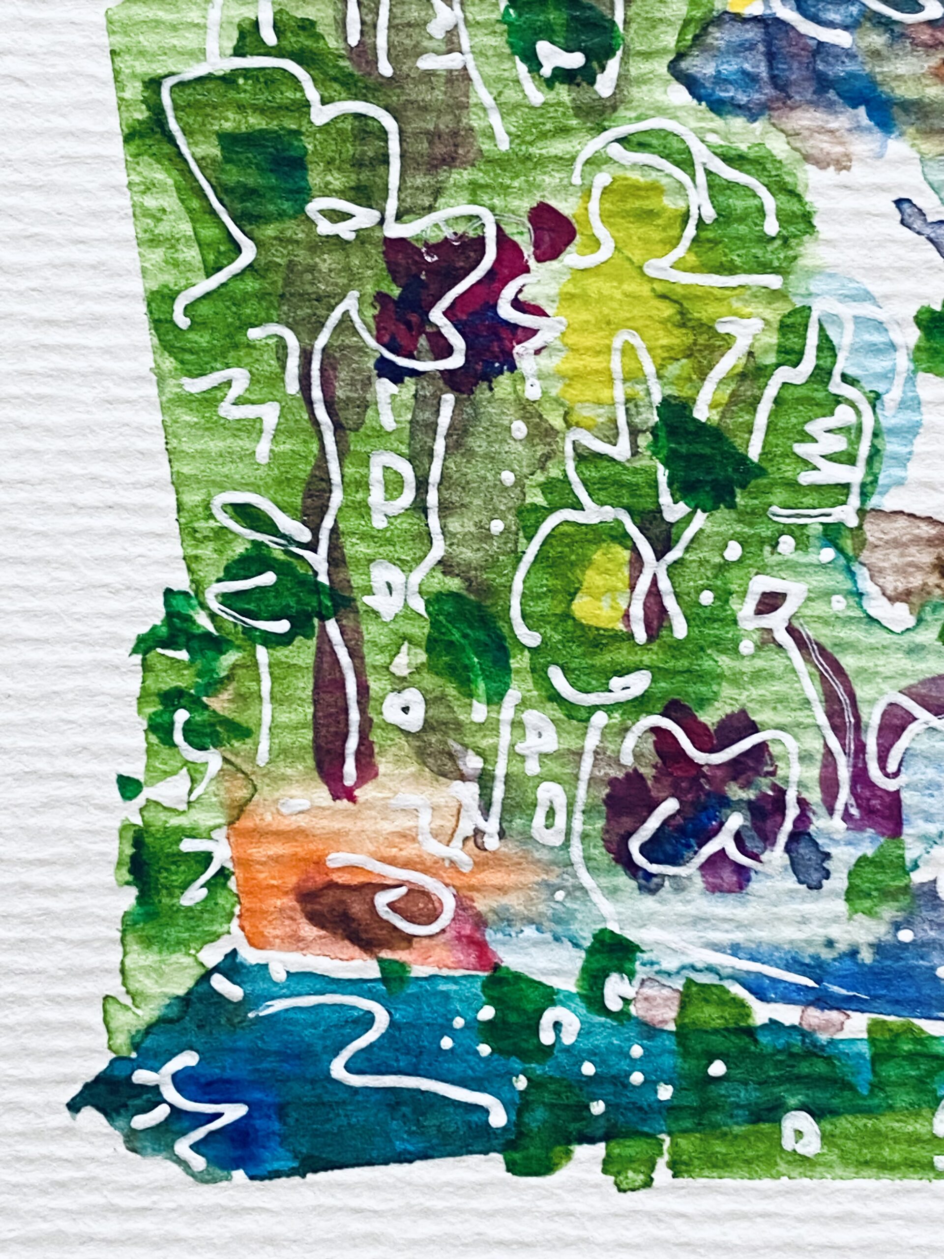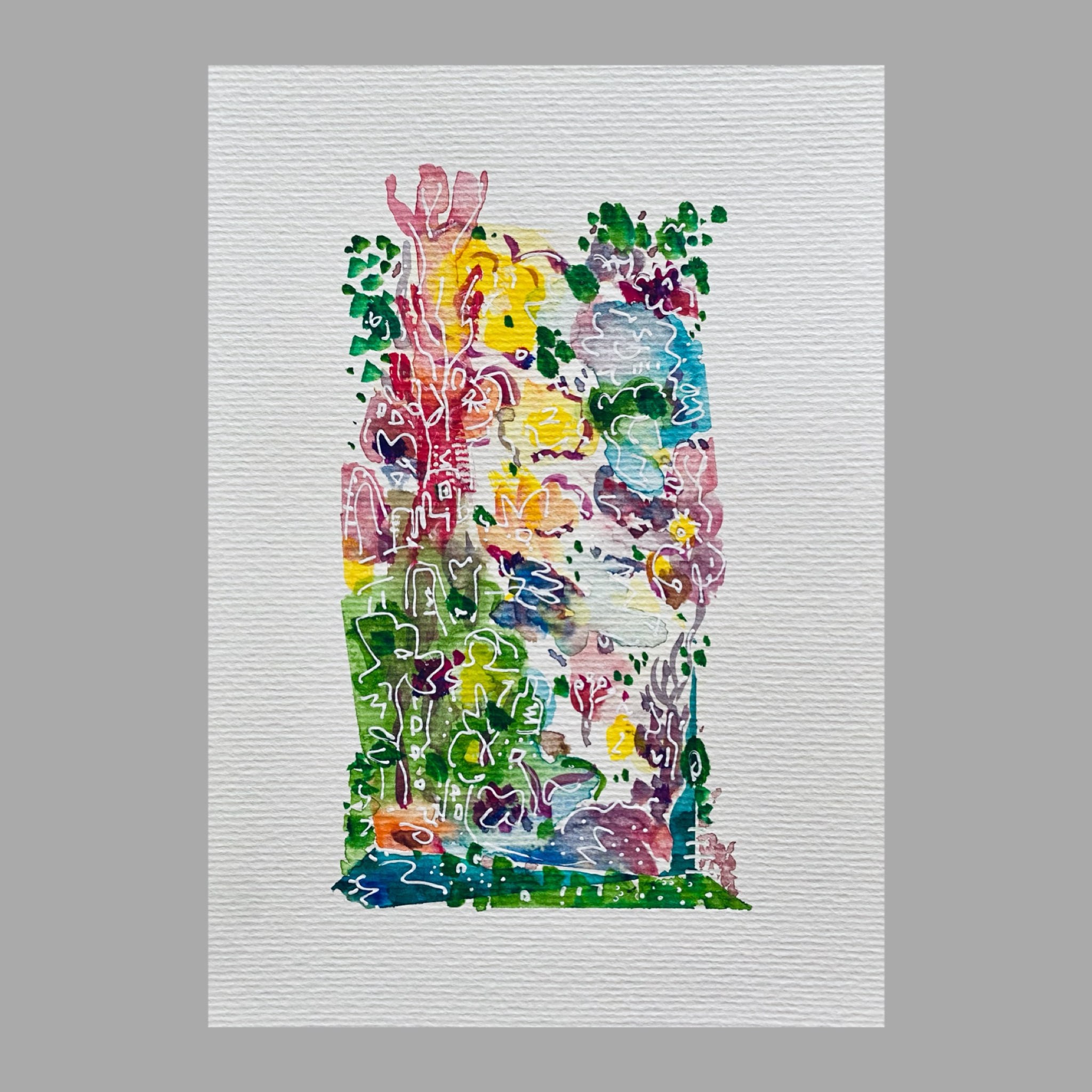 シリーズ作品を除き、タイトルは創作のはじめにあったものではなく、描き終えた時点で観る側となった私が名付けた「仮のタイトル」です。参考にするのも、答え合わせのように楽しむのも、あるいはまったく無視するのも自由です。抽象表現の色や形に意味を見出す手がかりは、あなたの記憶や経験のなかにしかありません。最終的な作品は観るかたの中で完成すべきものだと考えています。思い思いに想像の翼を羽ばたかせ、作品に新しい解釈を加えていただくことを望みます。