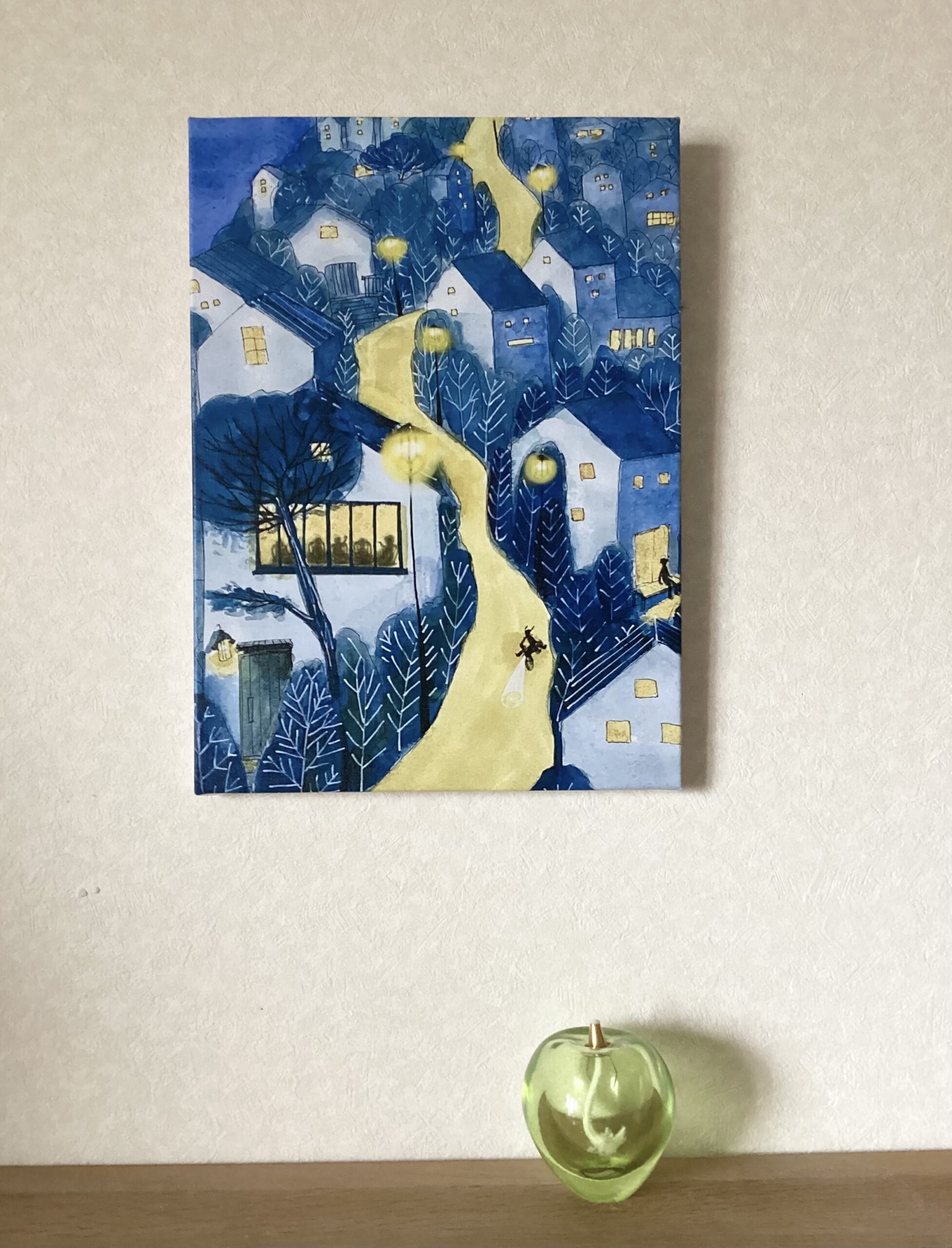 ○縦長の作品をコンパクトなF4号に。お気軽にちょっとしたスペースにお飾りいただけると思います。