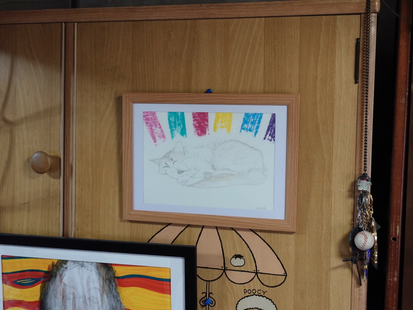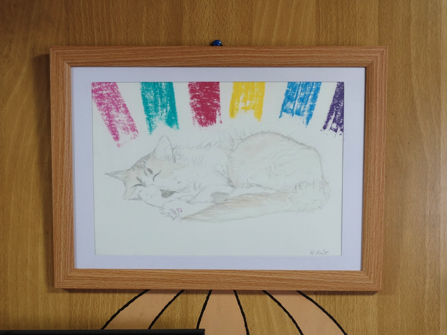 昼寝している猫とパステルのカラフルな背景を描きました。