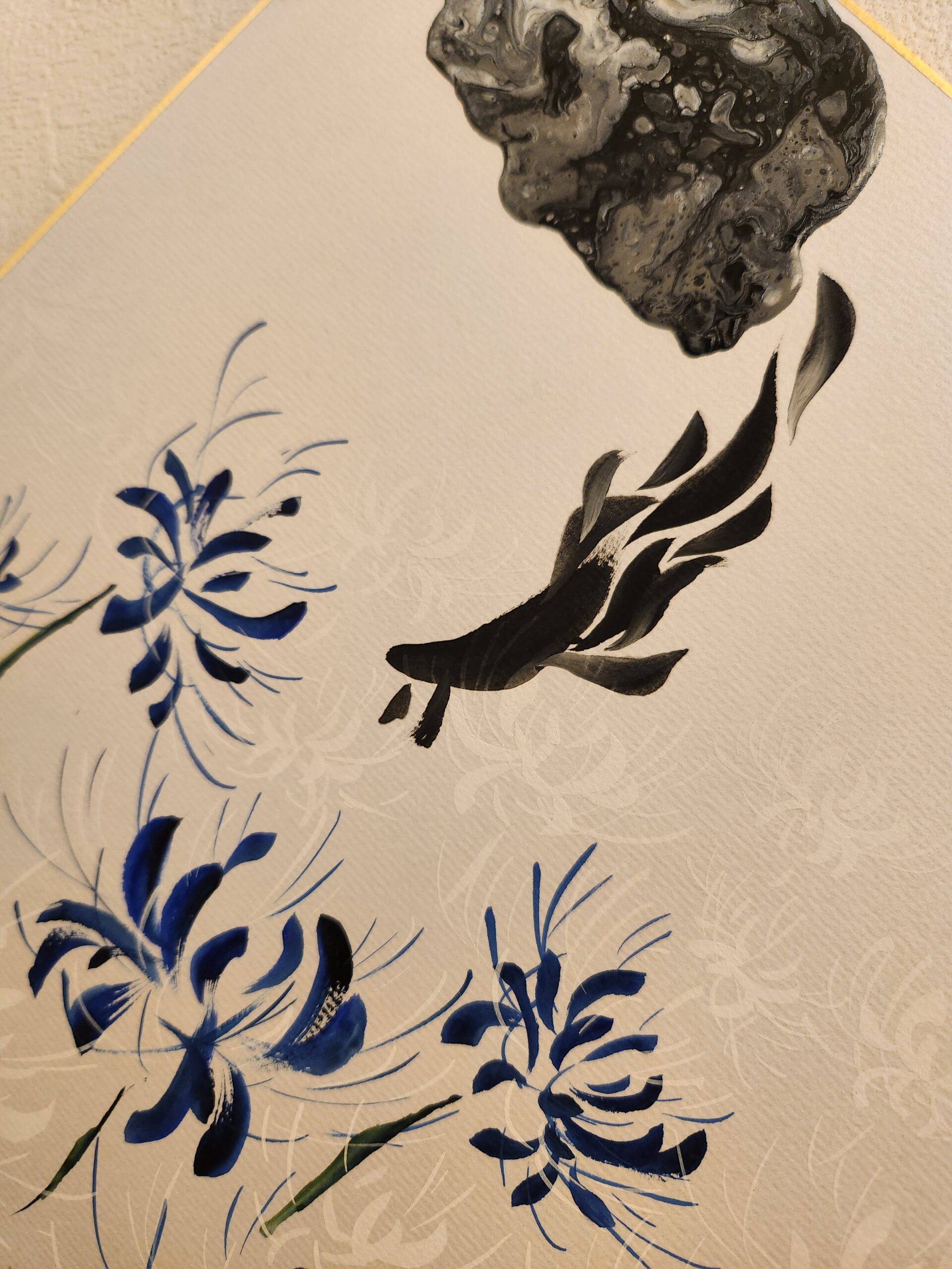 余白に光の加減でモチーフのシルエットが浮かぶようにしています。