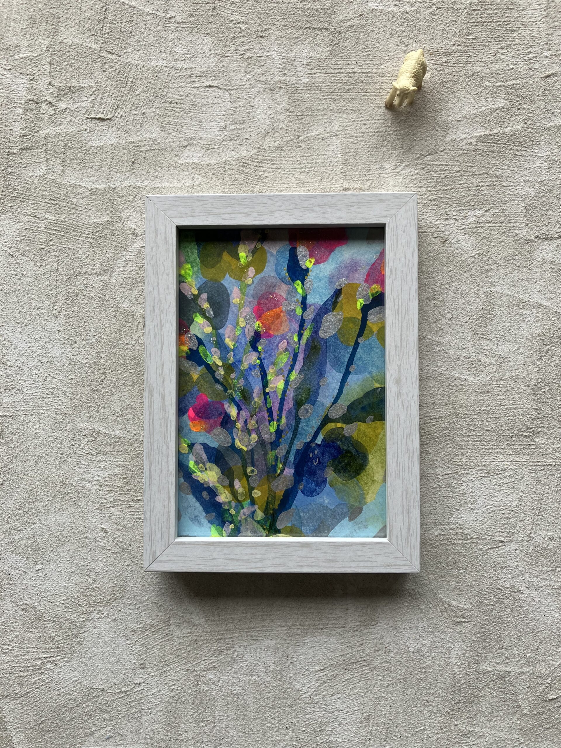 小さいころから描くのが好きでした。引っ込み思案な子どもで、今でもたいそう不器用な人、です。何とかなんとか、周りの人たちに助けられて生かされています。振り返ってみると、つらいときも、きれいだなぁ、素敵だなぁ、心動かされるものを表現したい想いだけは、ずっと、かすかに消えそうになりながらも、わたしの膝のうえにあった気がします。たとえば、なにも特別なことは出来ないけれど、わたしにできることで、描くことで、わたしの絵に出会って下さった人の笑顔があることで、巡り巡って恩返しができるのではないか、と思っています。