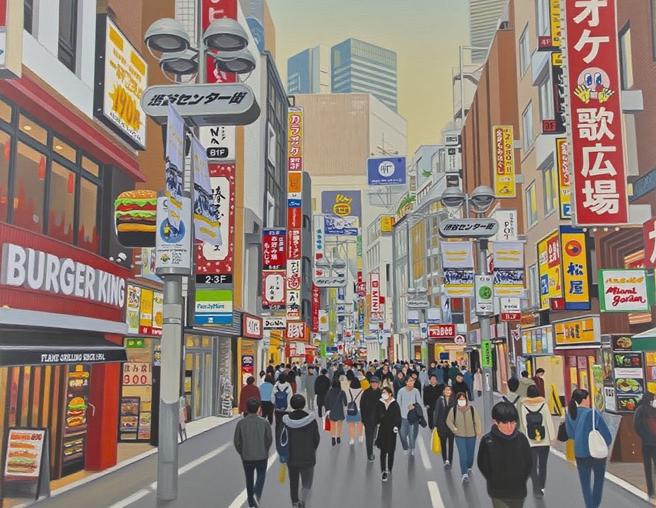 渋谷センター街の活気あふれる風景をA4サイズに忠実に再現した複製画です。街の賑やかな雰囲気や多彩な看板、歩く人々の表情まで丁寧に描かれており、まるで現場にいるかのような臨場感を感じさせます。色彩の再現性や構図のバランスにこだわり、オリジナルの魅力をそのまま小さなキャンバスに封じ込めました。ぜひこの作品を通じて、渋谷のエネルギーと多様性をお楽しみください。