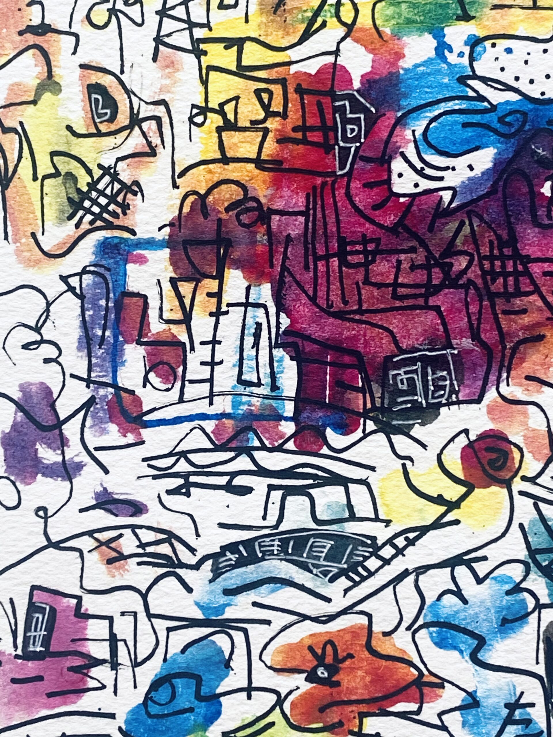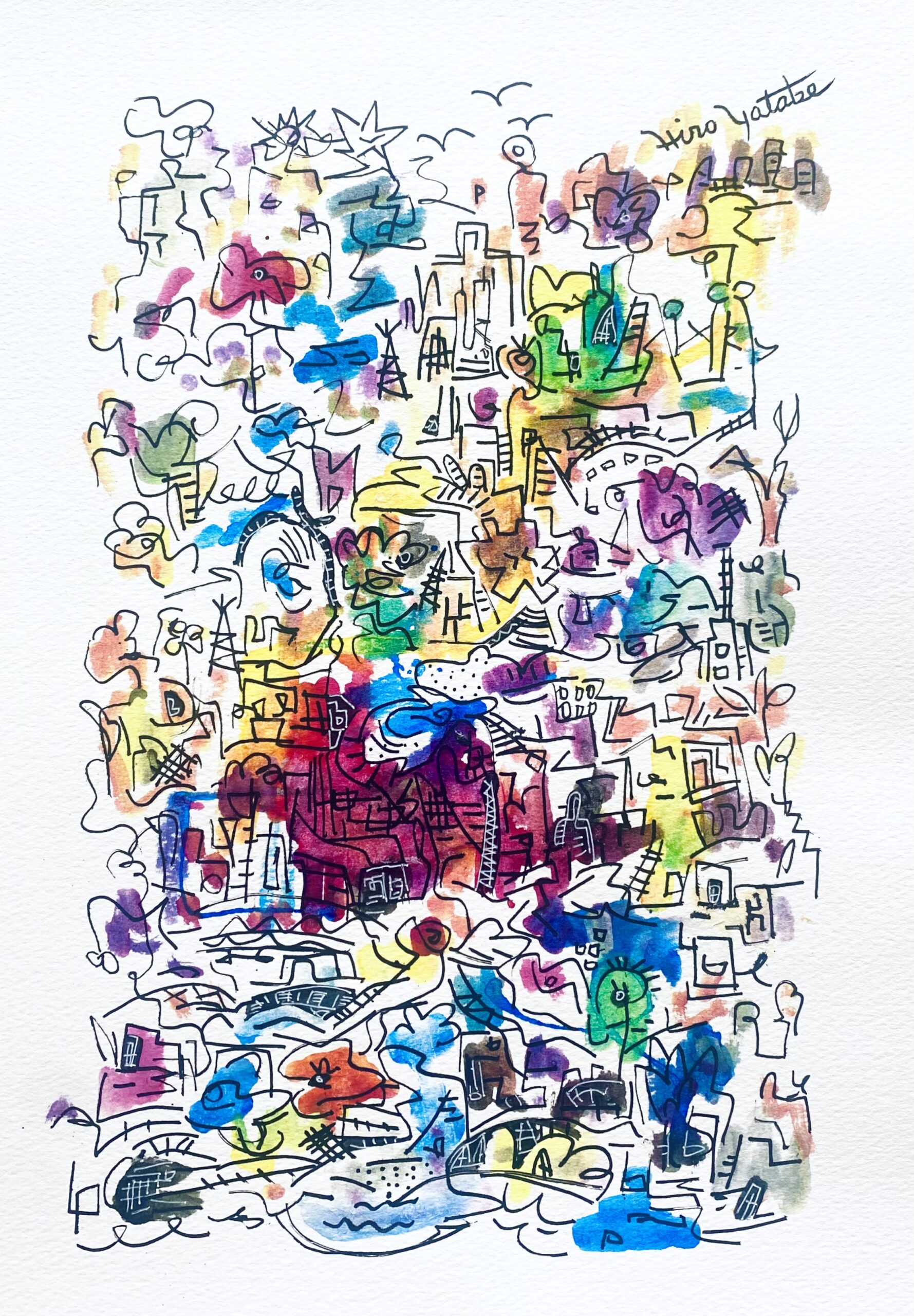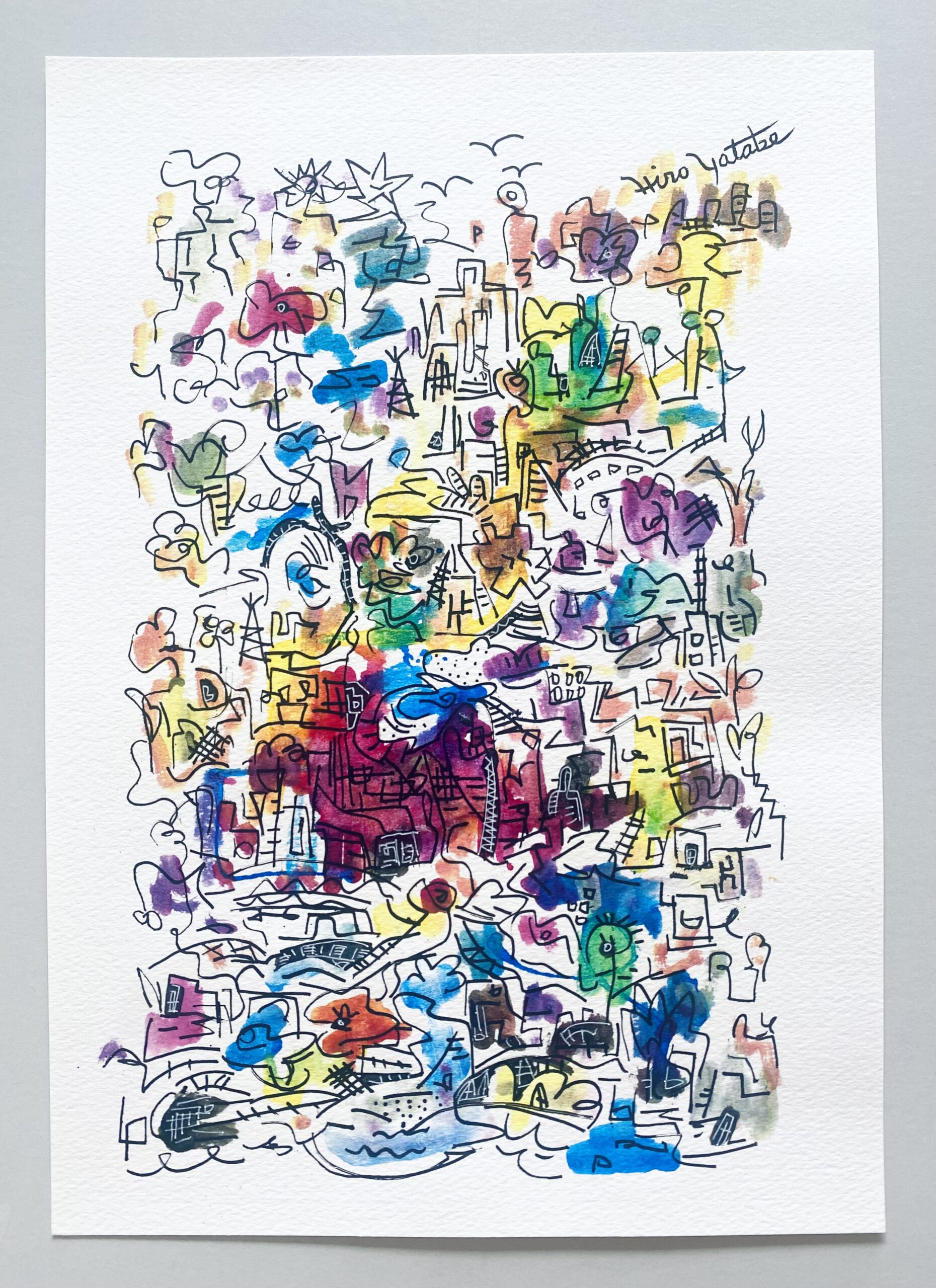 2008年 浮かんだイメージを付箋にボールペンでスケッチ。2012年になりそれをまとめたものを知人に見せたところサイズや画材をかえて絵画として発表することを勧められ、2013年、公募展にA4サイズのカードボードにペン・パステルで描いた作品を出品。その後アクリル絵具での創作をスタート。