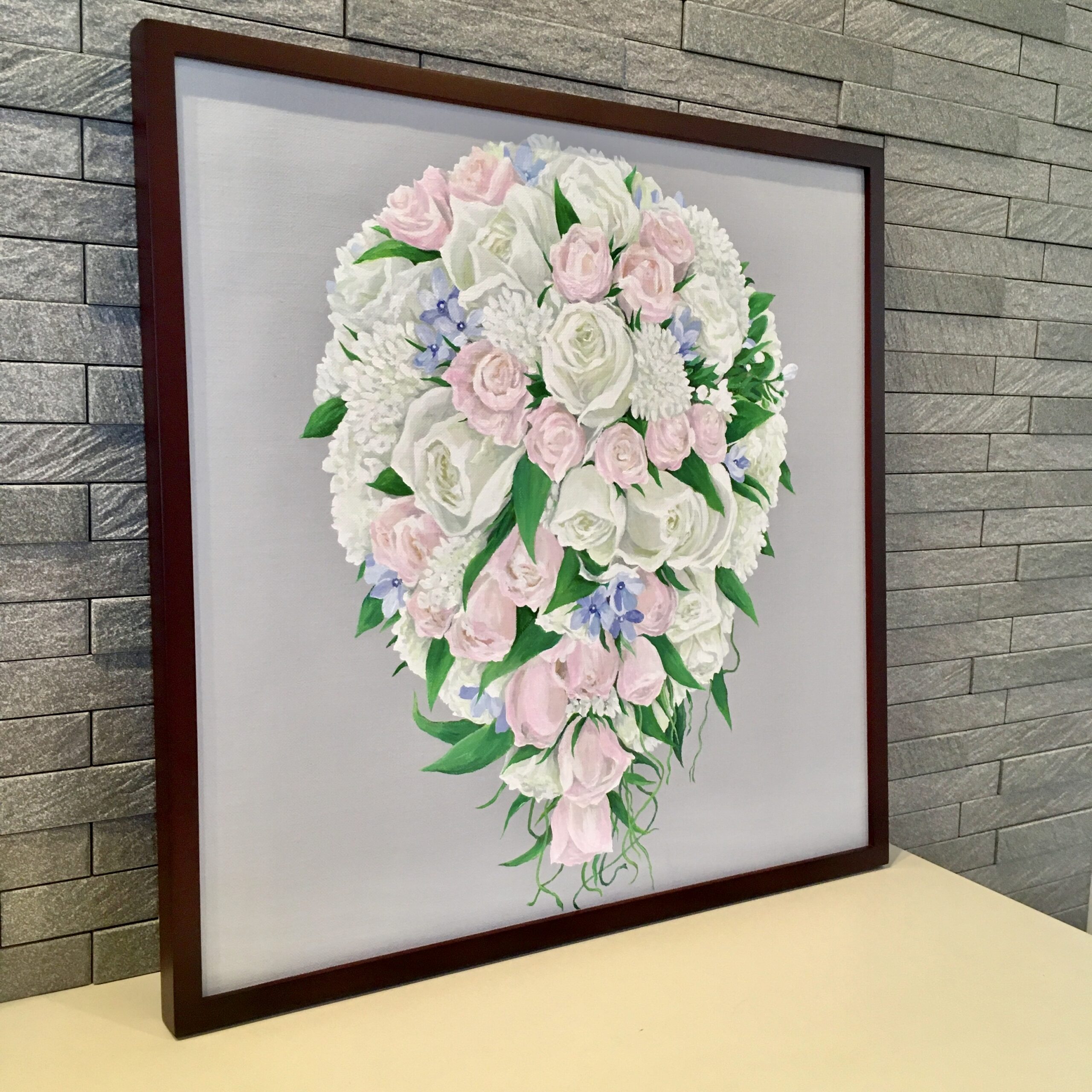 ウェディングブーケのオーダー作品です。結婚式の思い出のお花,アートとして残すのは素敵ですね。