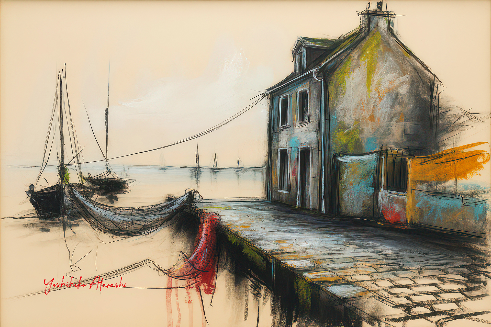 本作「エーゲ海の港町」シリーズは、旅情と色彩の詩です。軽やかな筆致と繊細な色の重なりが、懐かしくも新鮮な港町の風景を呼び起こしま す。印象派と抽象表現の融合による独自の世界観は、空間に豊かな物語性をもたらします。リビングやオフィスに飾ることで、まるで海風が吹 き抜けるような開放感と癒しを感じていただける逸品です。ぜひ一枚から、あなたの記憶に寄り添う風景をお迎えください。