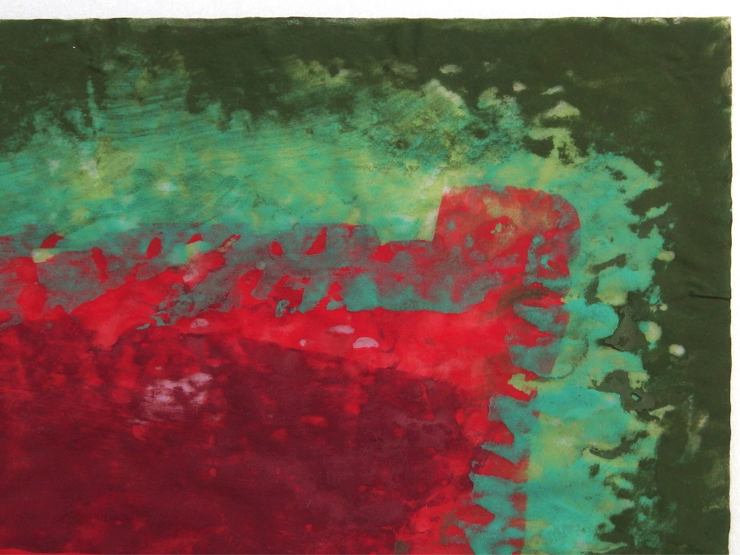 スチレンペーパーという光沢のある真っ白な素材に、岩絵の具自体の美しさが際立ちます。この組み合わせを発見し、気に入って使い続けています。