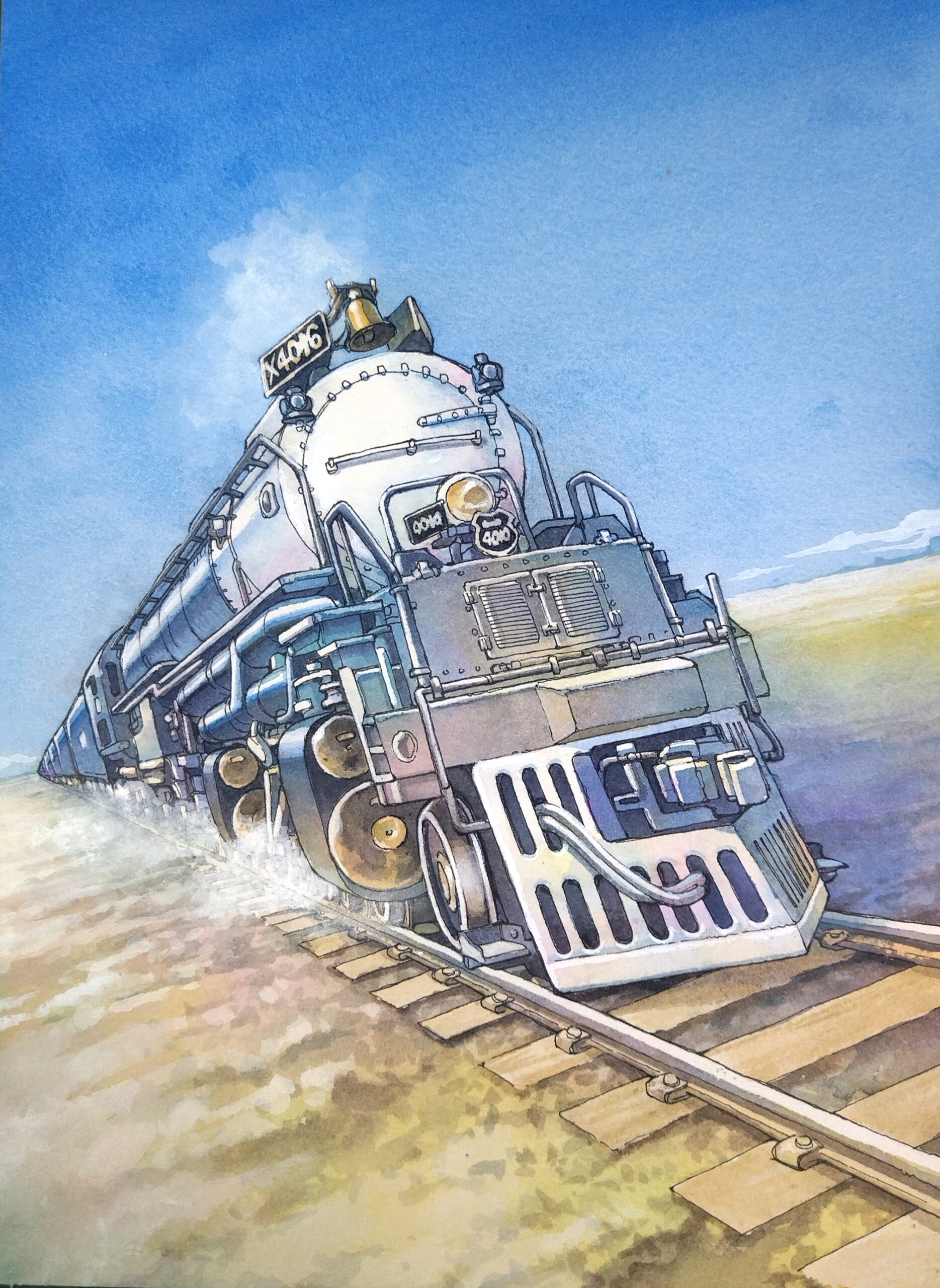 アメリカの大平原を爆走する巨大なSLがとても魅力的で描きたいと思っていました。
