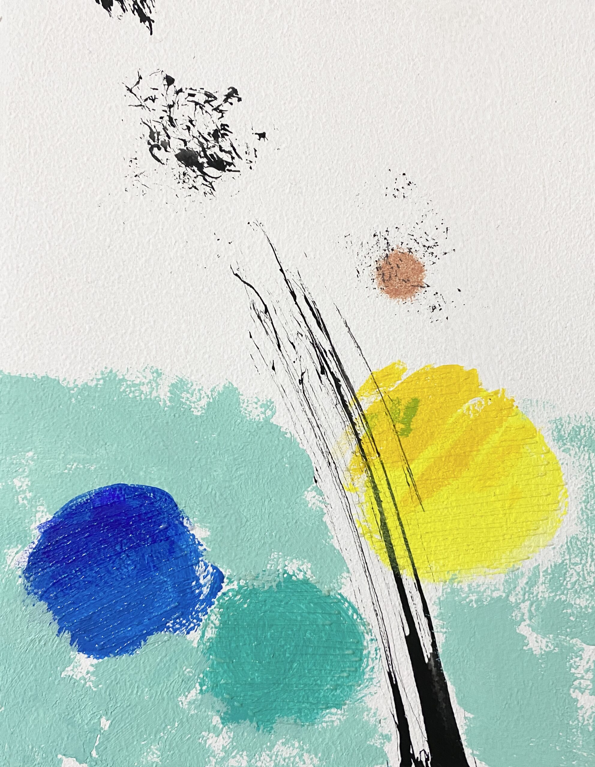学生時代、染色技法、アクリル画で、主に幾何・抽象表現の作品を制作。
