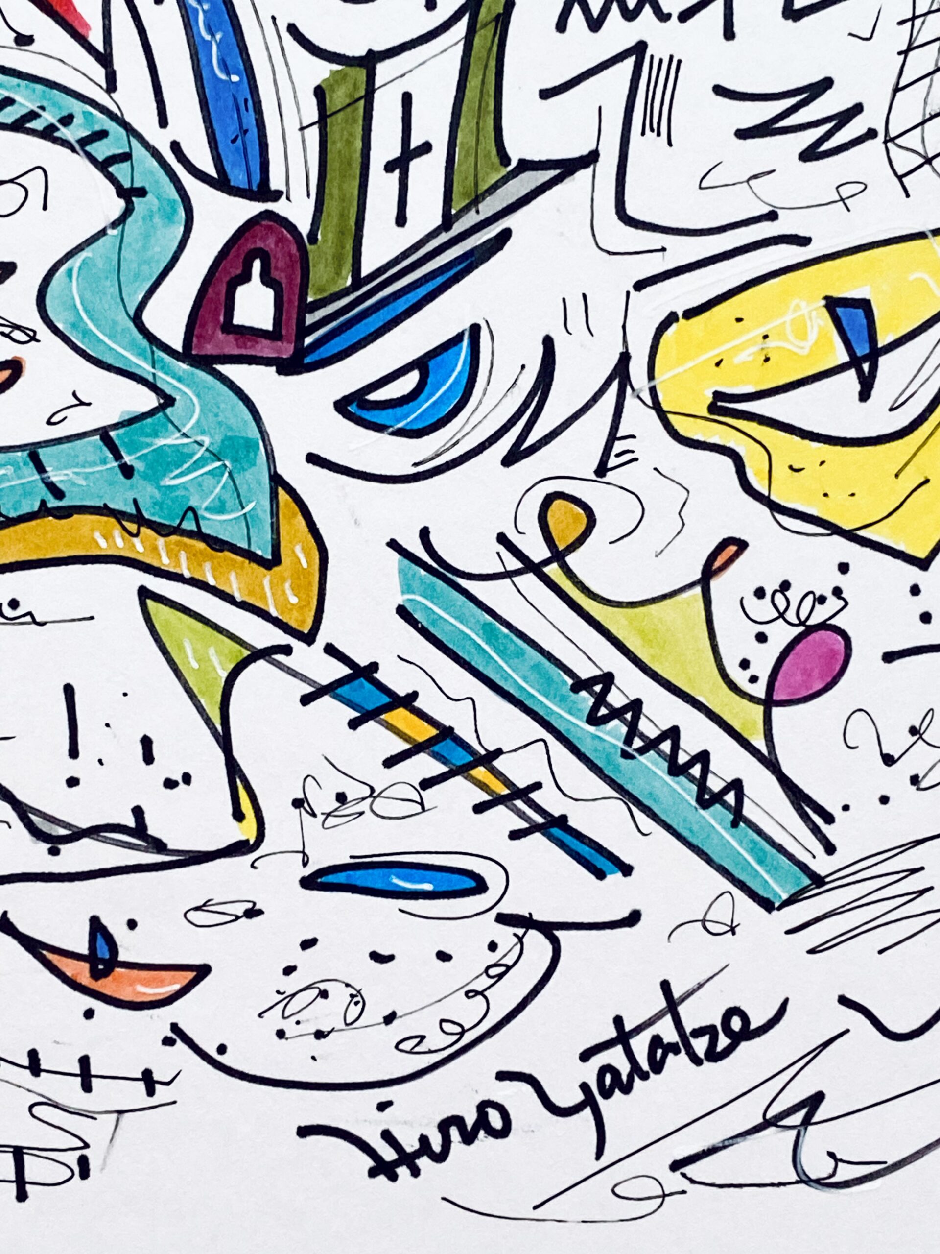 シリーズ作品を除き、タイトルは創作のはじめにあったものではなく、描き終えた時点で観る側となった私が名付けた「仮のタイトル」です。参考にするのも、答え合わせのように楽しむのも、あるいはまったく無視するのも自由です。抽象表現の色や形に意味を見出す手がかりは、あなたの記憶や経験のなかにしかありません。最終的な作品は観るかたの中で完成すべきものだと考えています。思い思いに想像の翼を羽ばたかせ、作品に新しい解釈を加えていただくことを望みます。