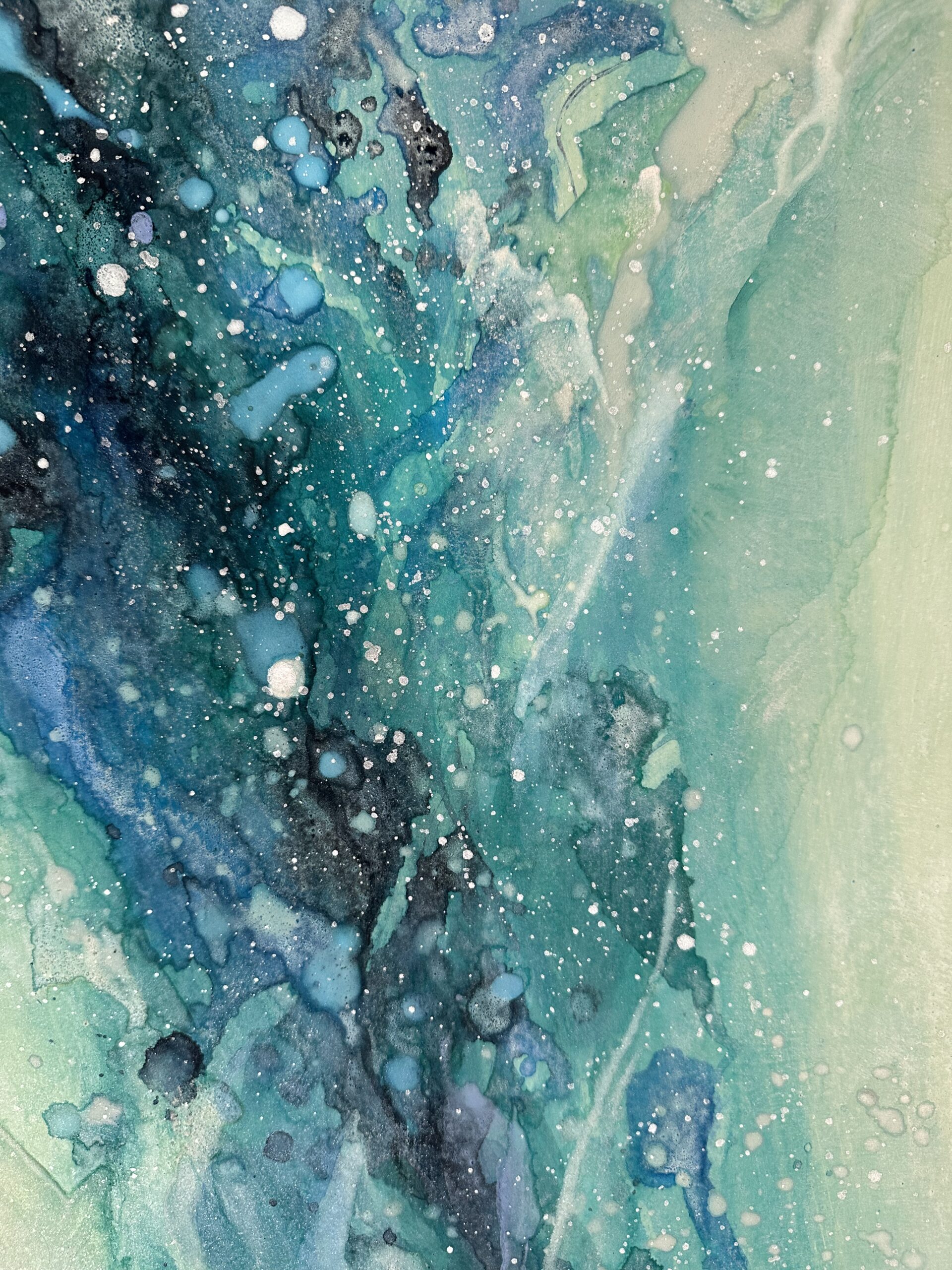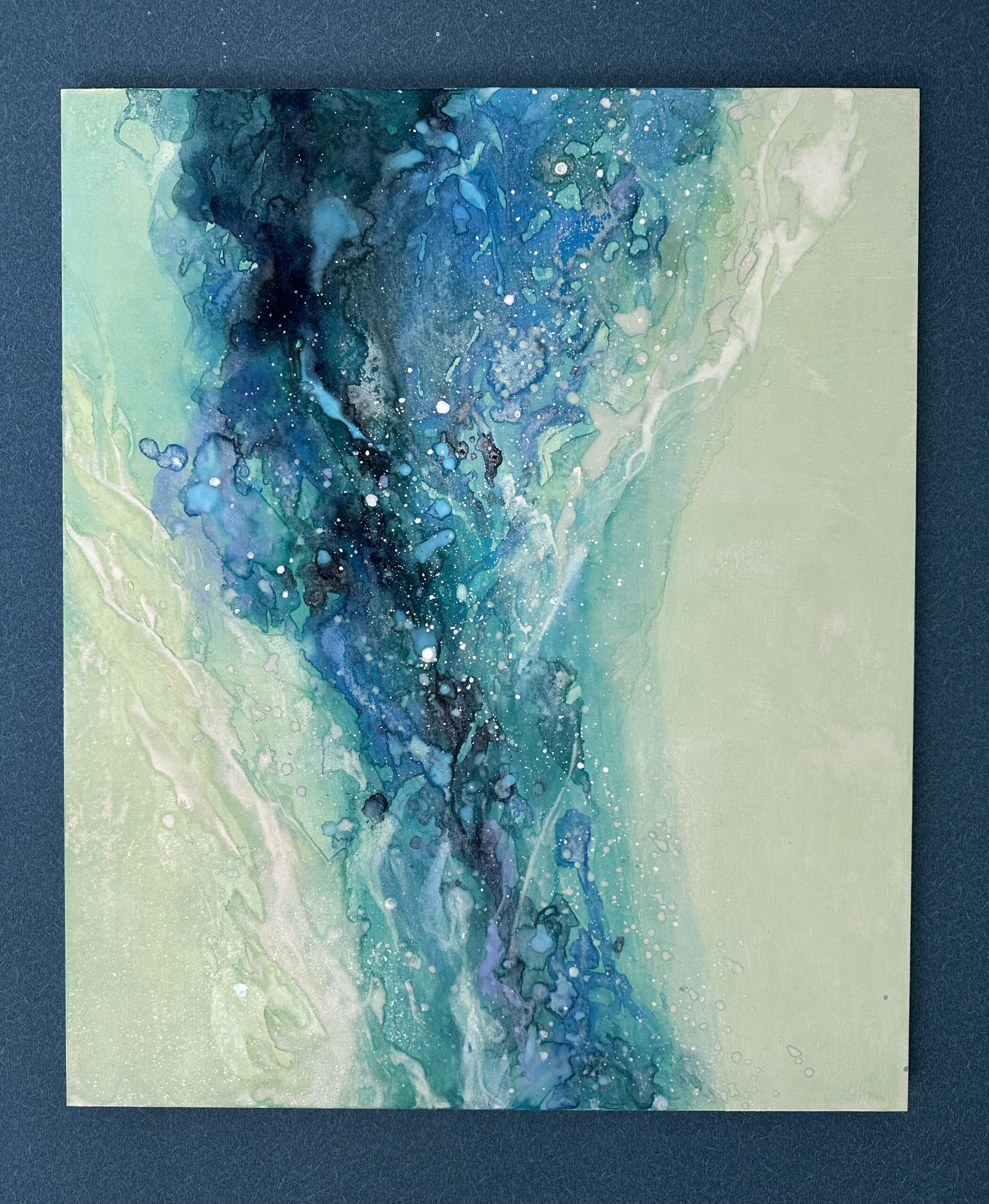 流れが上昇していくようなリズムが重なり合い、時の流れや社会の動きに呼応するように形を変えながら、前へと進むエネルギーを表現しています。自らの進むべき方向を見極め、その流れに乗ることで広がっていく未来の可能性を、静かでありながら力強く映し出しています。