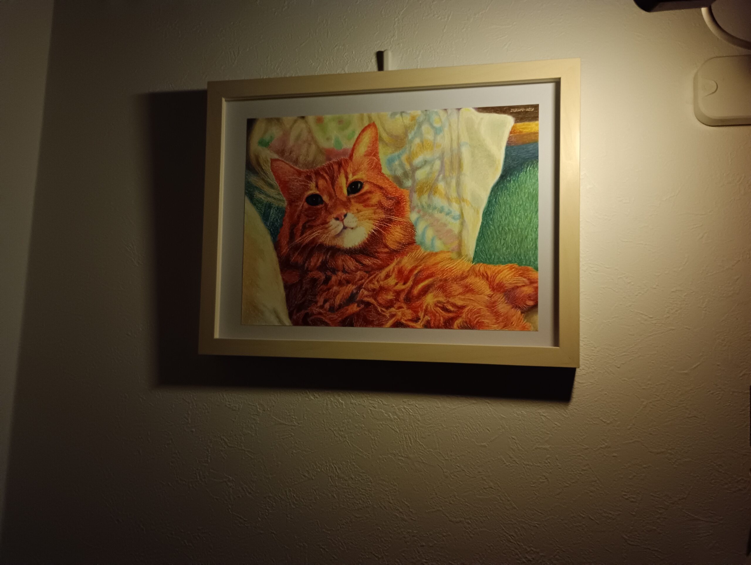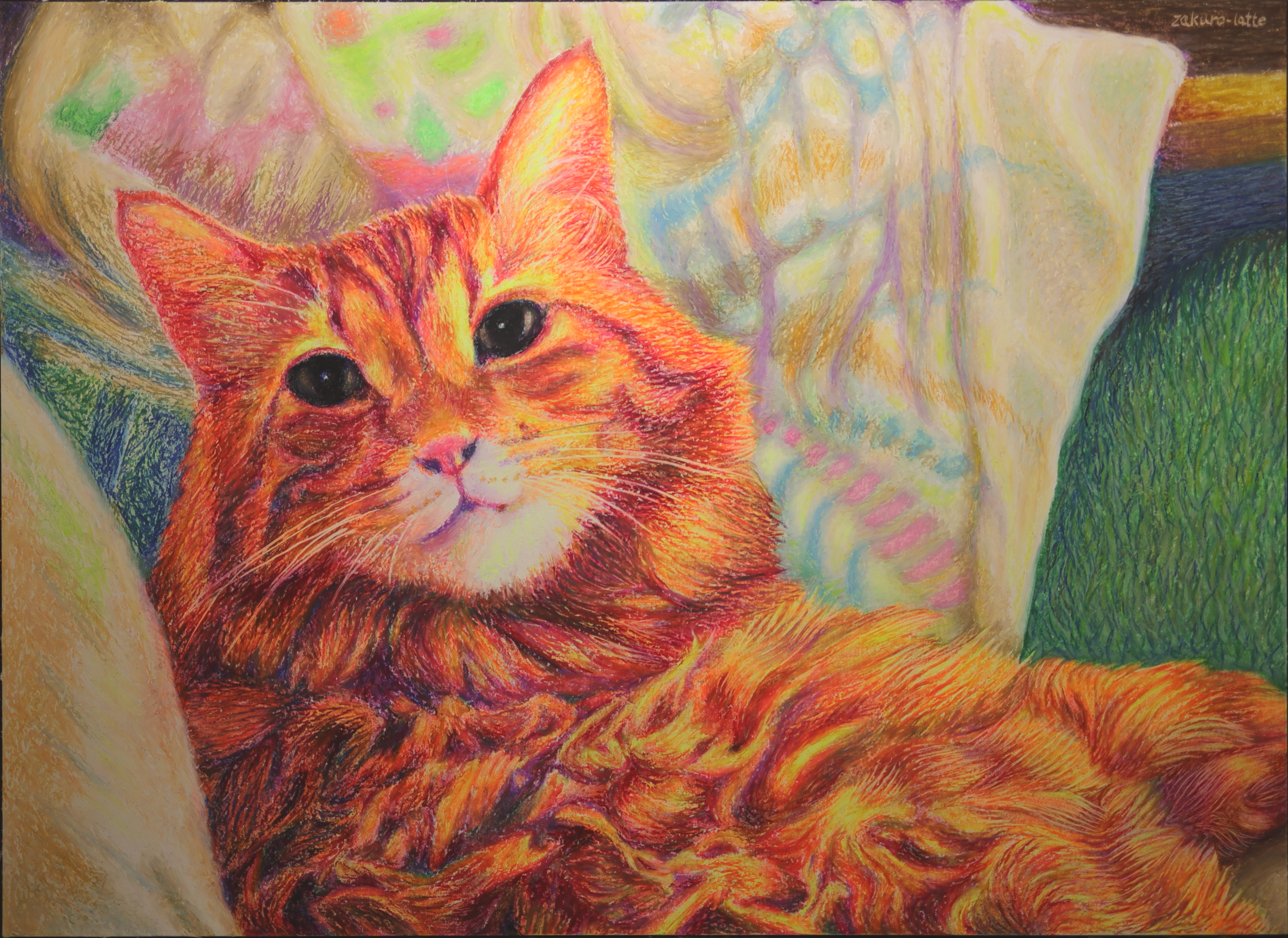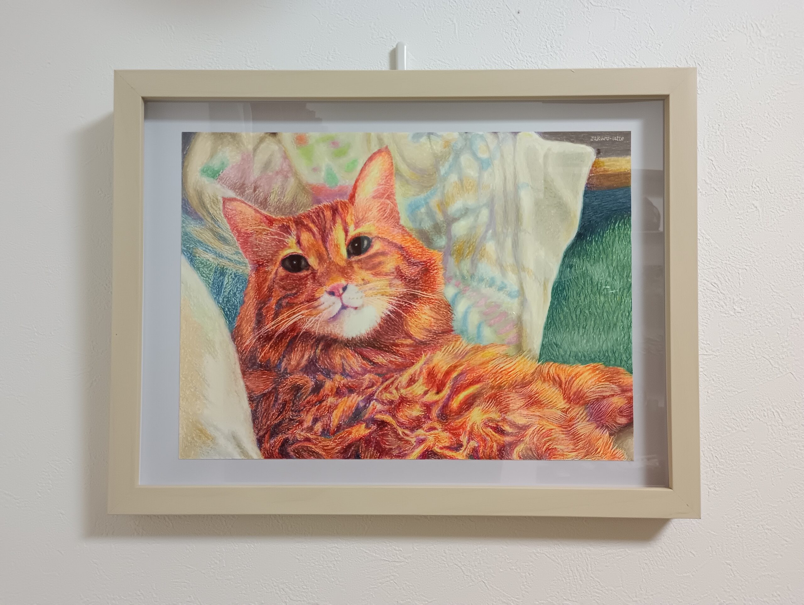 先日亡くなった飼い猫の在りし日の姿を描きました。天国から見守ってくれています。