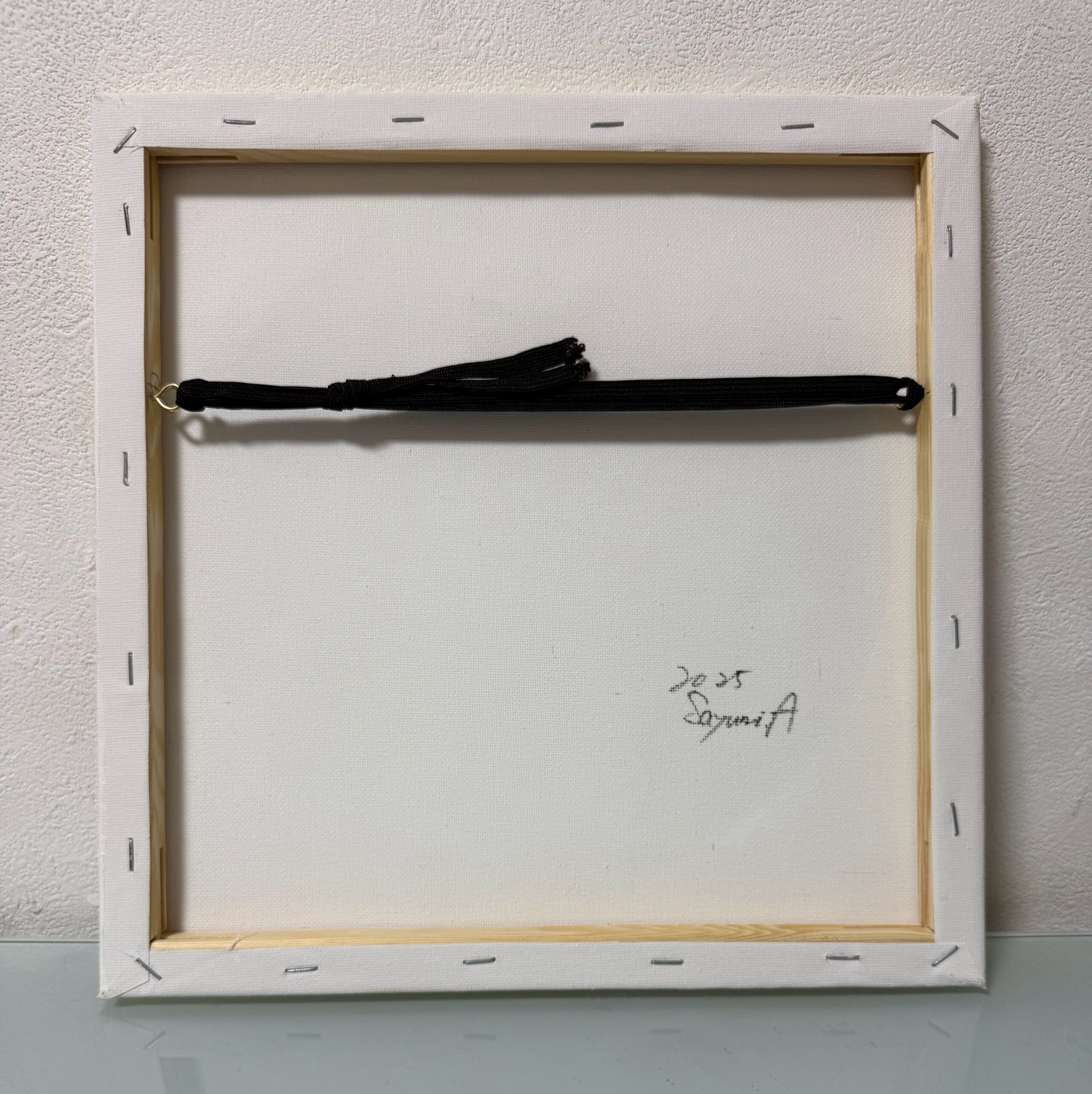 *キャンバス裏に額縁金具と紐が固定してありますので引掛釘などがあればそのまま掛けて飾っていただけます。