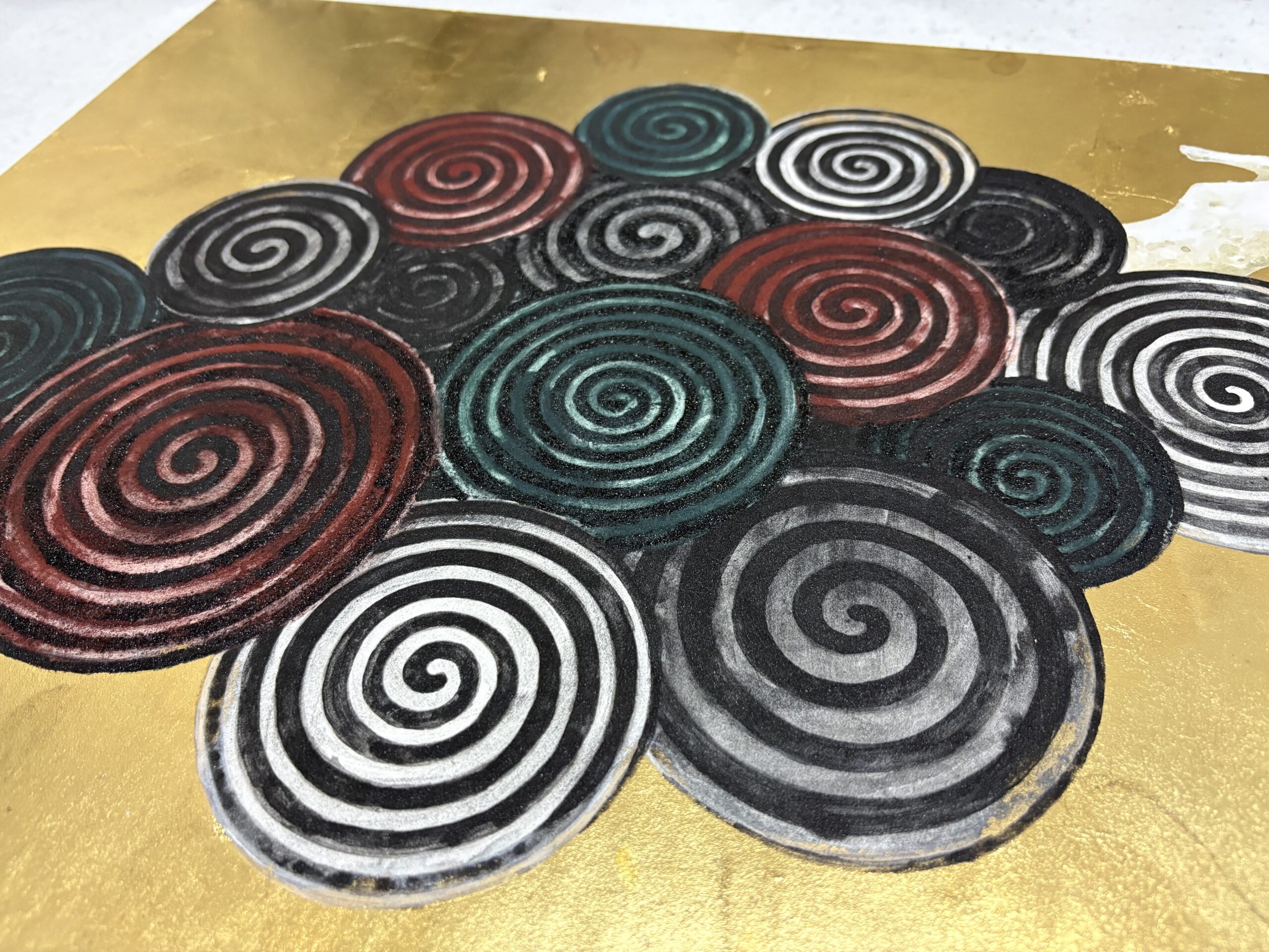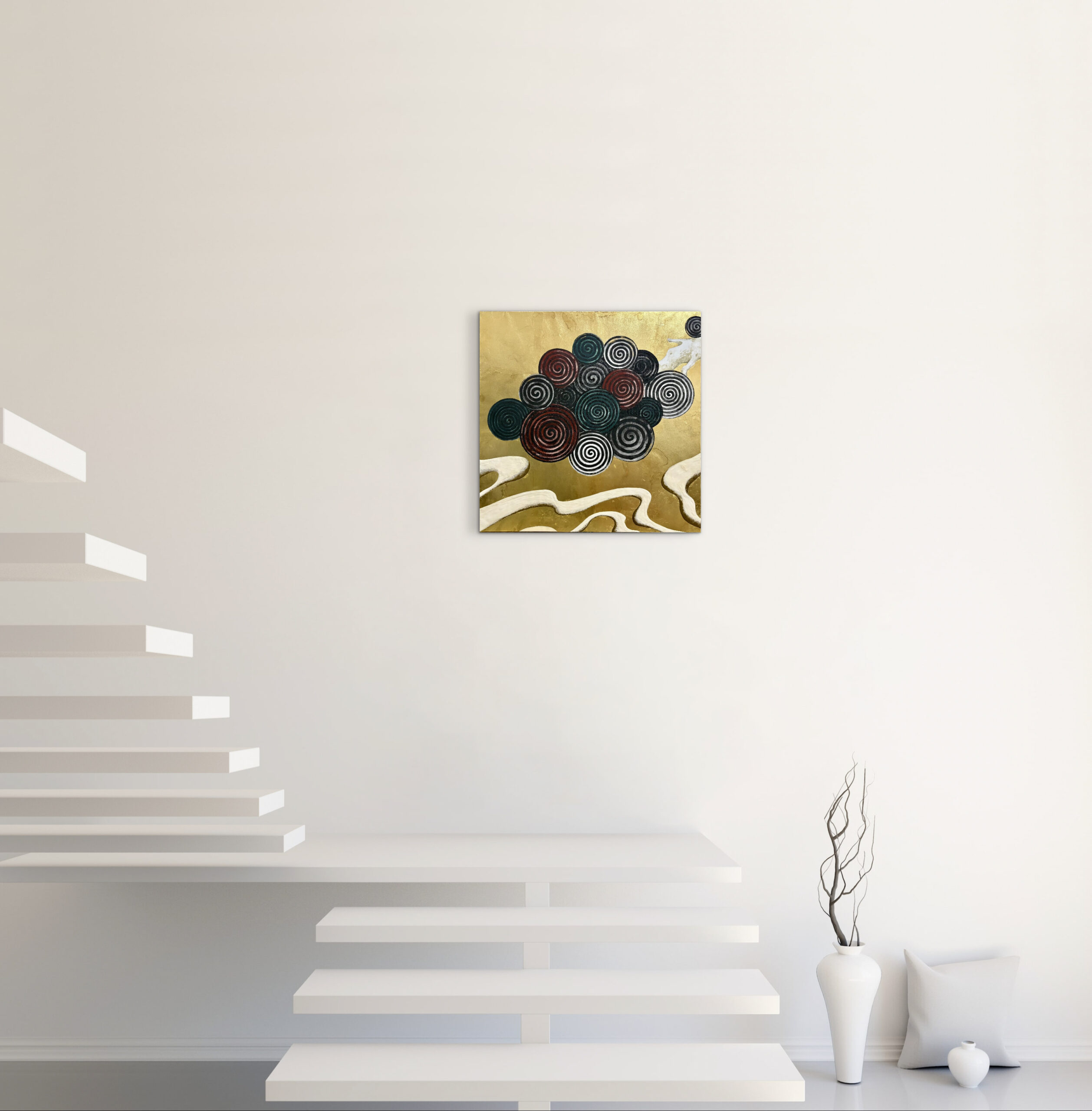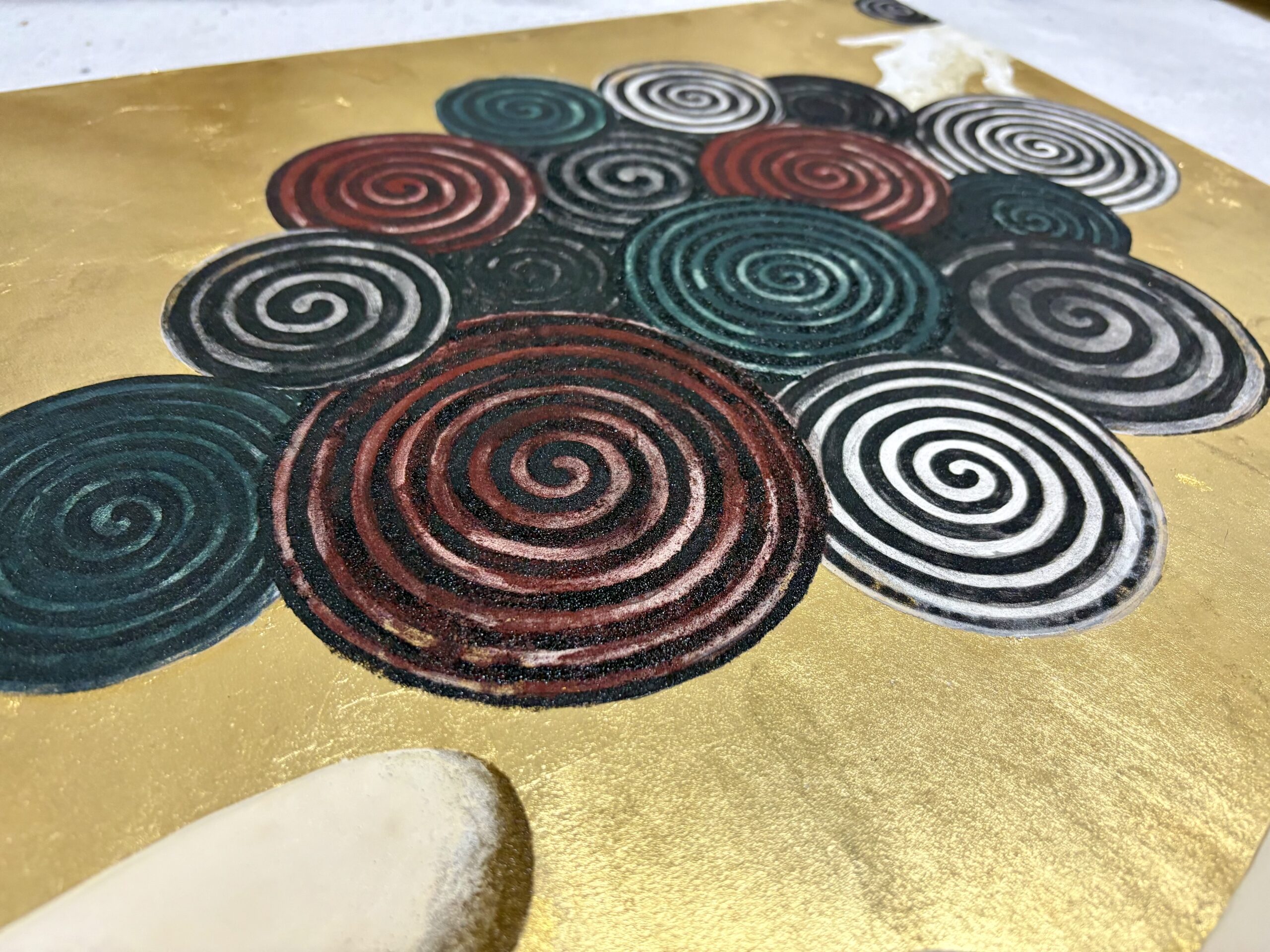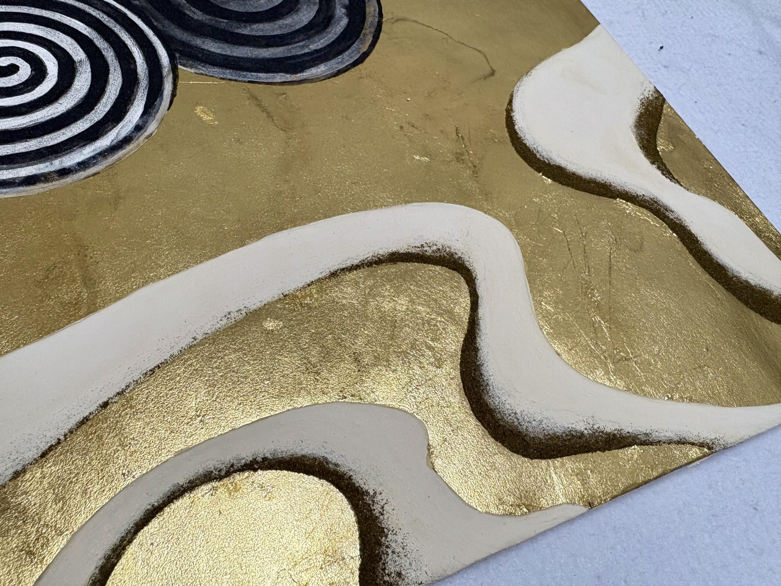 木の年輪をイメージし、永く渦巻くように続きますようにと願いを込めた山水画です。