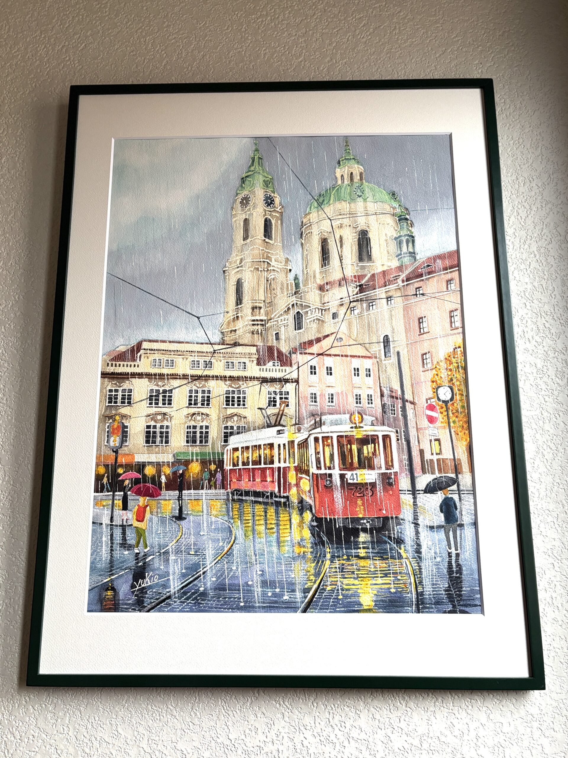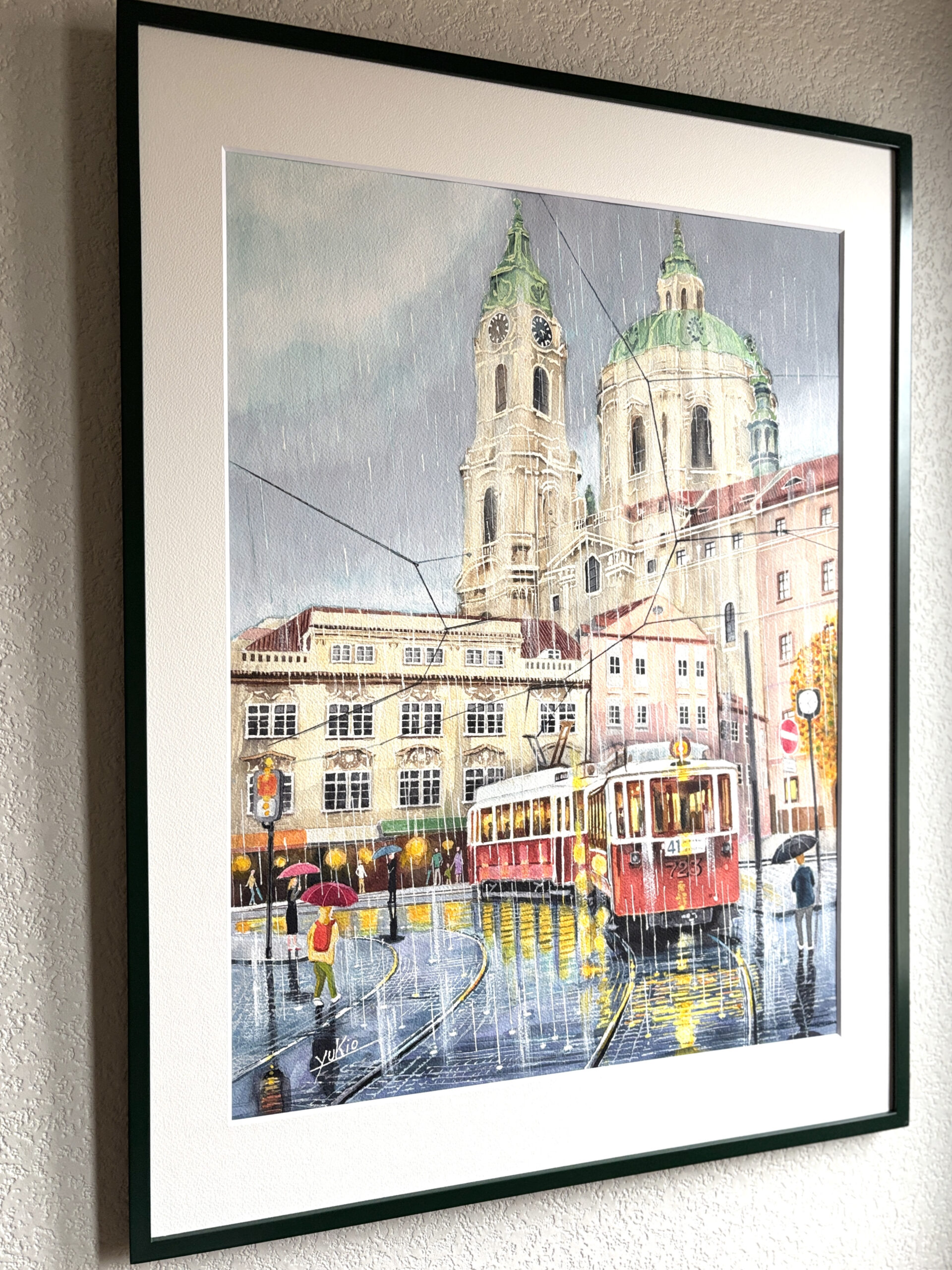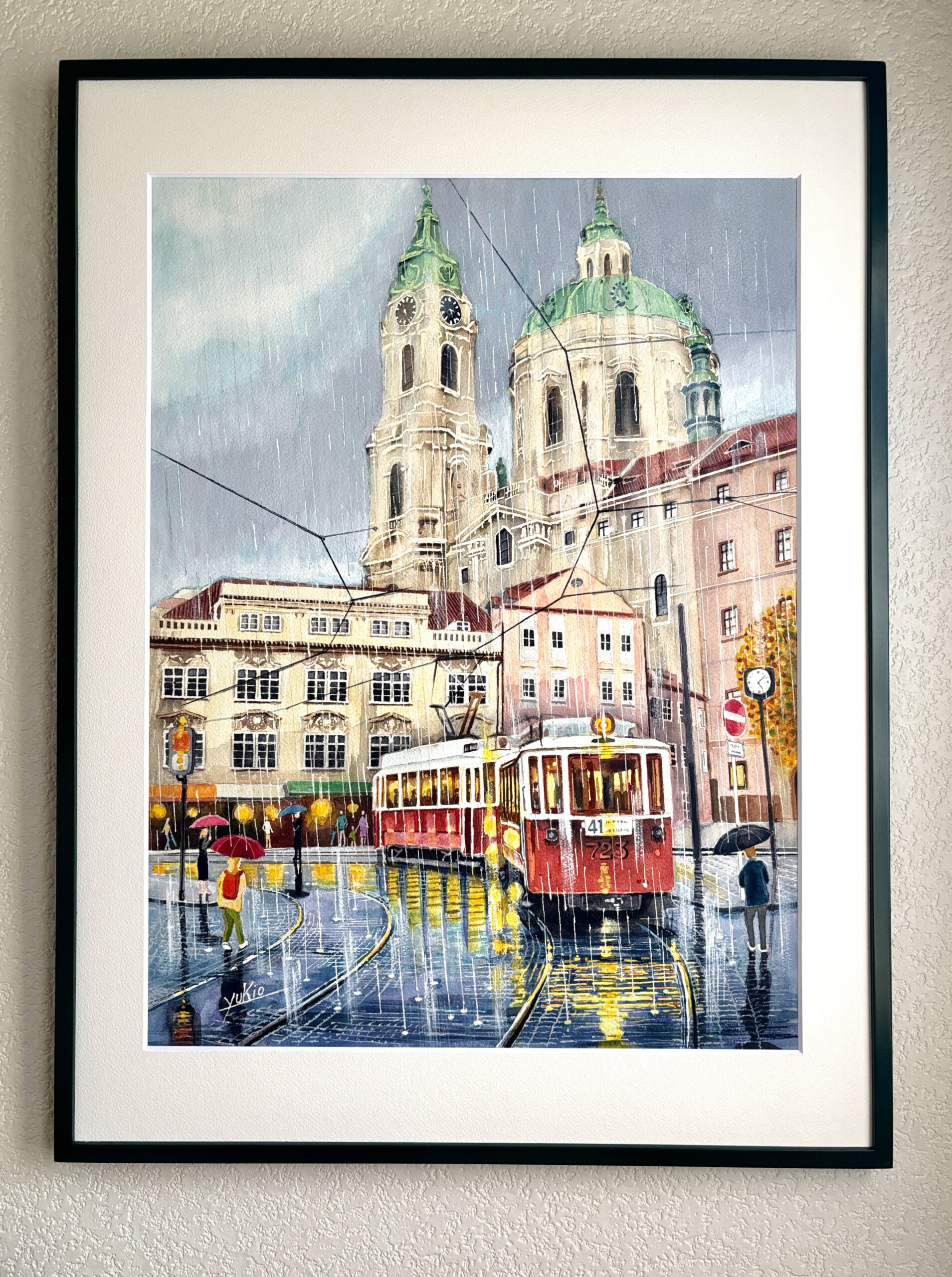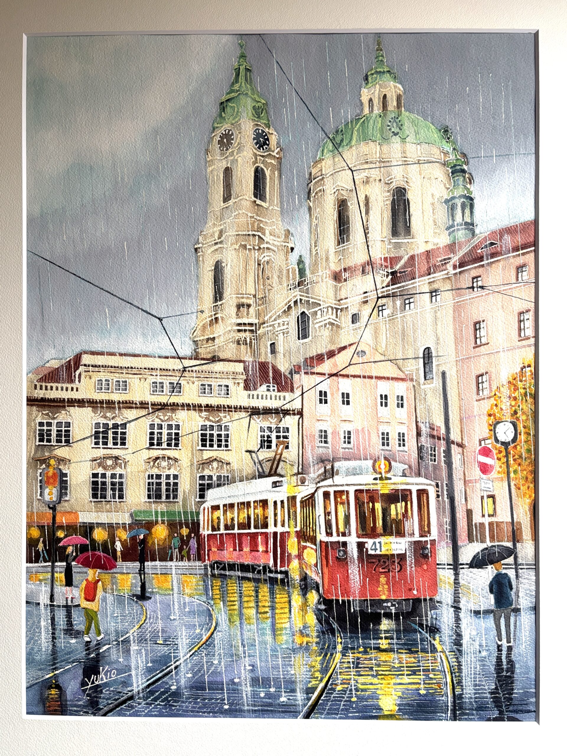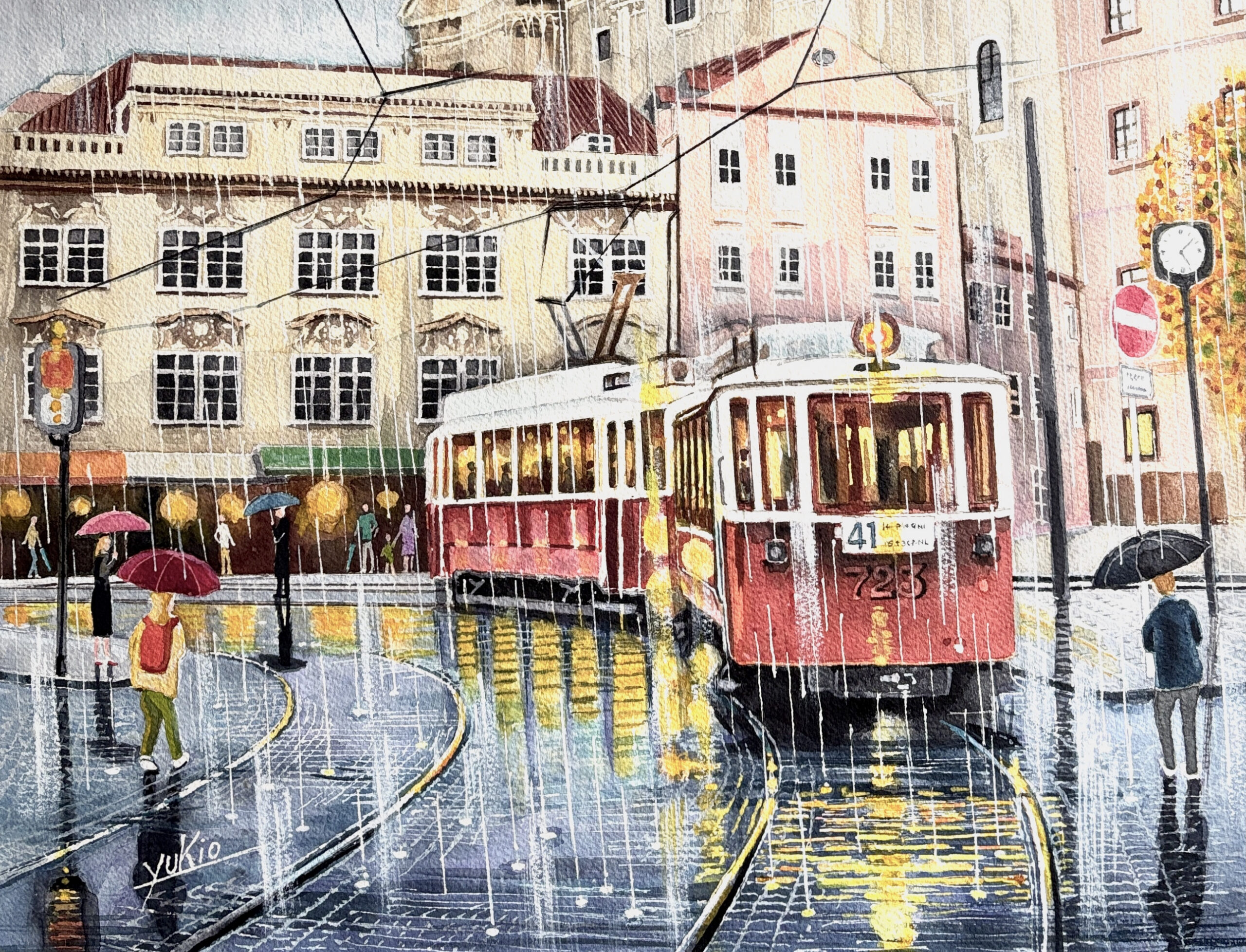 雨、教会、トラム(市電)との3つの要素が重なりより風景をドラマチックに演出してくれました。
