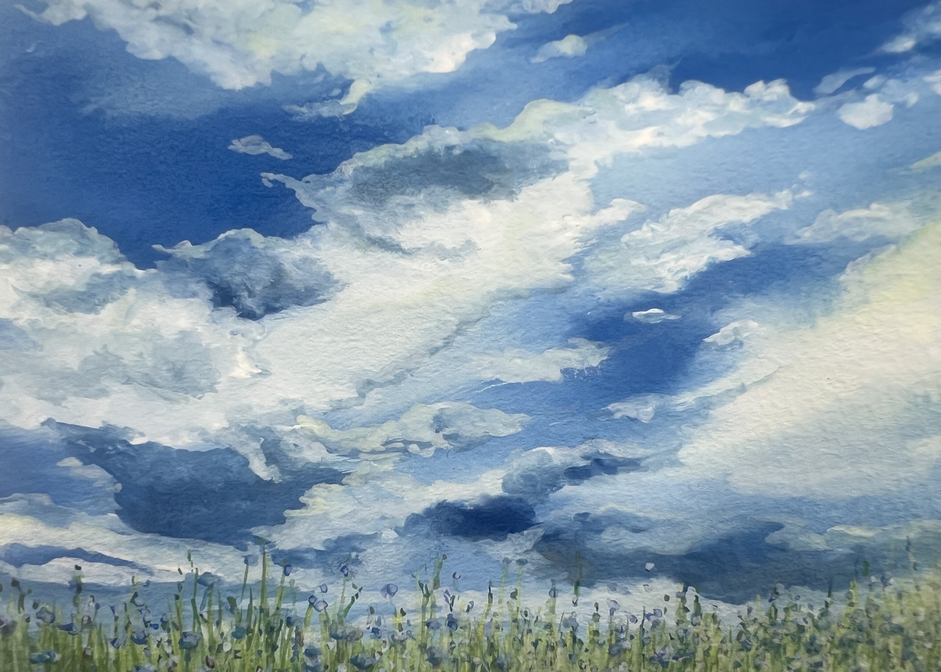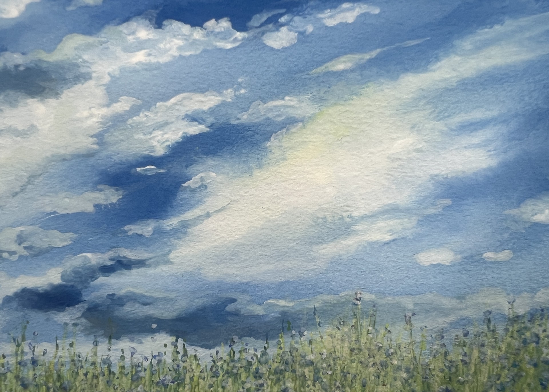 雲の隙間から覗き込む光に照らされた草花の世界が、観る者に深い感動をもたらし、心地よい余韻を残す情景を描き出しています。穏やかな色の重なりは、日常のストレスを解きほぐし、心を豊かにするひとときを提供します。この作品には、独特な光と影のコントラストが詰まっています。