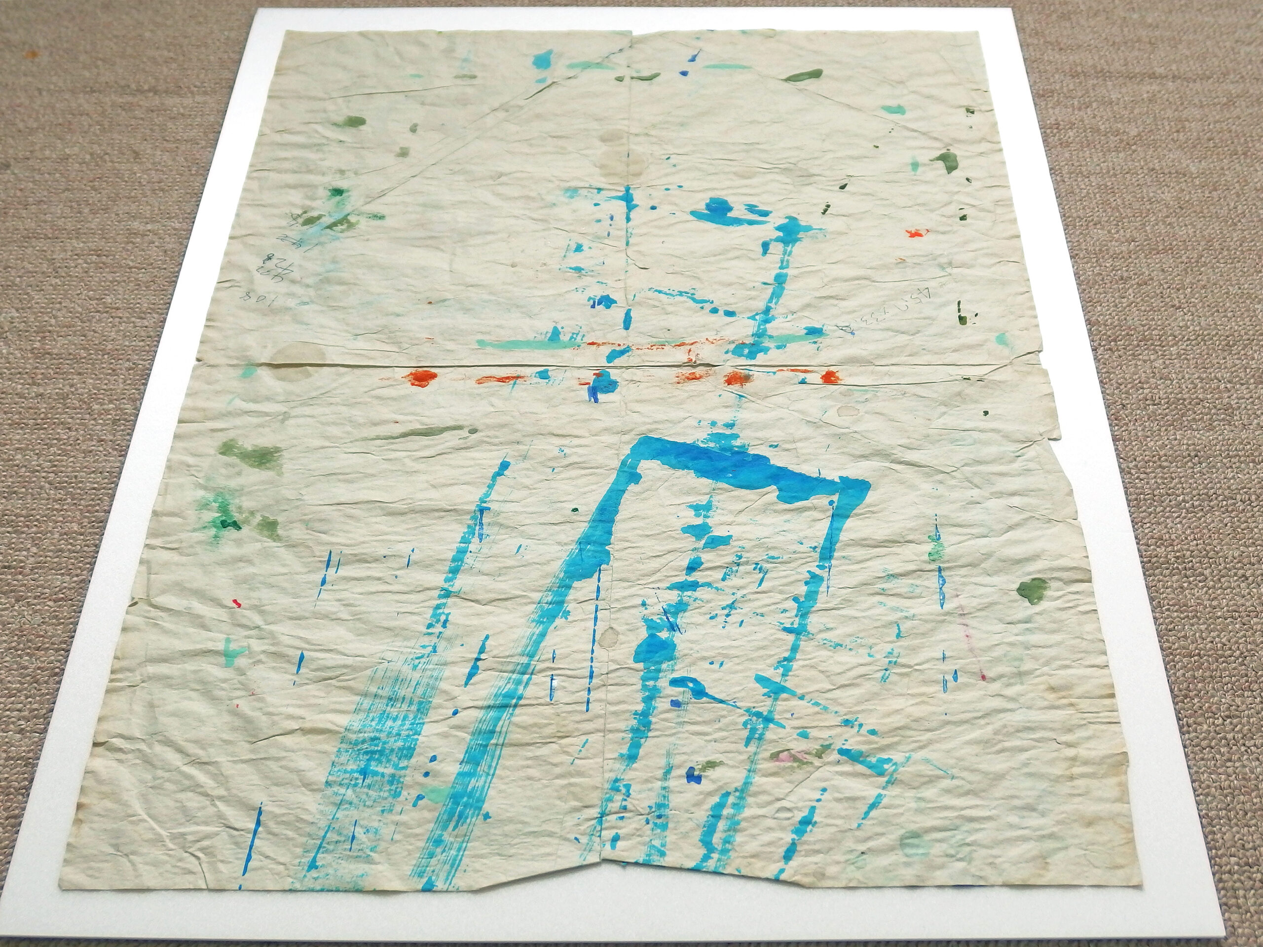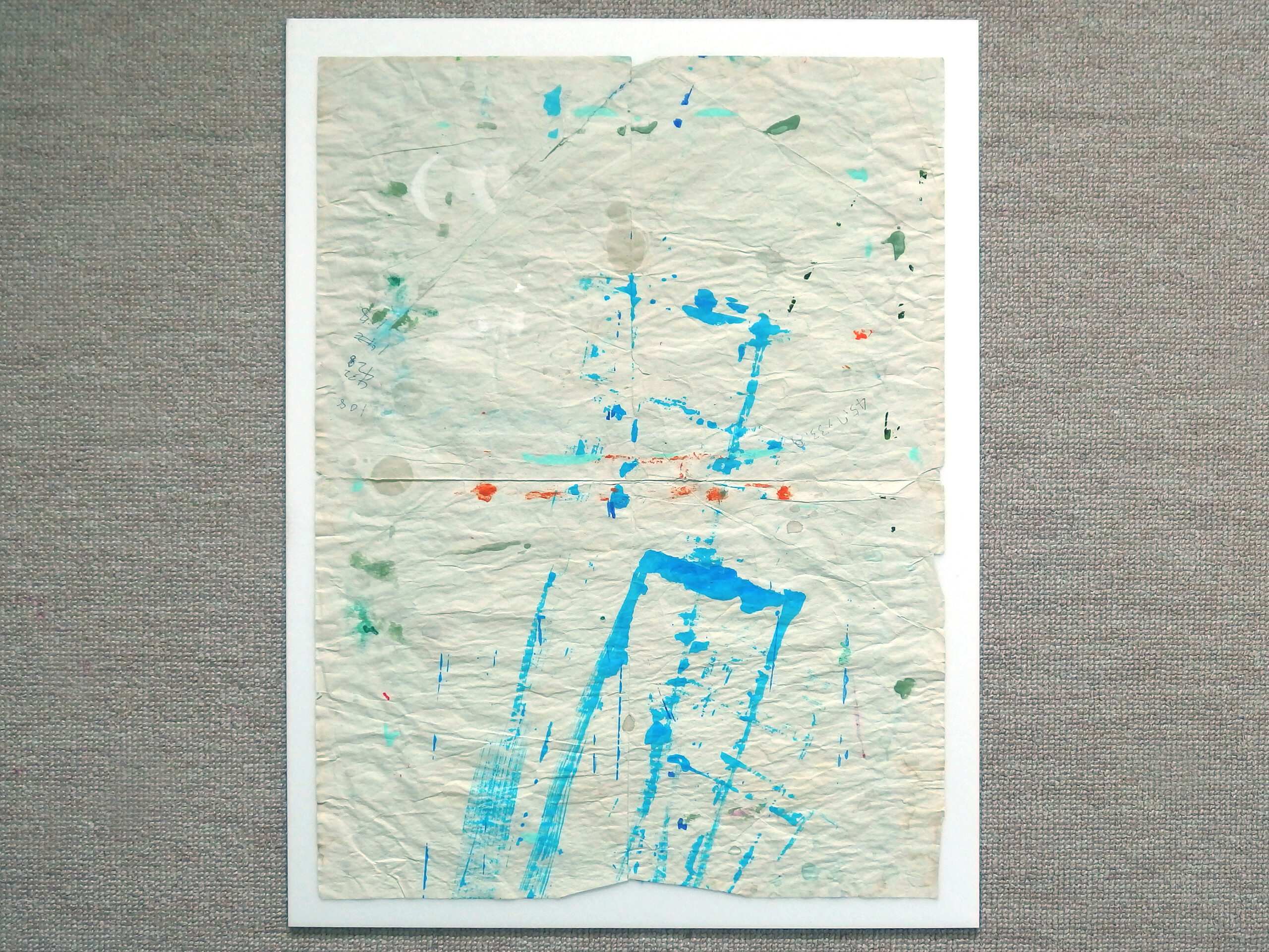 天然素材の和紙に膠を使うのが「日本画」の常識ですが、あえて人工素材を使っています。