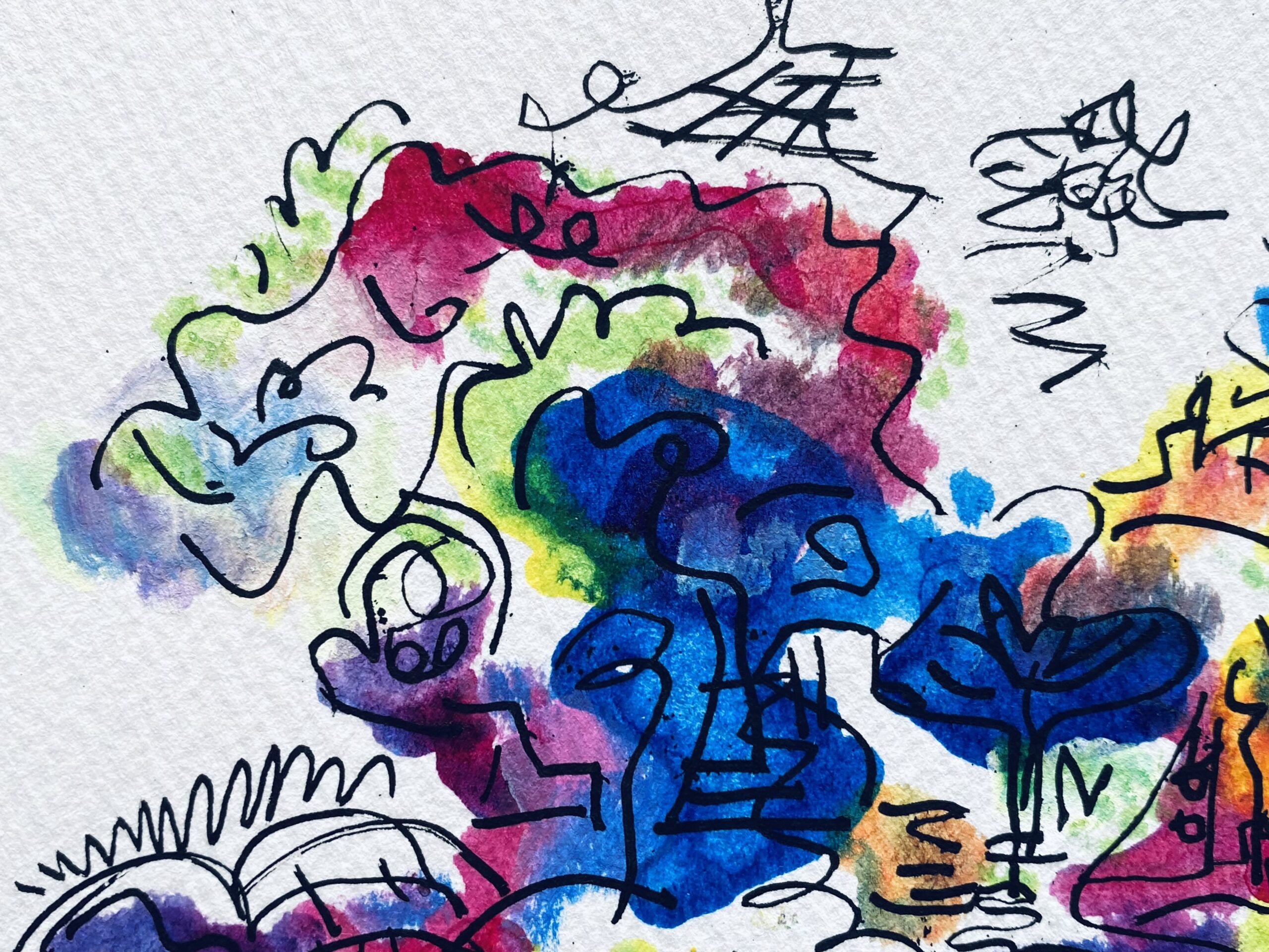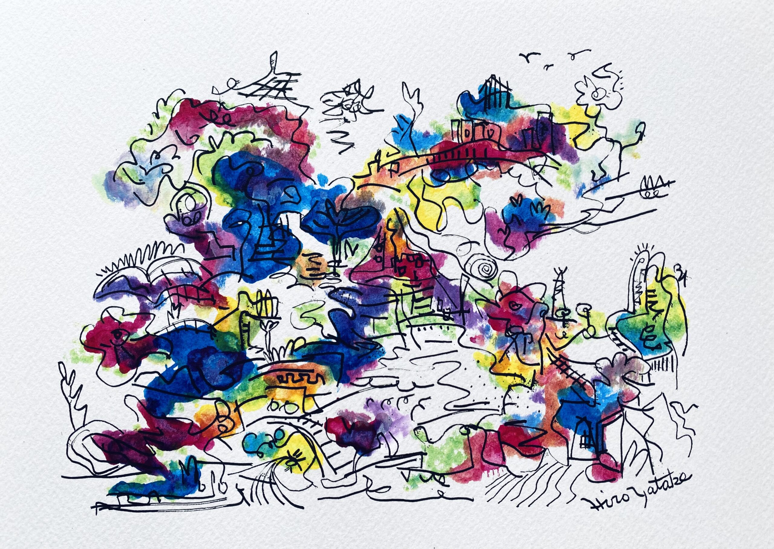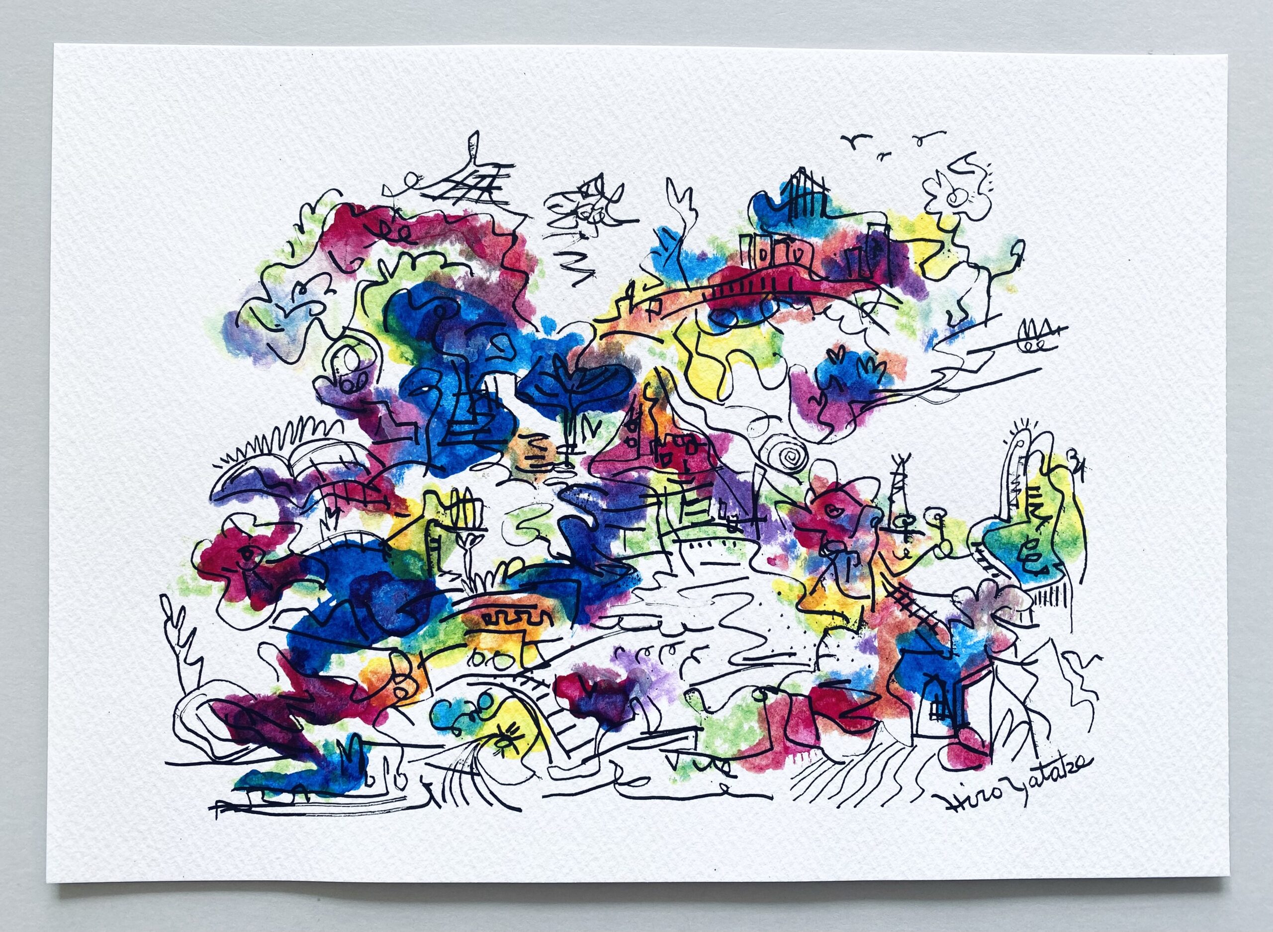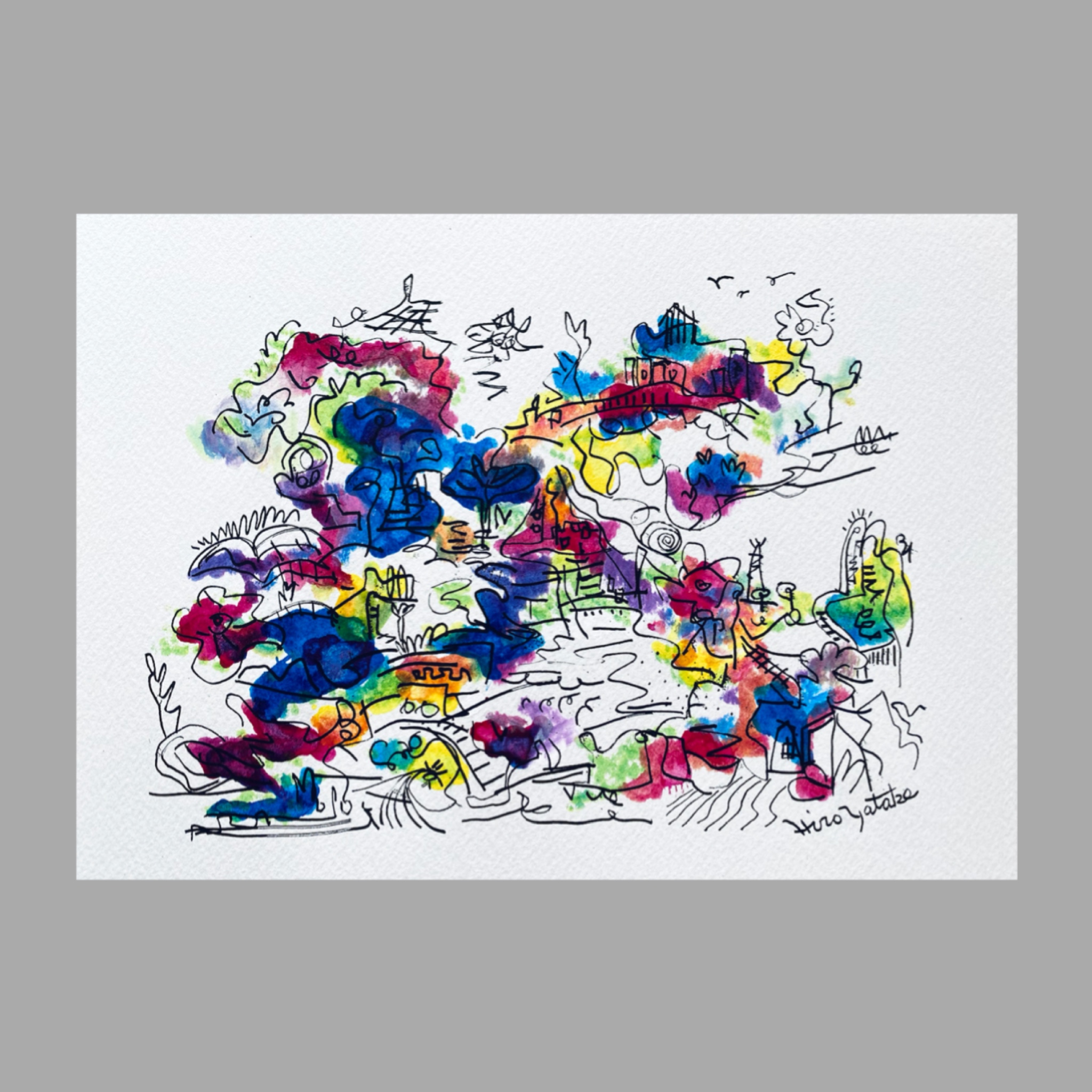 シリーズ作品を除き、タイトルは創作のはじめにあったものではなく、描き終えた時点で観る側となった私が名付けた「仮のタイトル」です。参考にするのも、答え合わせのように楽しむのも、あるいはまったく無視するのも自由です。抽象表現の色や形に意味を見出す手がかりは、あなたの記憶や経験のなかにしかありません。最終的な作品は観るかたの中で完成すべきものだと考えています。思い思いに想像の翼を羽ばたかせ、作品に新しい解釈を加えていただくことを望みます。