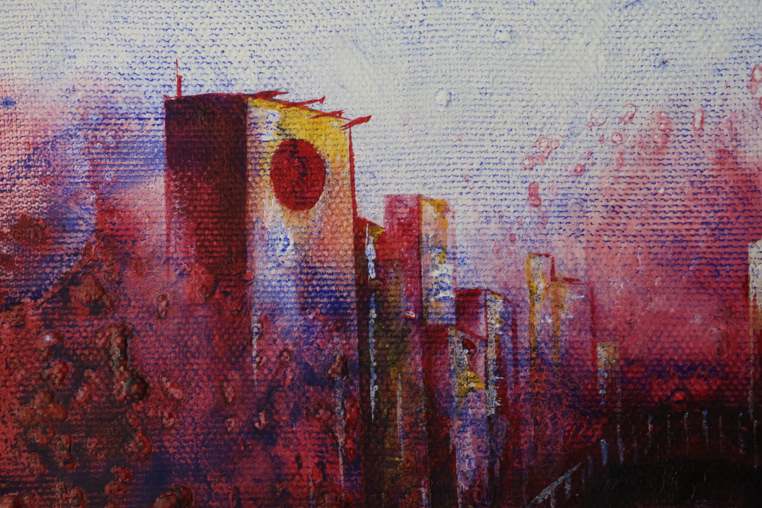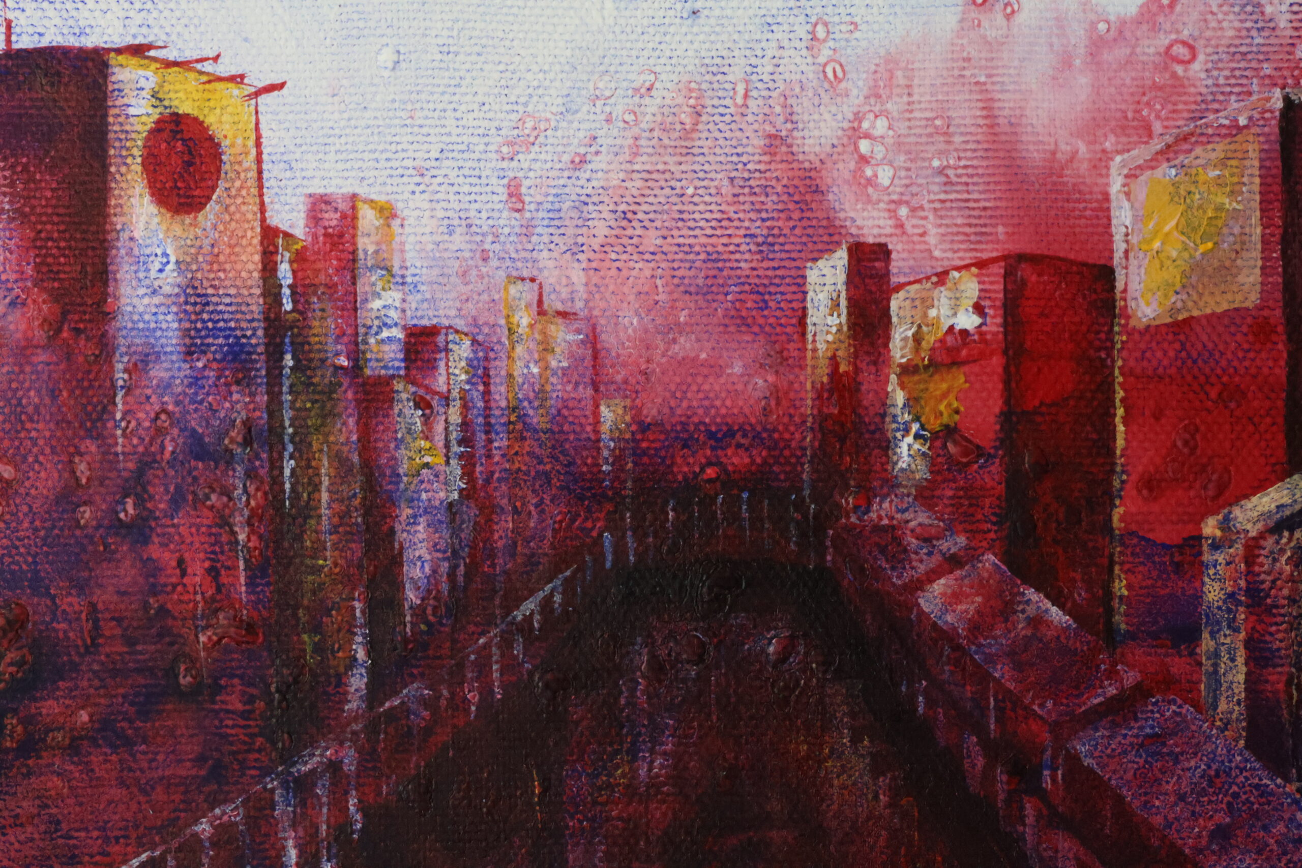 現実と夢の間。人物と抽象画交差する絵画