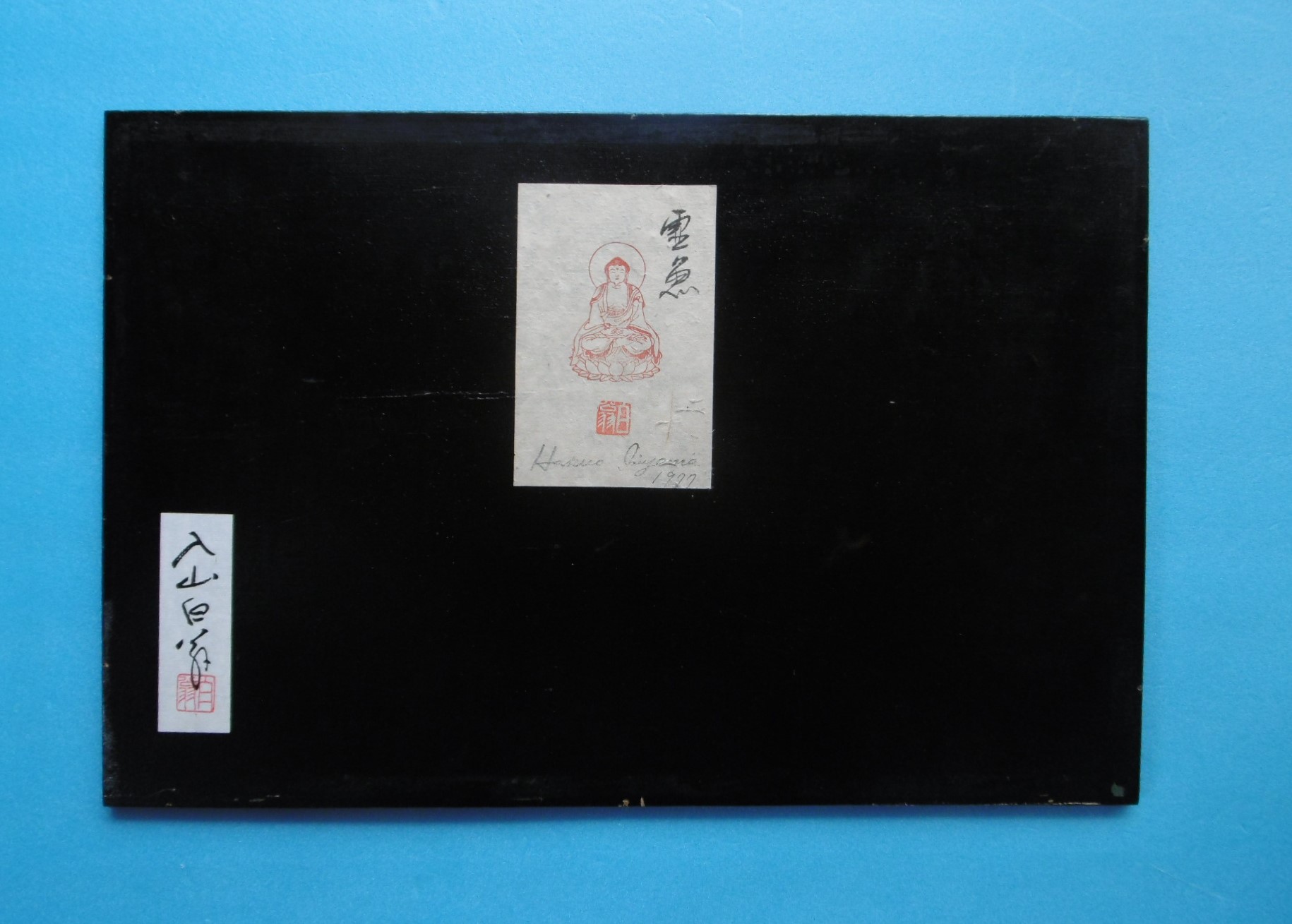 ※サインあり 「花押」かおう 署名の代わりにする印の事。ほとんど読めない程、崩したもの 初めは「楷書体」で自署したが、次第に「草書体」になり、更に様式化したのが「花押」 正面右下 サインと花押 作品裏面に朱漆による佛印と落款あり