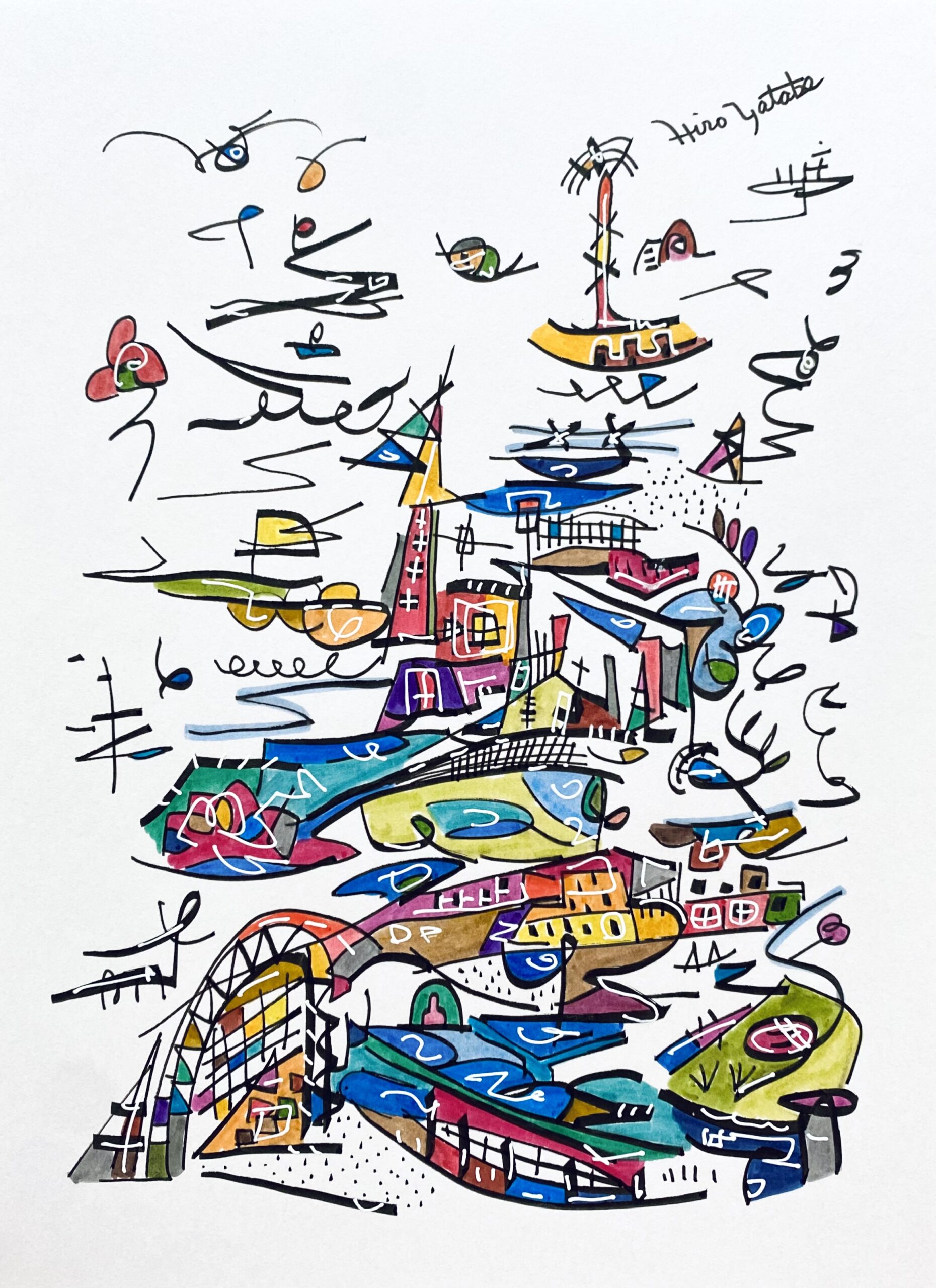 シリーズ作品を除き、タイトルは創作のはじめにあったものではなく、描き終えた時点で観る側となった私が名付けた「仮のタイトル」です。参考にするのも、答え合わせのように楽しむのも、あるいはまったく無視するのも自由です。抽象表現の色や形に意味を見出す手がかりは、あなたの記憶や経験のなかにしかありません。最終的な作品は観るかたの中で完成すべきものだと考えています。思い思いに想像の翼を羽ばたかせ、作品に新しい解釈を加えていただくことを望みます。