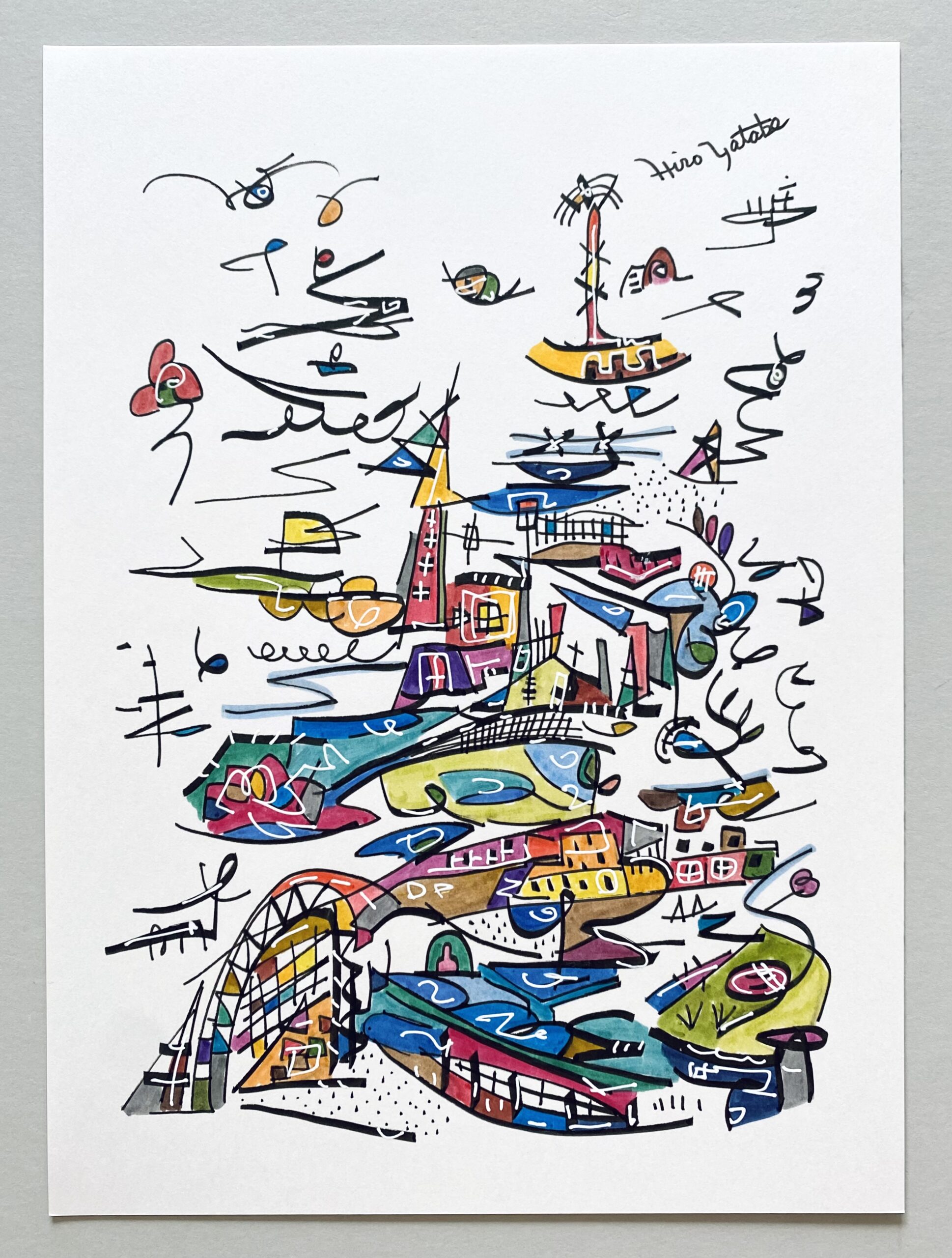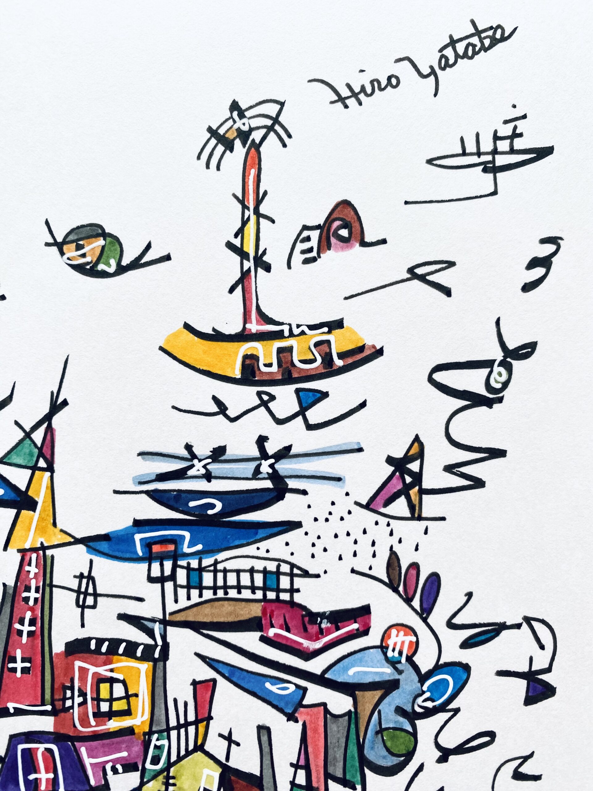 2008年 浮かんだイメージを付箋にボールペンでスケッチ。2012年になりそれをまとめたものを知人に見せたところサイズや画材をかえて絵画として発表することを勧められ、2013年、公募展にA4サイズのカードボードにペン・パステルで描いた作品を出品。その後アクリル絵具での創作をスタート。