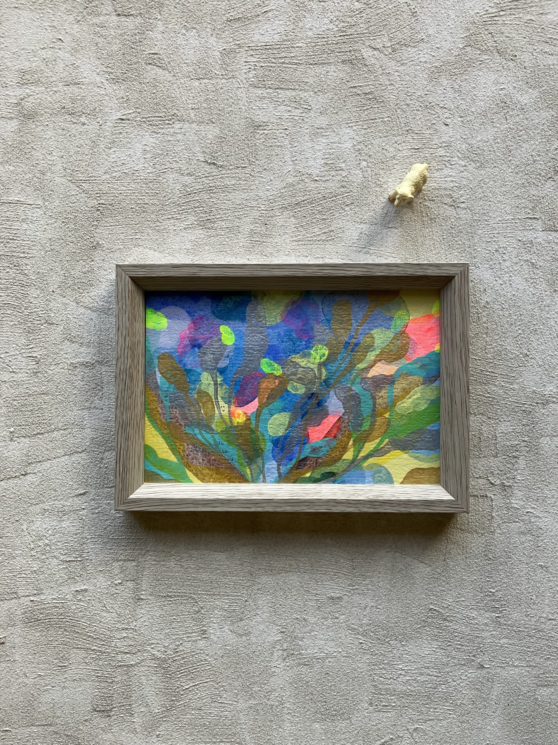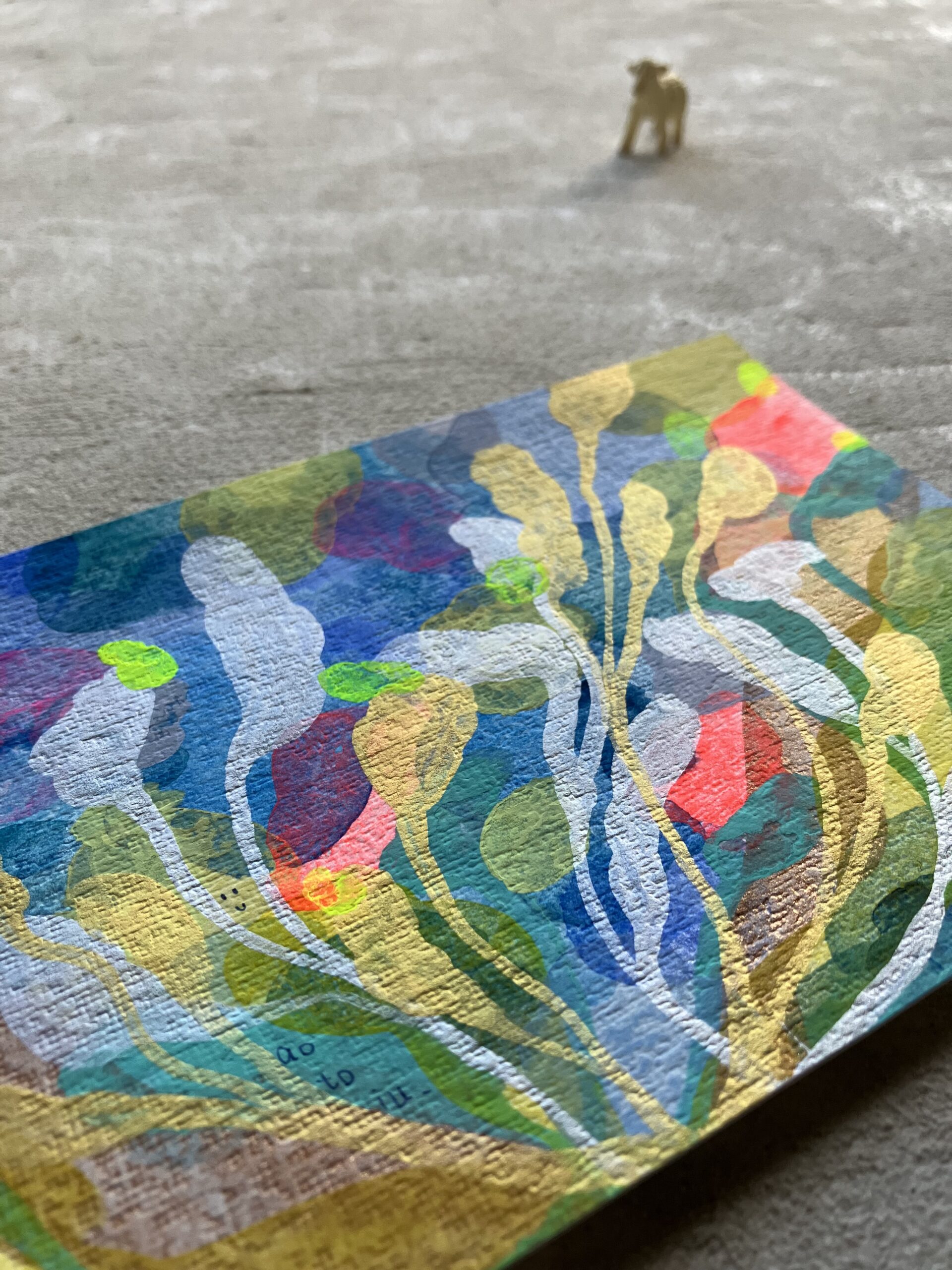 小さいころから描くのが好きでした。引っ込み思案な子どもで、今でもたいそう不器用な人、です。何とかなんとか、周りの人たちに助けられて生かされています。振り返ってみると、つらいときも、きれいだなぁ、素敵だなぁ、心動かされるものを表現したい想いだけは、ずっと、かすかに消えそうになりながらも、わたしの膝のうえにあった気がします。たとえば、なにも特別なことは出来ないけれど、わたしにできることで、描くことで、わたしの絵に出会って下さった人の笑顔があることで、巡り巡って恩返しができるのではないか、と思っています。