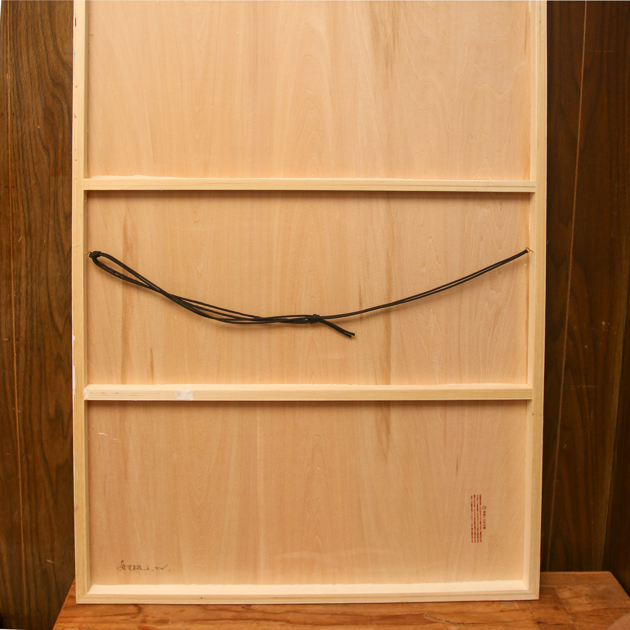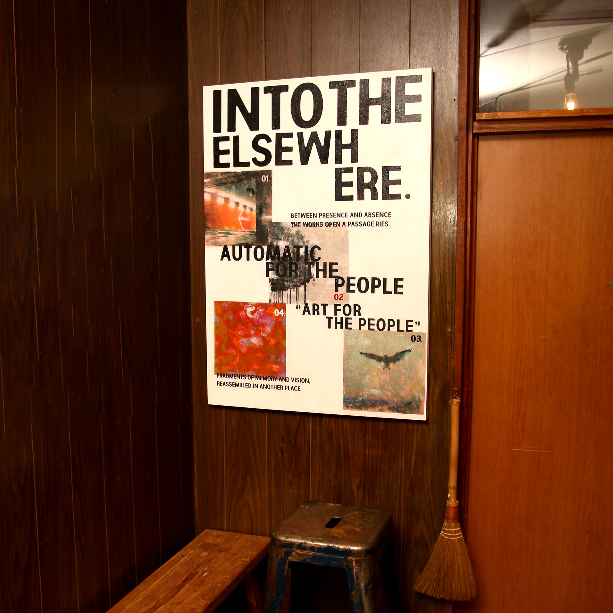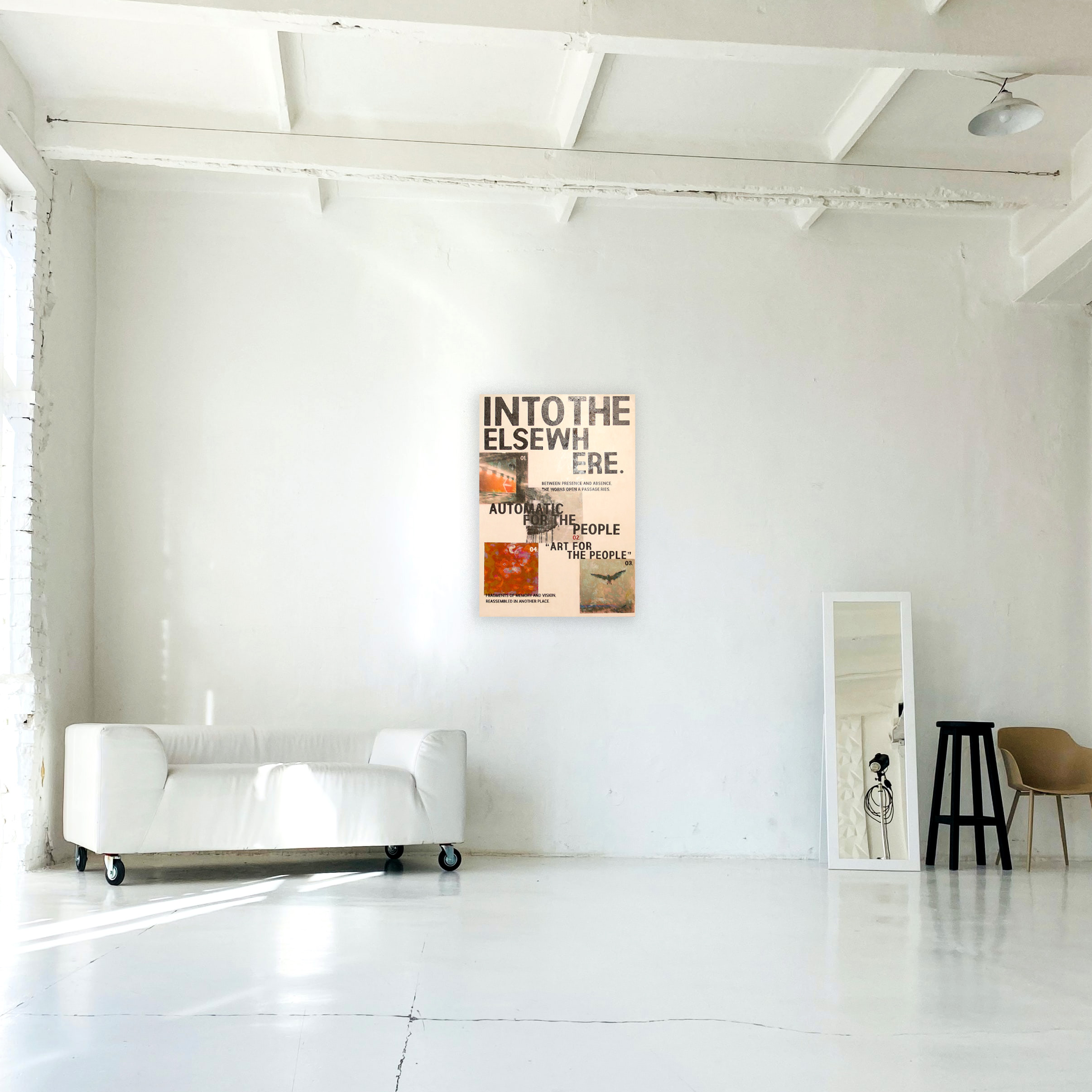 キャプション: 存在と不在の狭間に落ちる言葉とイメージ。 記憶の断片をアクリルと転写で再構成したタイポグラフィック・コンポジション。