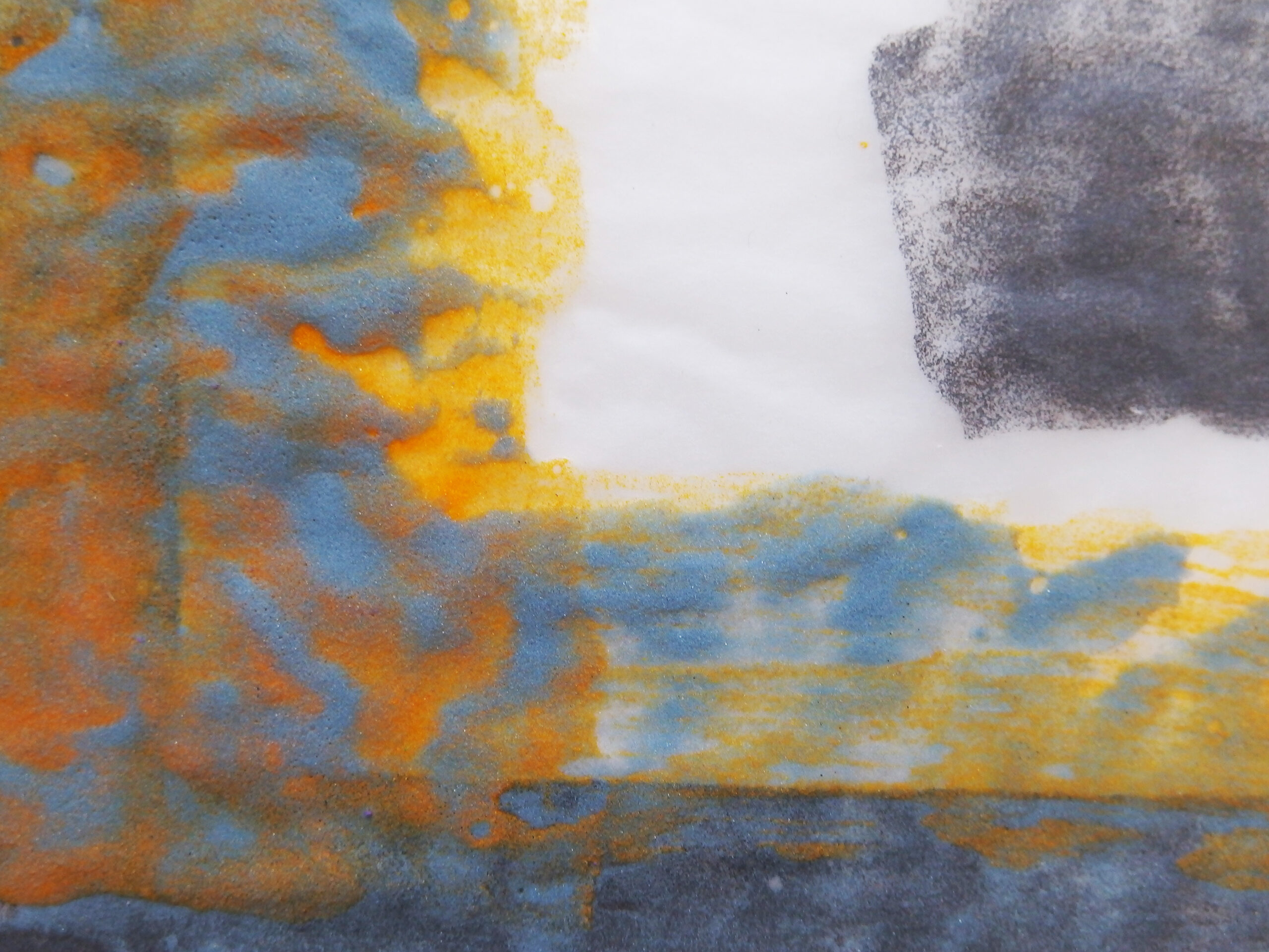 スチレンペーパーという光沢のある真っ白な素材に、岩絵の具自体の美しさが際立ちます。この組み合わせを発見し、気に入って使い続けています。