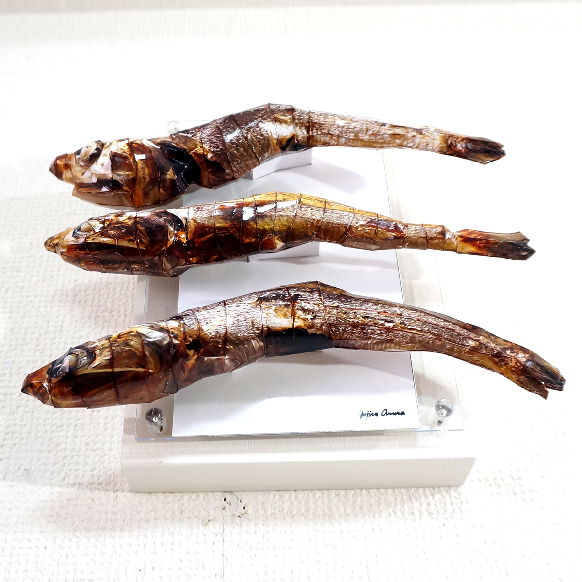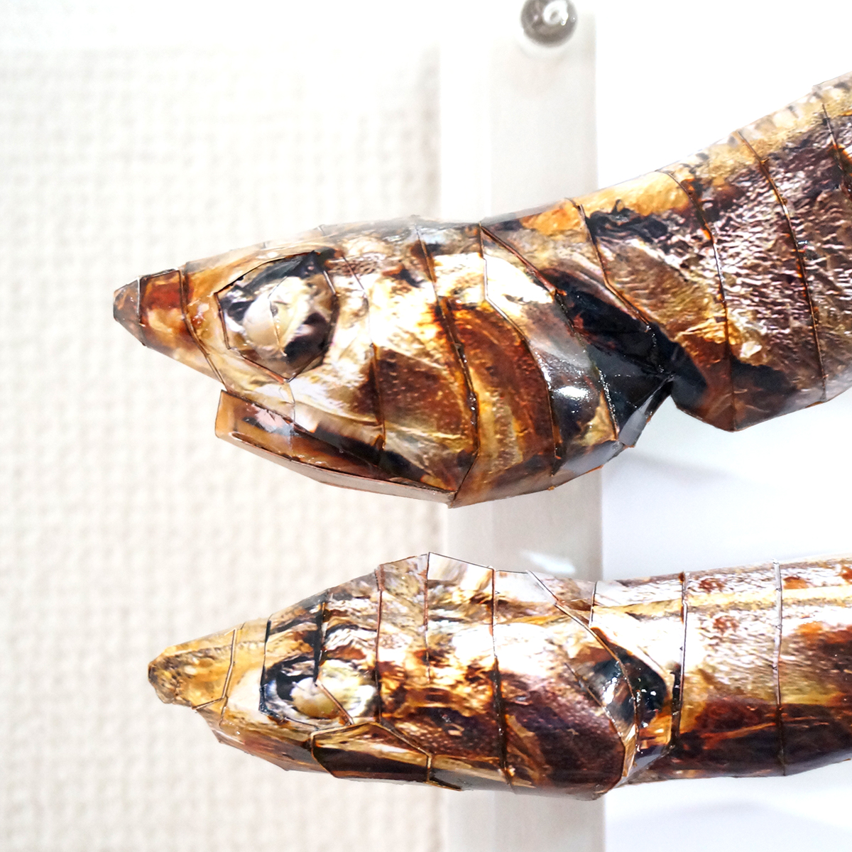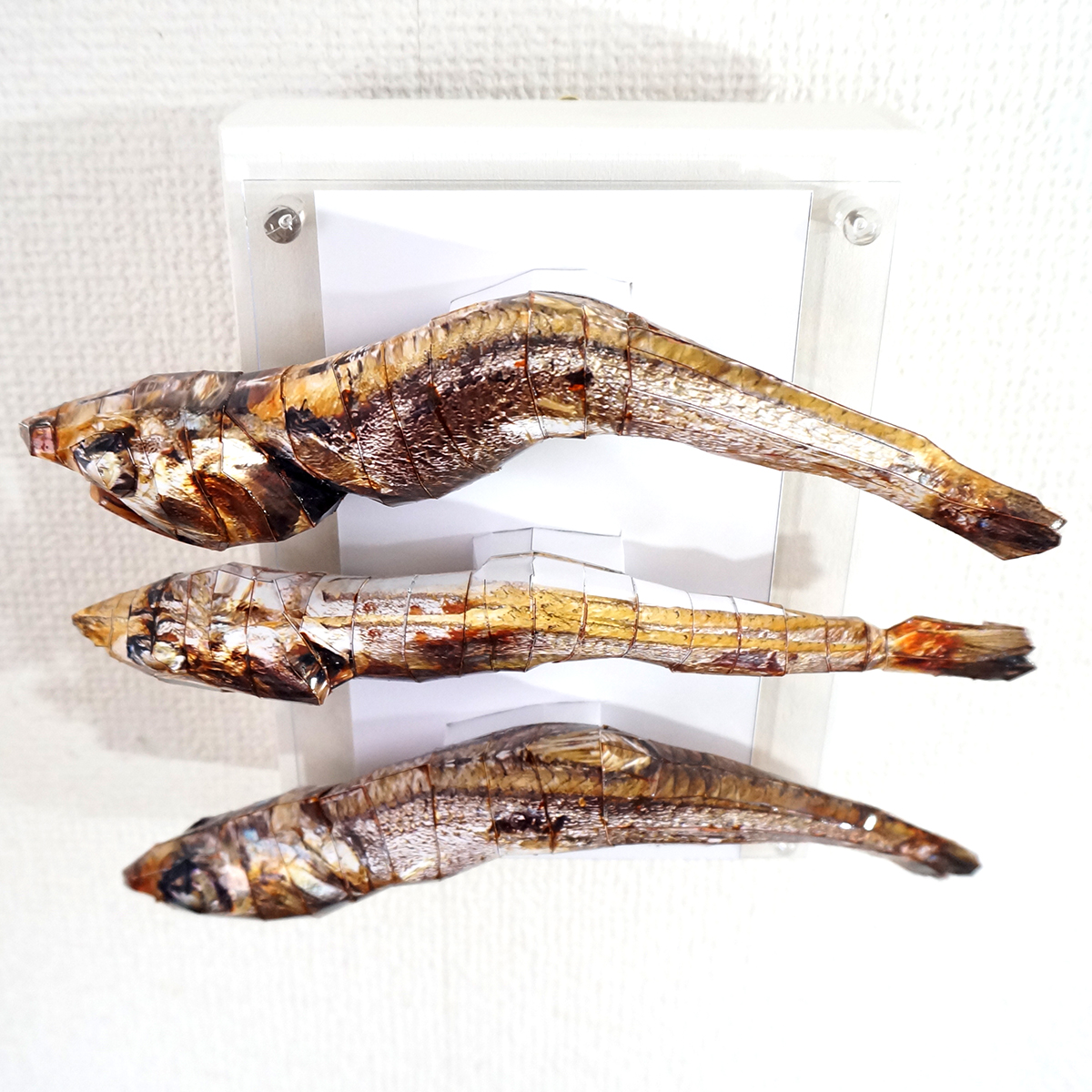ひとつのパネルに3尾も制作することになるので非常に作業効率が悪く、苦労して完成したものが単なる煮干しなので腰が抜けそうになります。