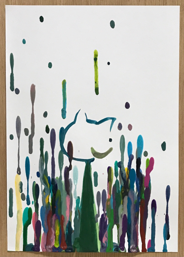 怒りやかなしみ、切なさ、力ない感じ、攻撃性、うらみなどが、こもっている気がしました。考えずに描いているので、描き終わり、見て考えていたらそう感じました。
