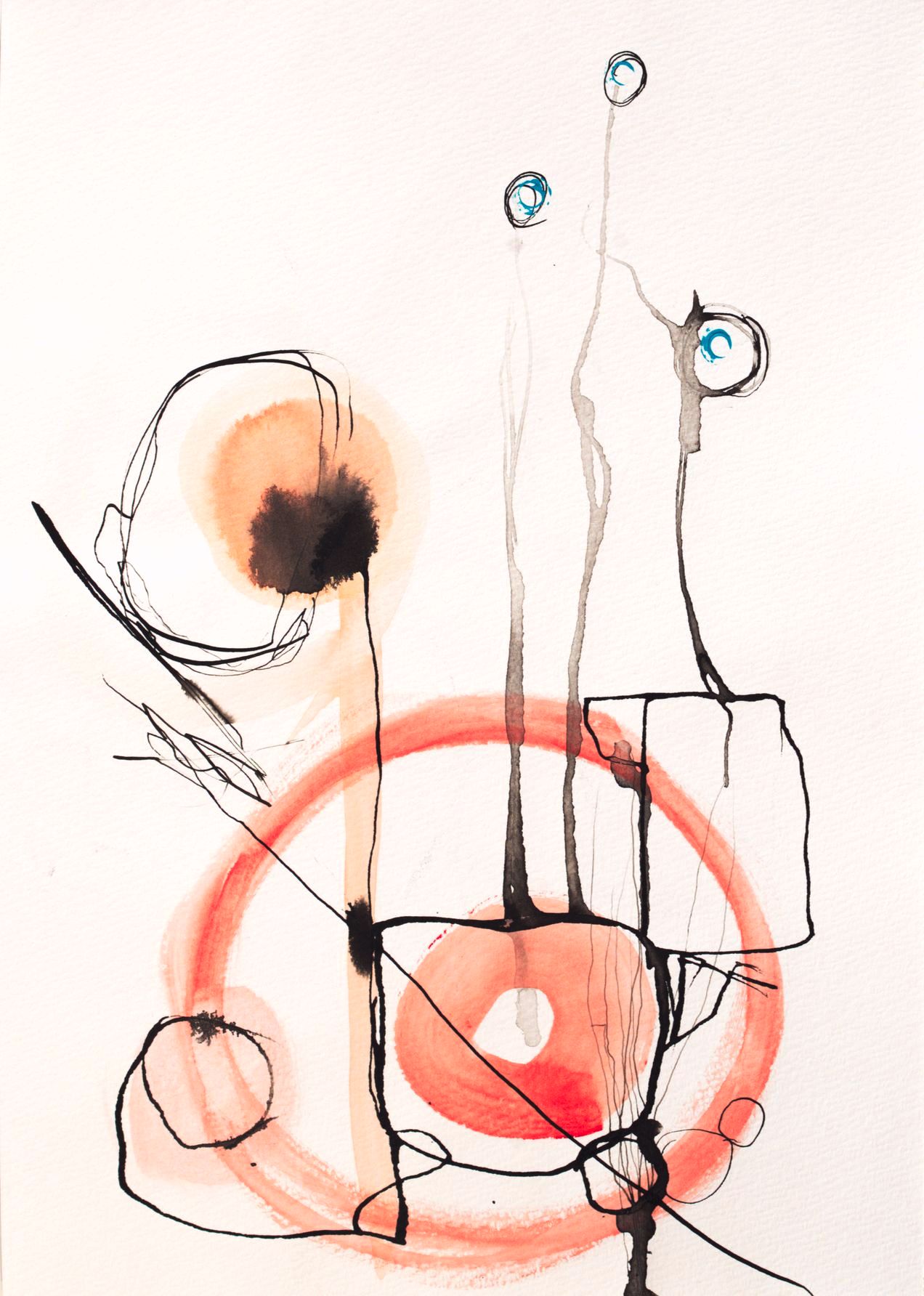 画用紙にアクリル絵の具(筆やペンを使用)で描いた、surreal(超現実的)シリーズです。