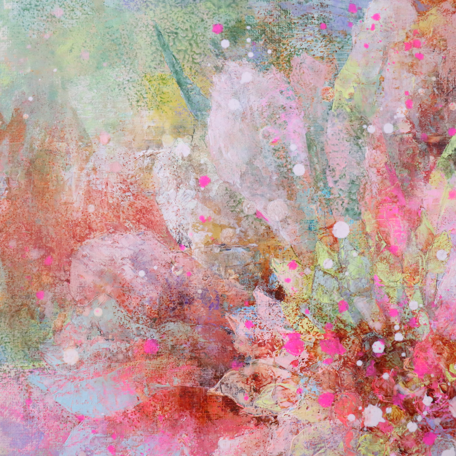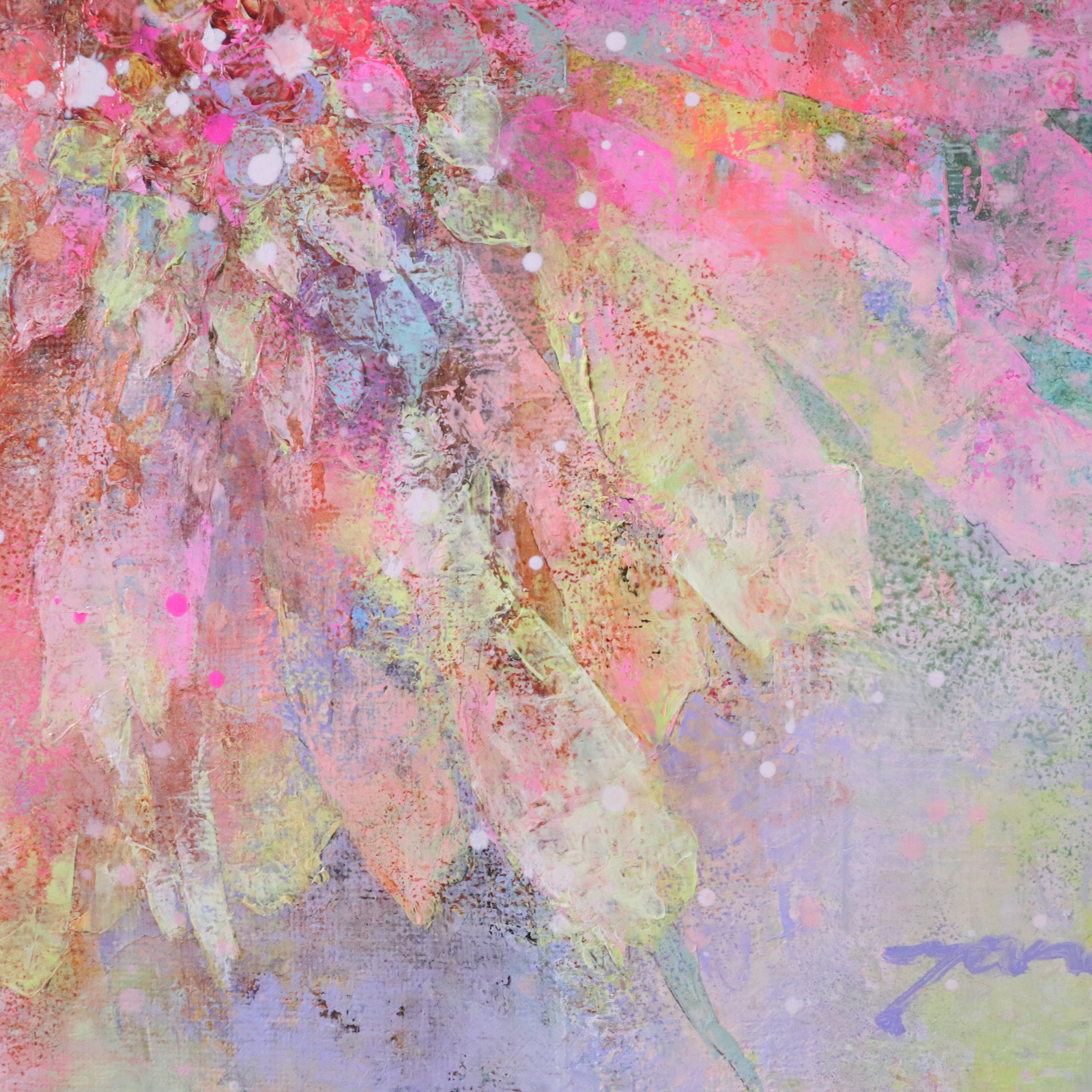 コーカサスのスケッチを元に半抽象画に仕上げました。薄く溶いた油絵具を何層にも重ねて描き、最後にローラーを使い色を重ねて深みを出しました。色の重なりの美しさを感じていただけたら、嬉しいです。