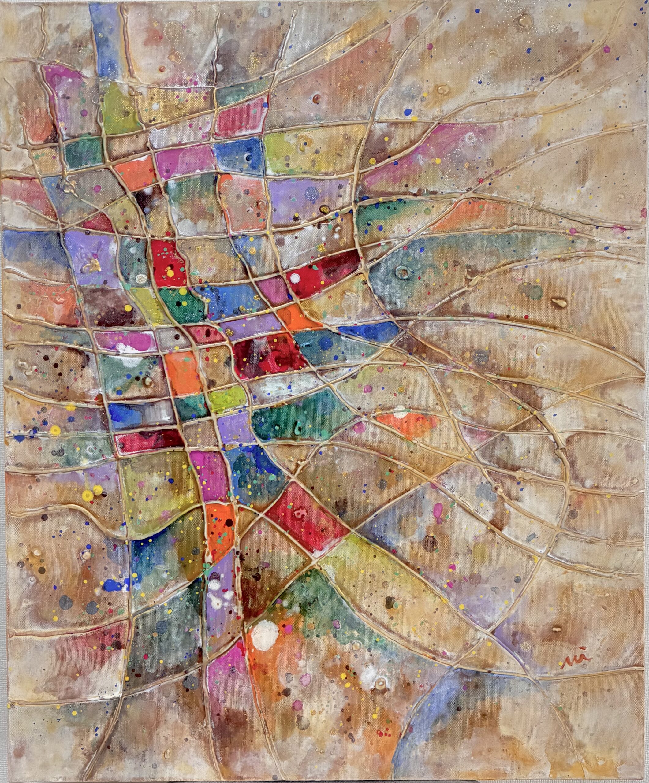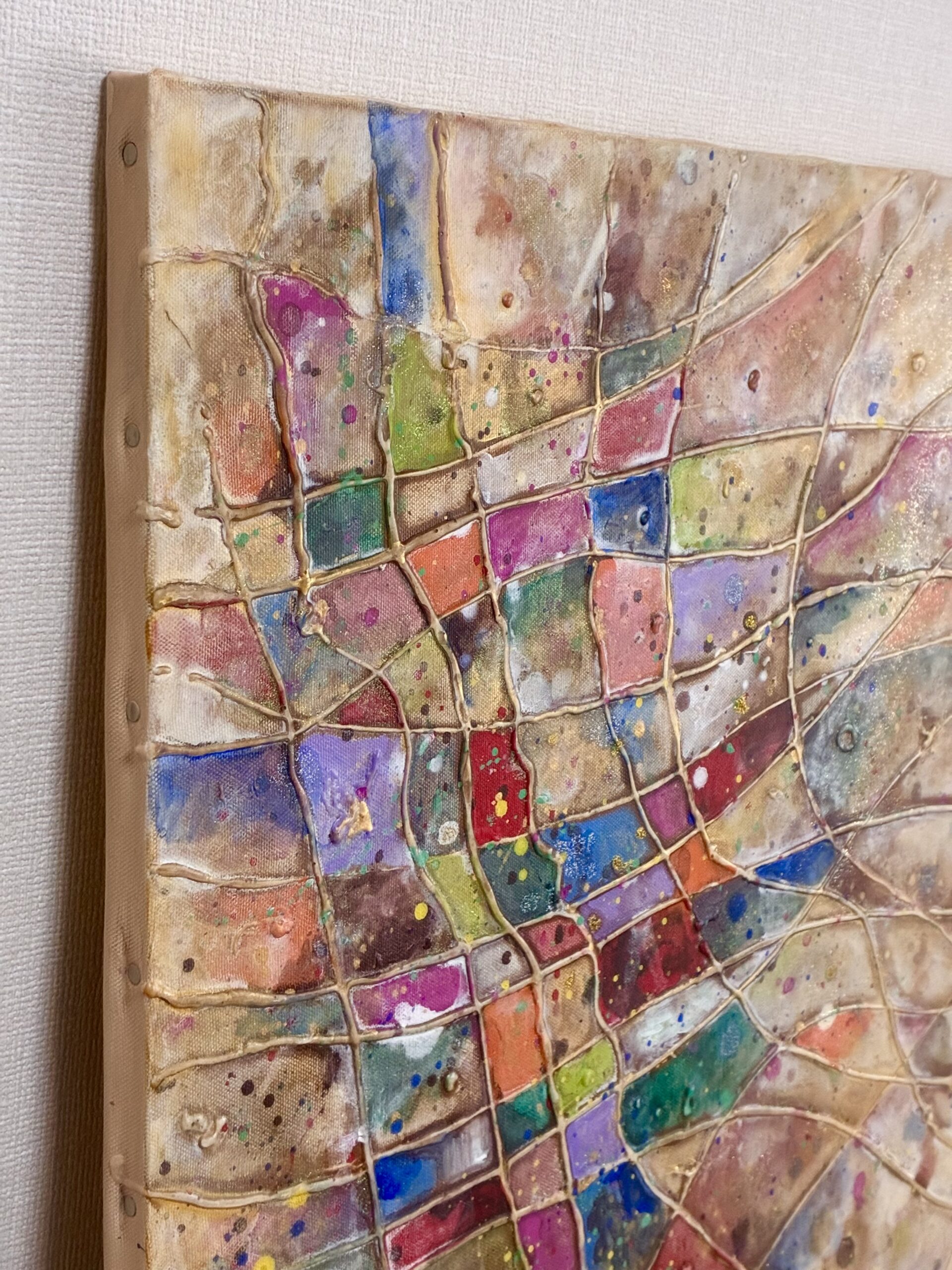 風に踊るような秋色や、キラキラした金の光が、カラフルにきらめく作品です。